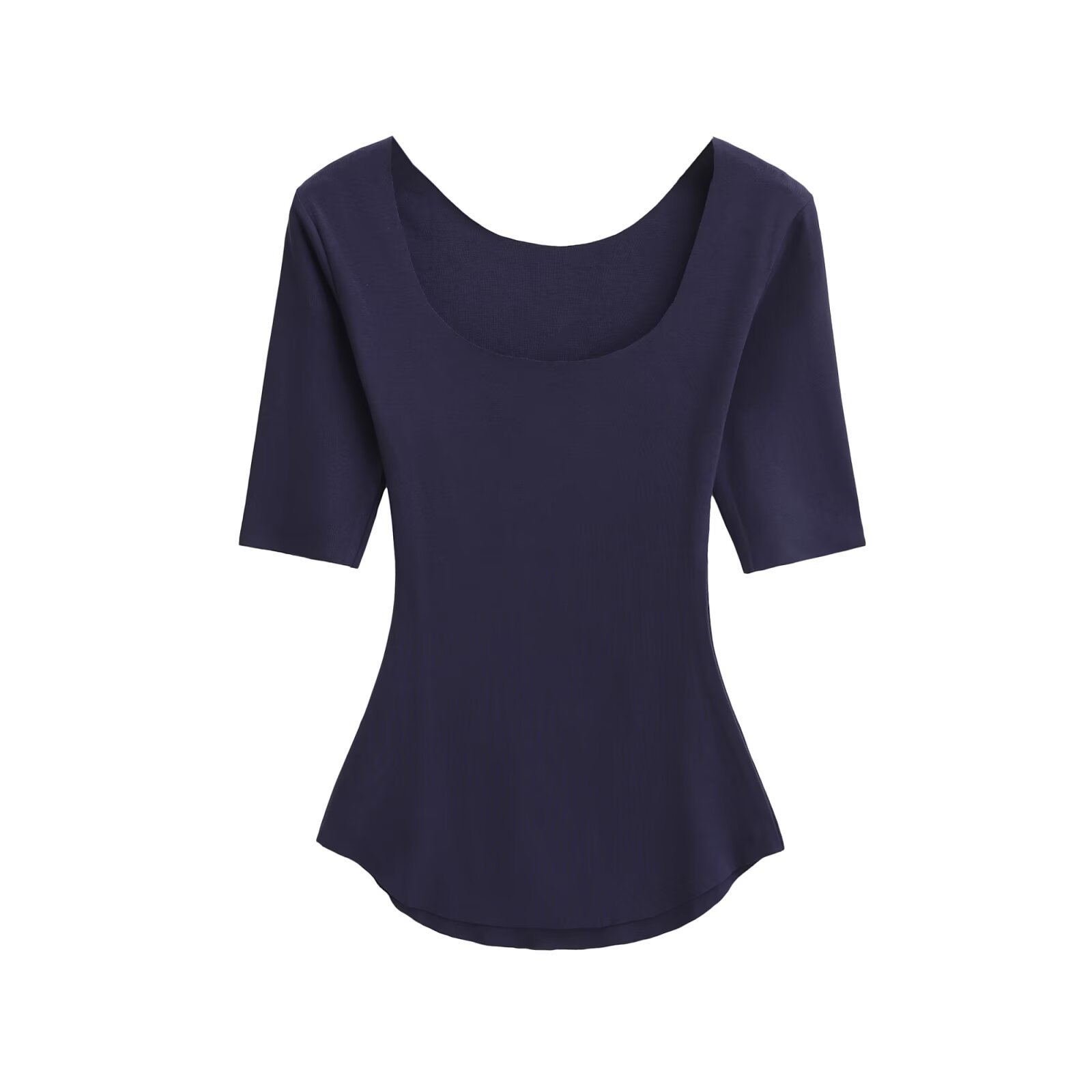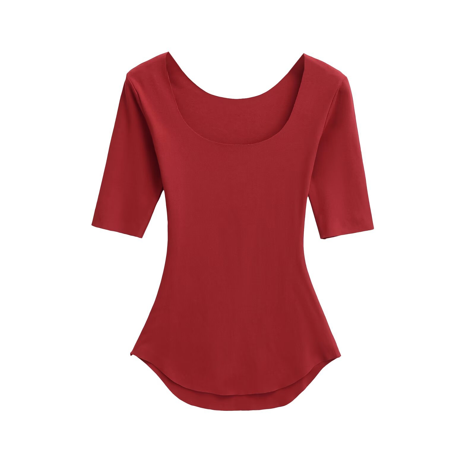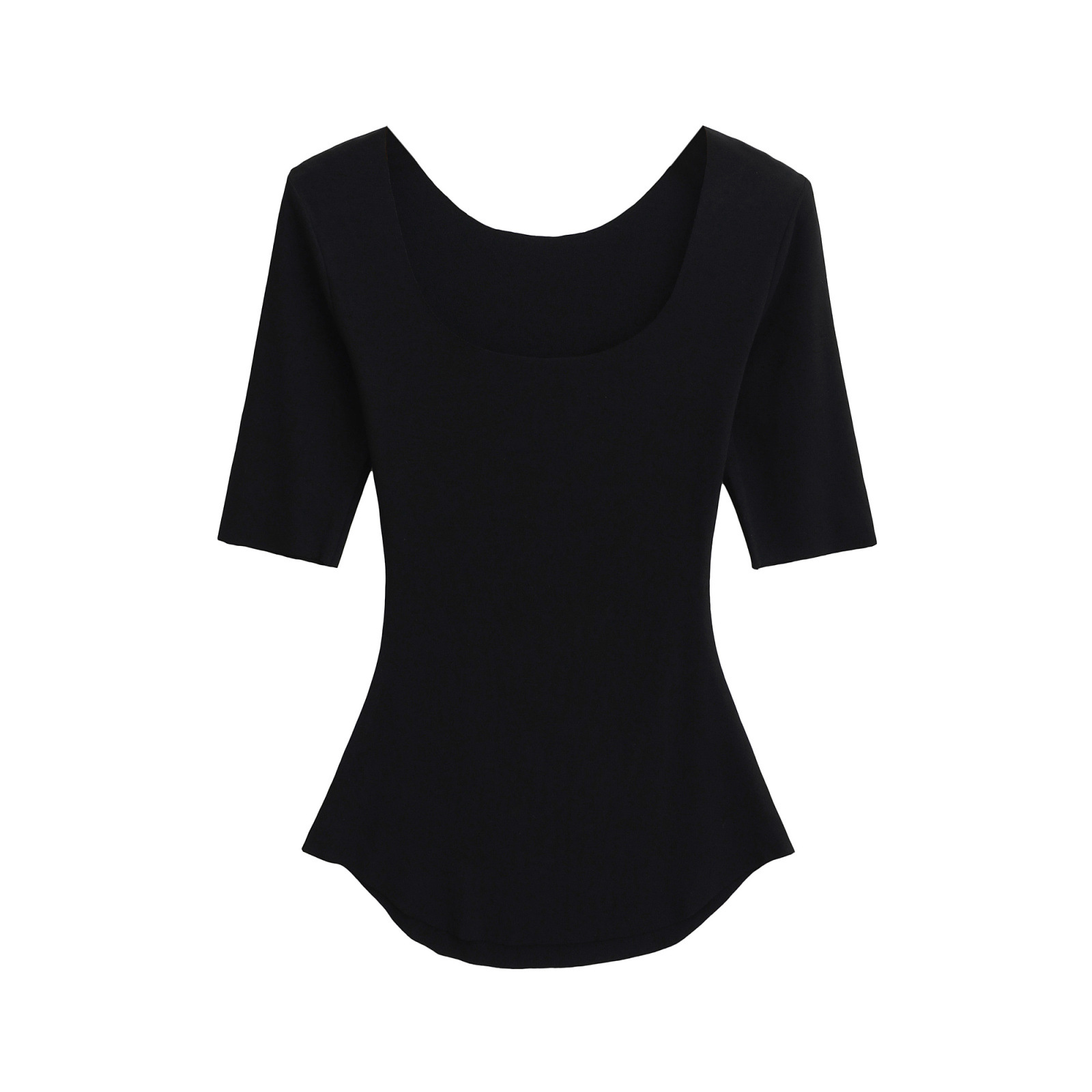 2025 여름 순수한 욕망 스타일 섹시 슬리밍 빅 U 넥 마스크 T 바디 쉐이핑 미드 슬리브 탑 베이스