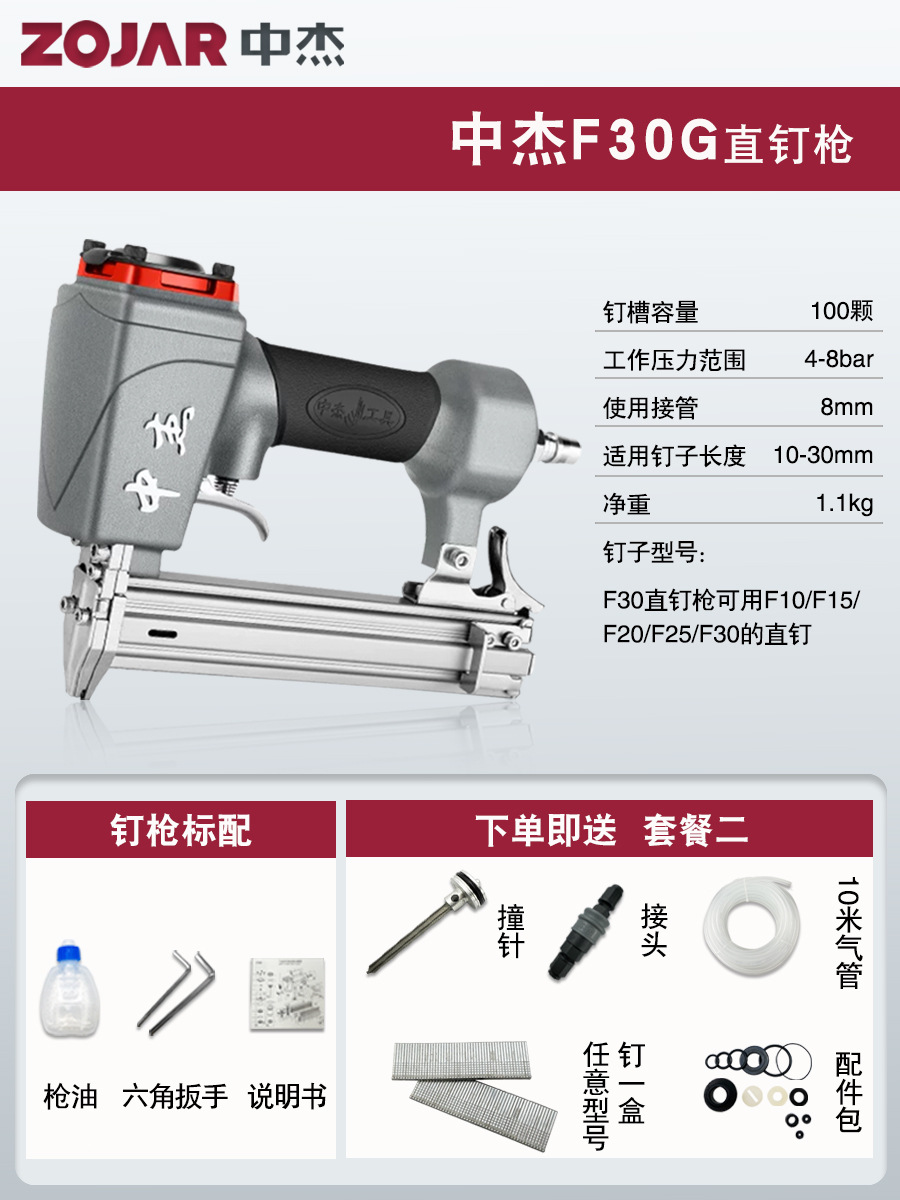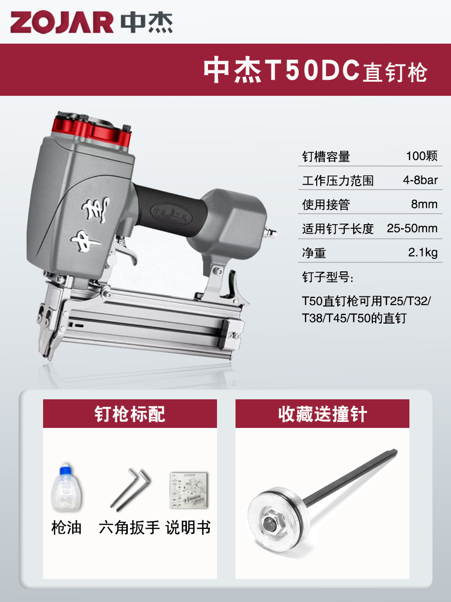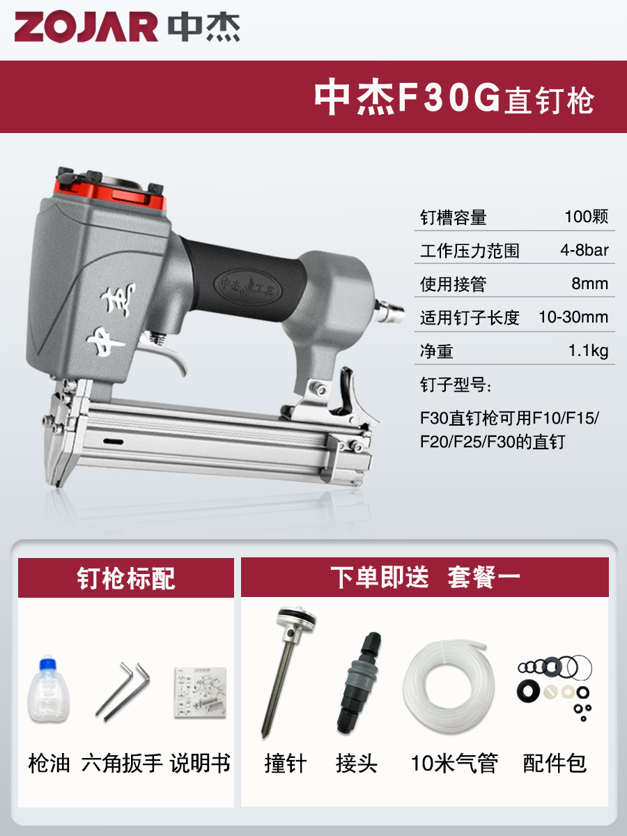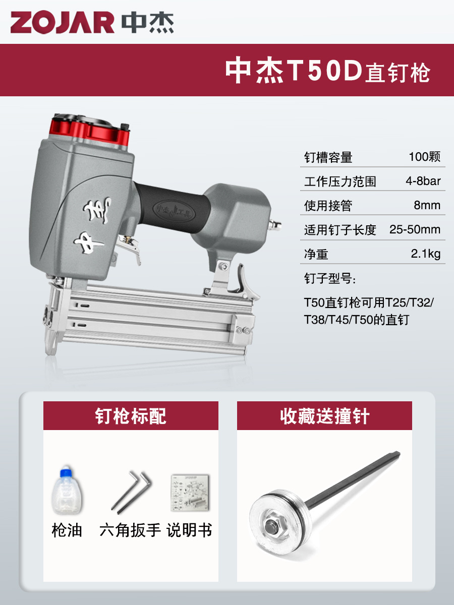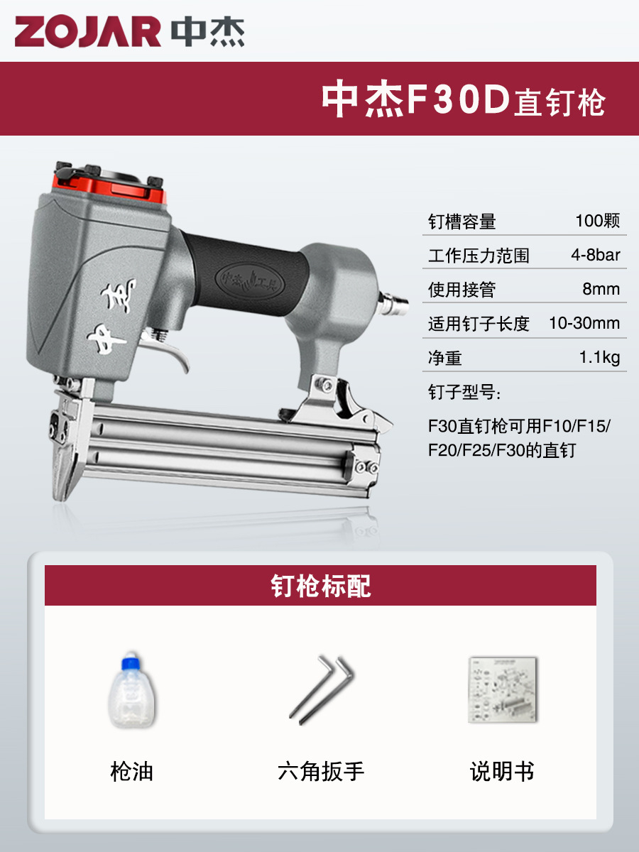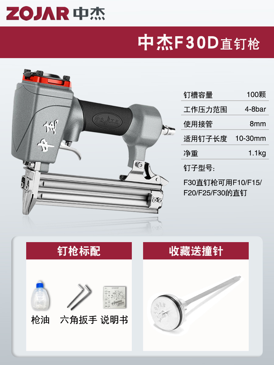 Zhongjie 에어 네일건, 에어 스트레이트 네일건, 걸림 없는 목공 모기 네일건, 네일건, 스틸 네일건, 케이블 트레이