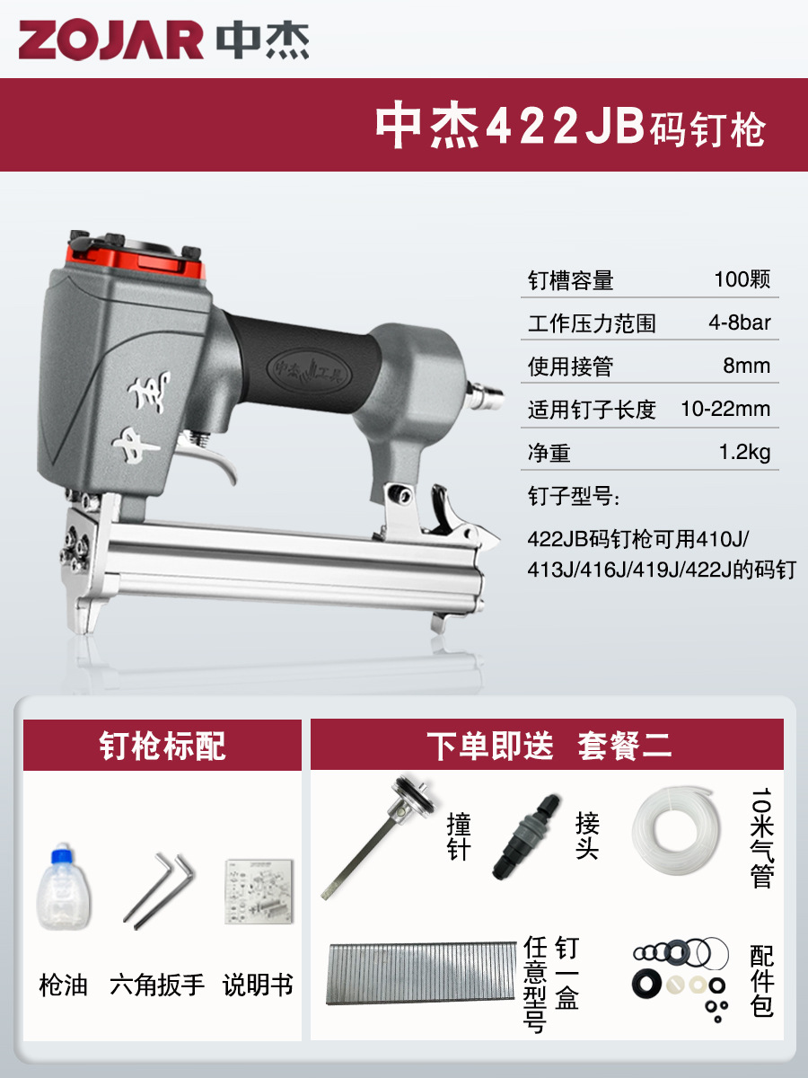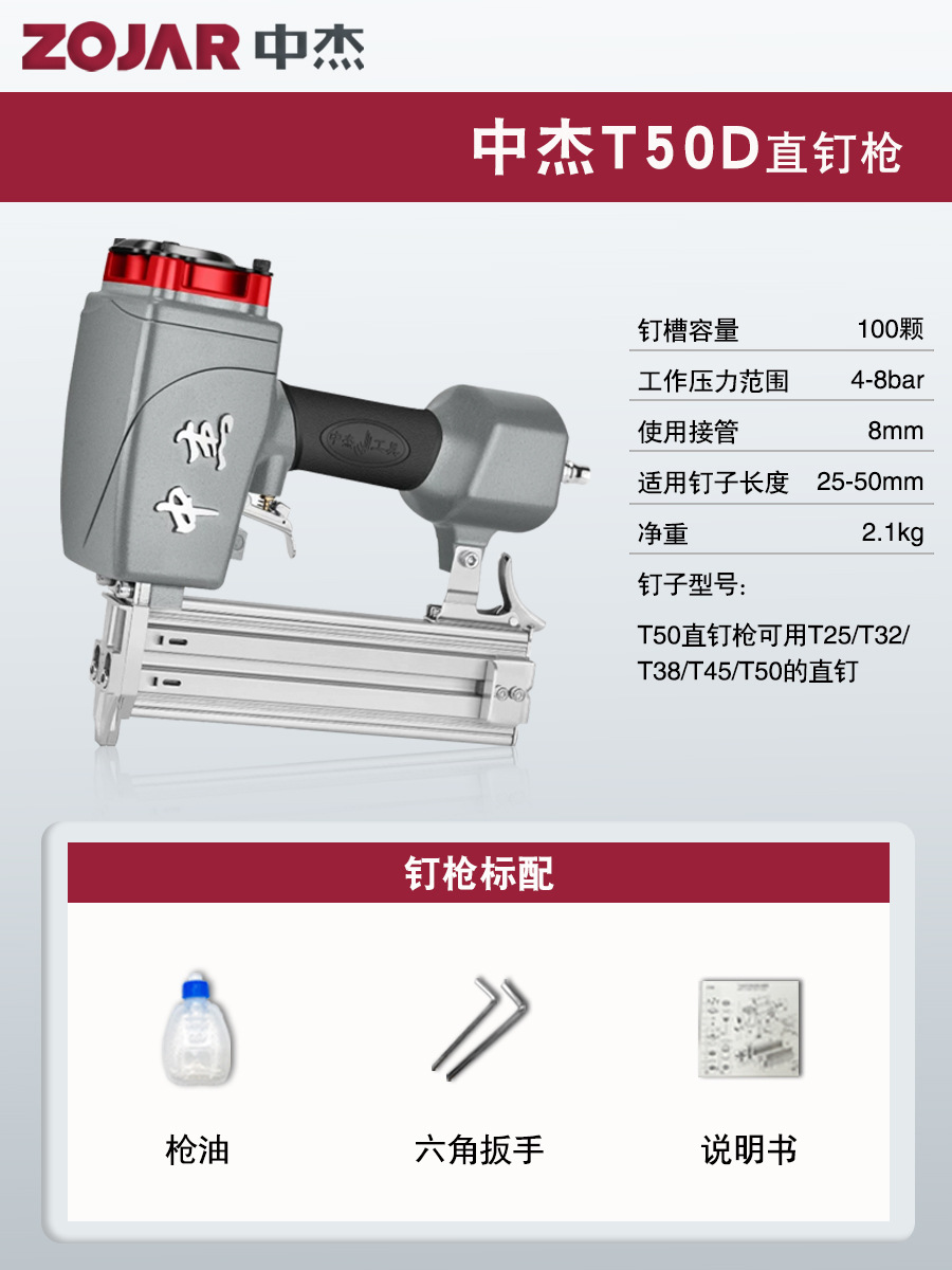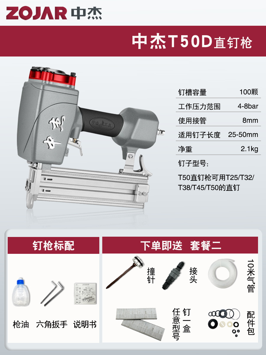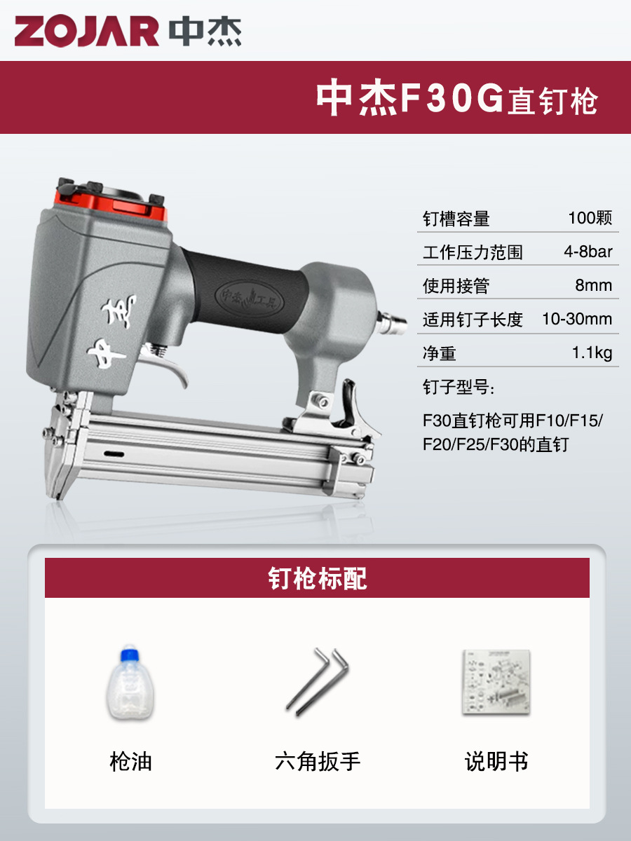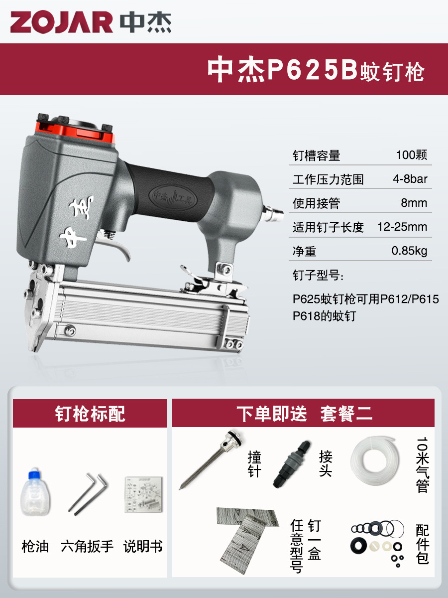 Zhongjie 에어 네일건, 에어 스트레이트 네일건, 걸림 없는 목공 모기 네일건, 네일건, 스틸 네일건, 케이블 트레이
