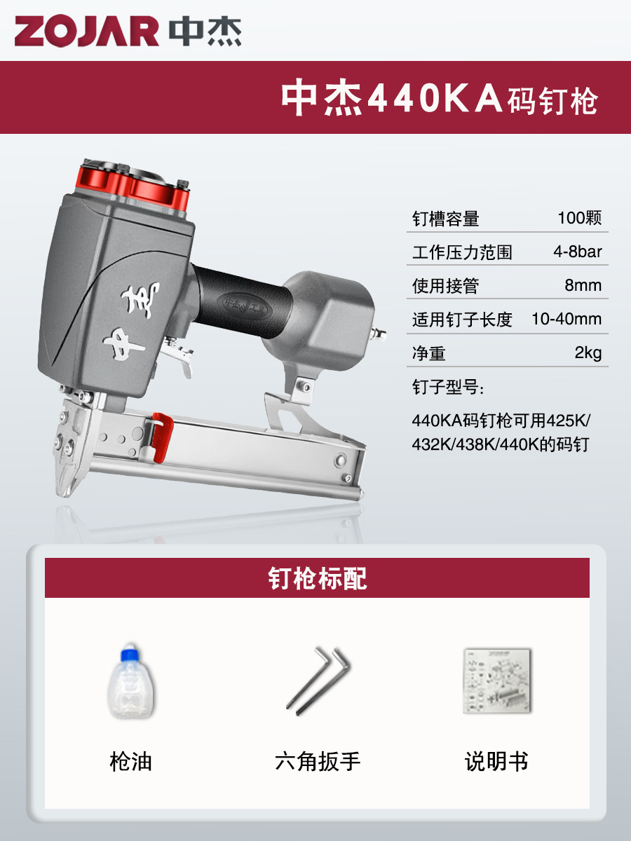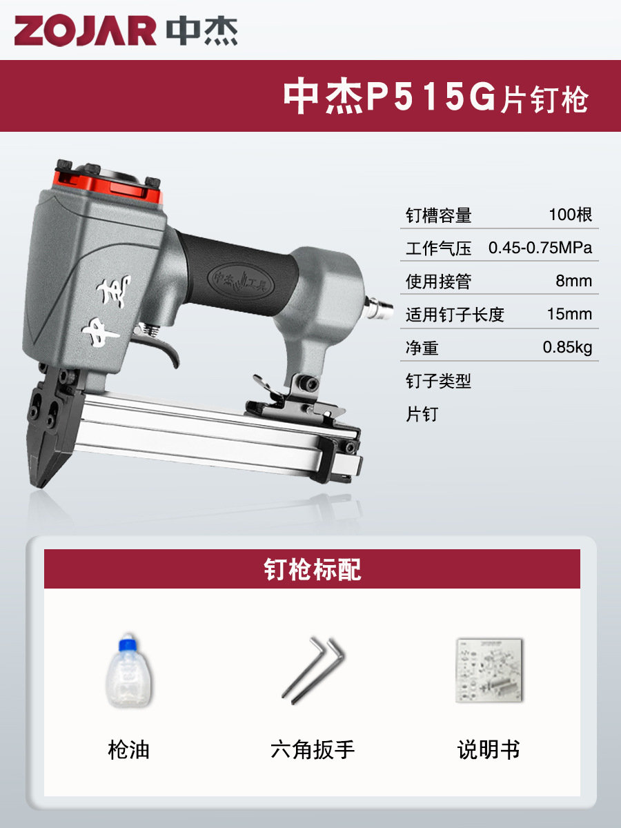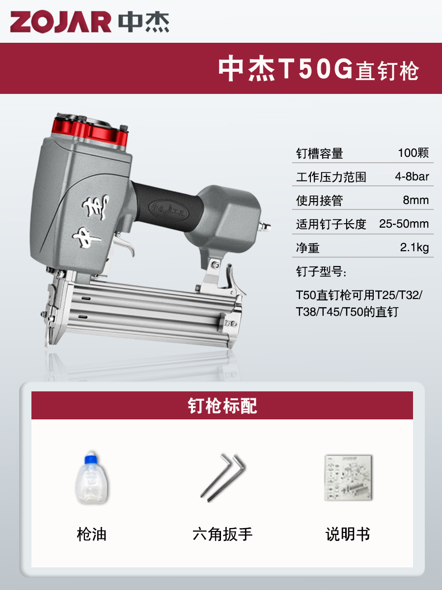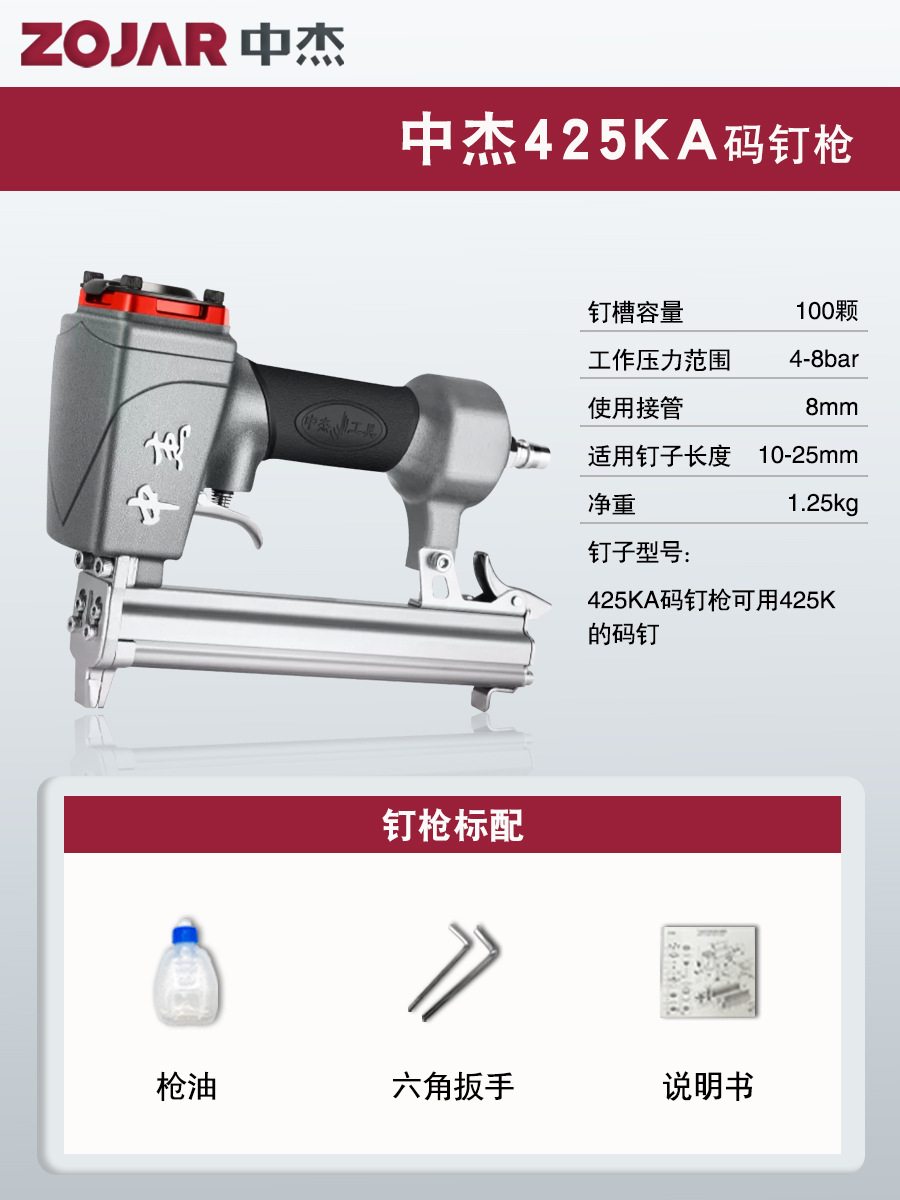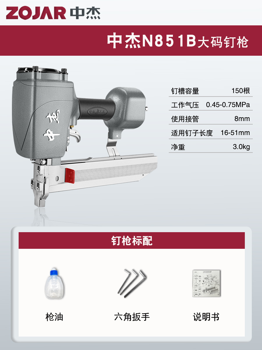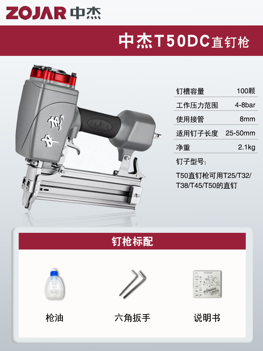 Zhongjie 에어 네일건, 에어 스트레이트 네일건, 걸림 없는 목공 모기 네일건, 네일건, 스틸 네일건, 케이블 트레이