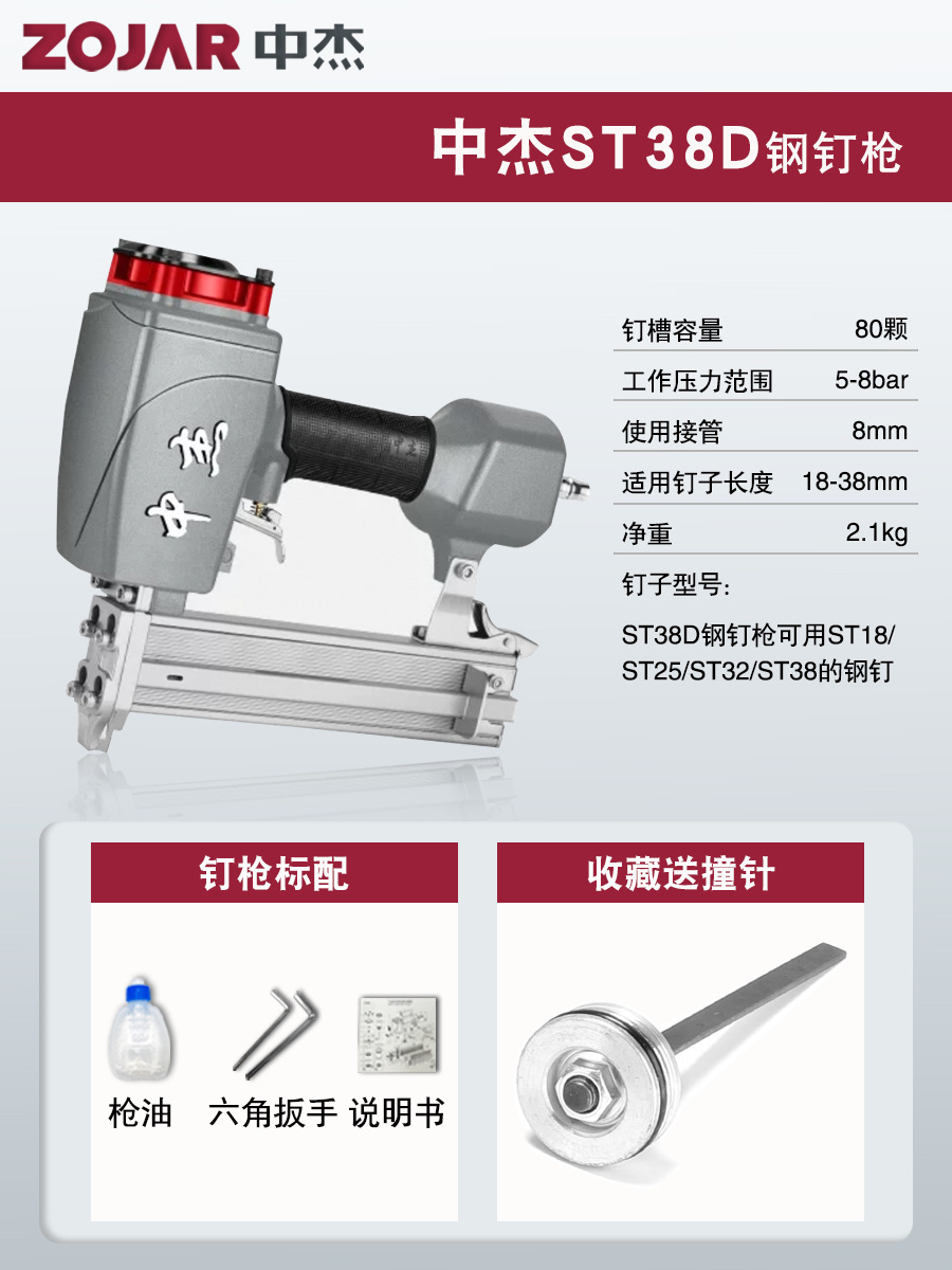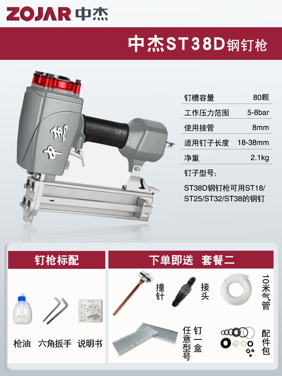 • ST38D 강철 못총 [총 혀 + 공기 파이프 + 조인트 + 액세서리 가방 + 못]