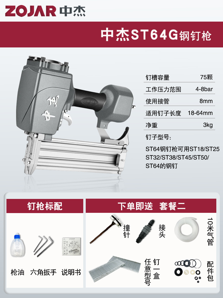 • ST64G 강철 못총 [총 혀 + 공기 파이프 + 조인트 + 액세서리 가방 + 못]