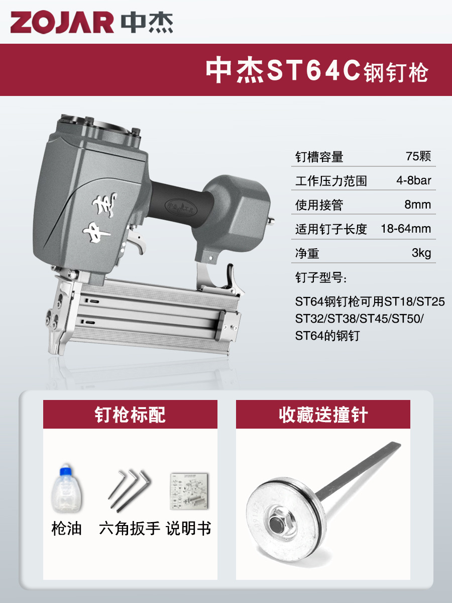 • ST64C 강철 못총 [총 혀 + 공기 파이프 + 조인트 + 액세서리 가방 + 못]