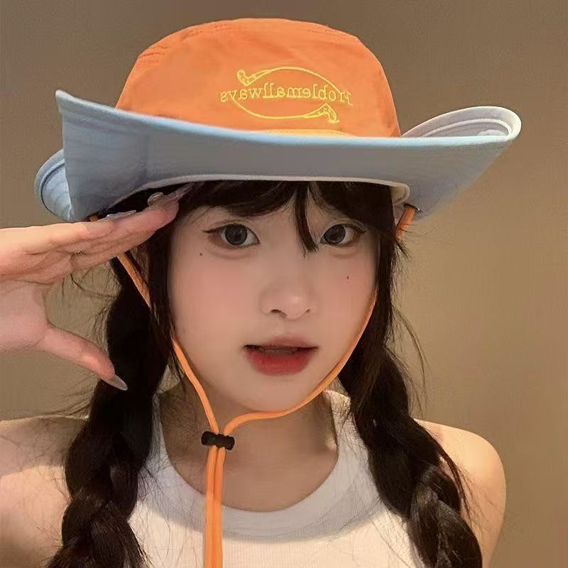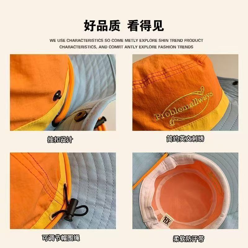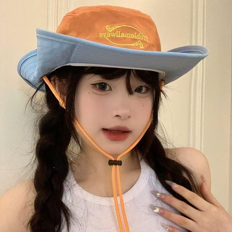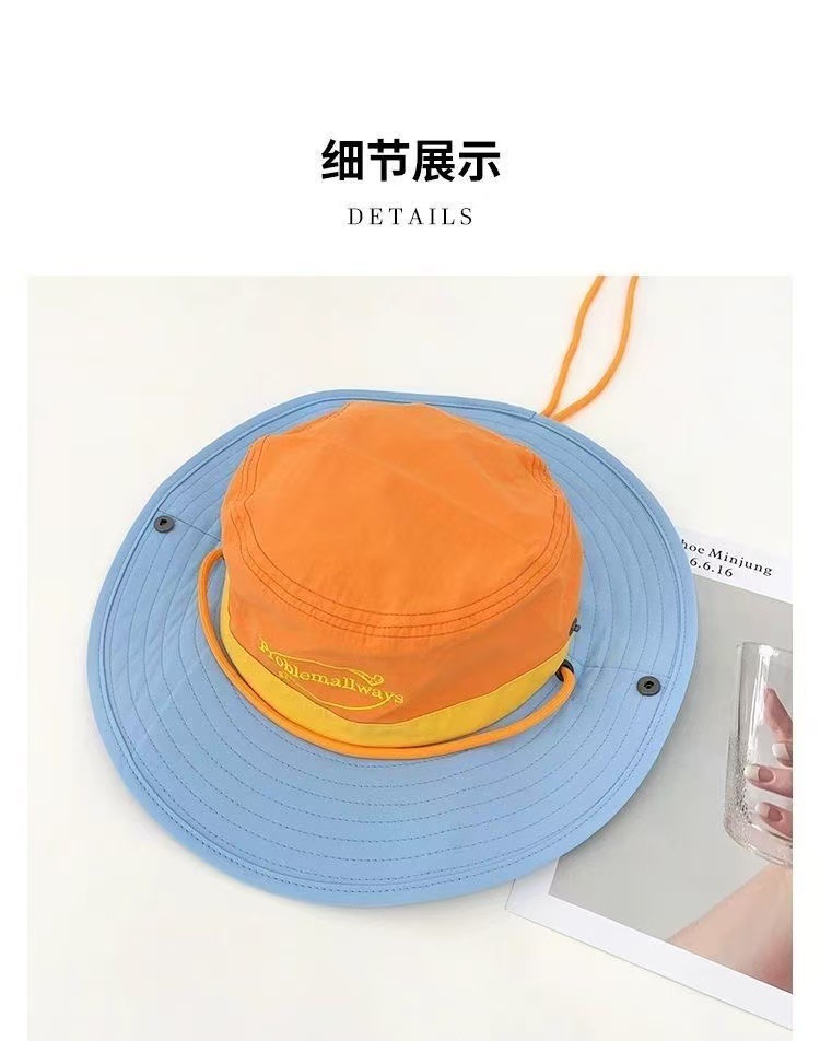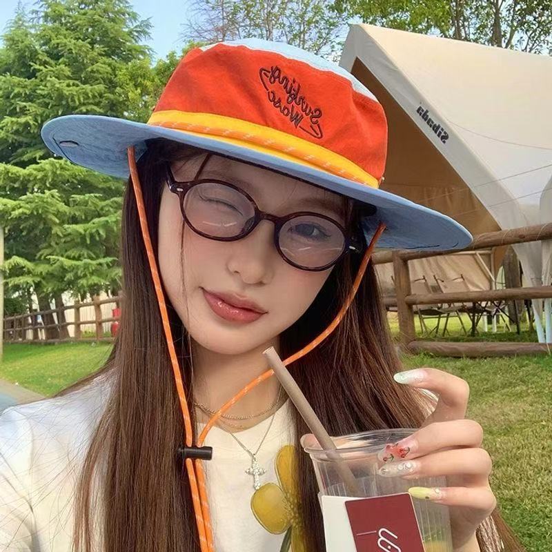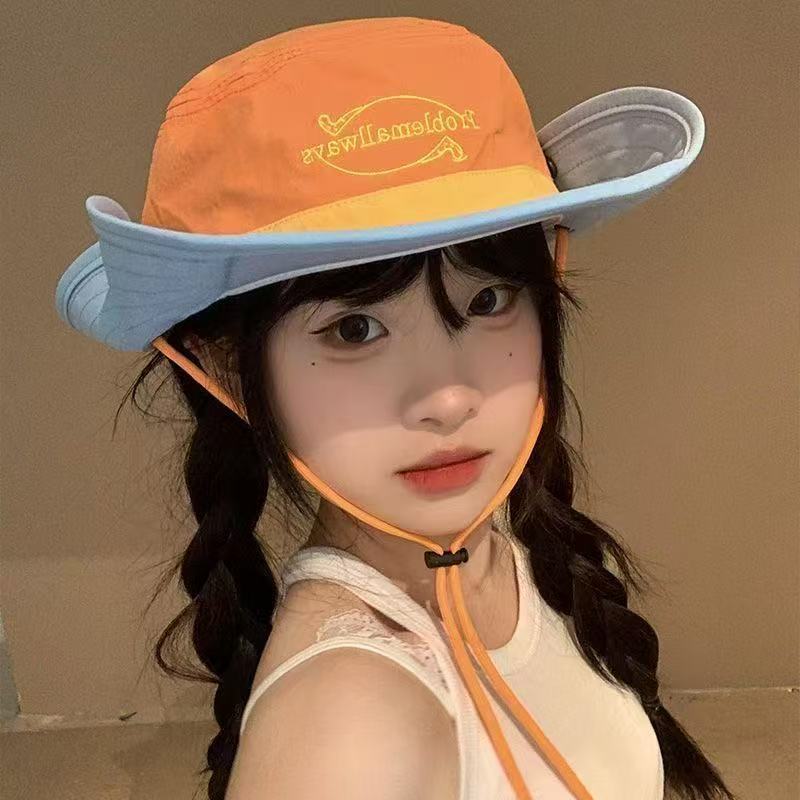 2025 새로운 야외 색상 일치 어부 모자 여성 여름 태양 보호 모자 도파민 색상 일치 문자 하이킹 모자