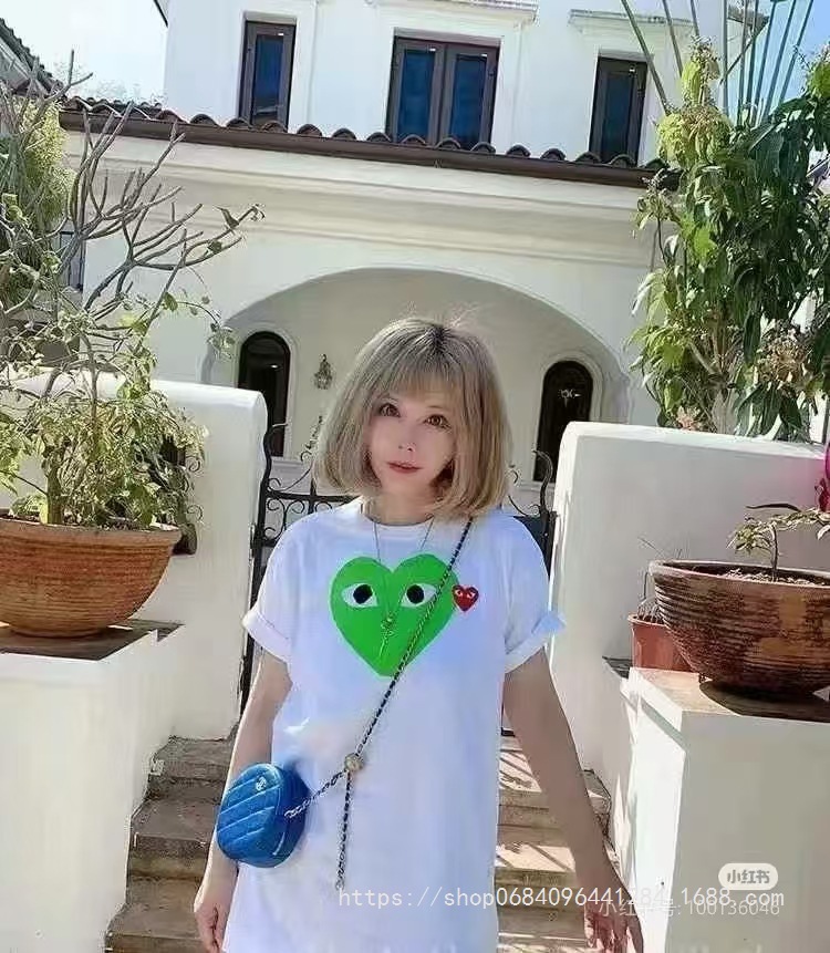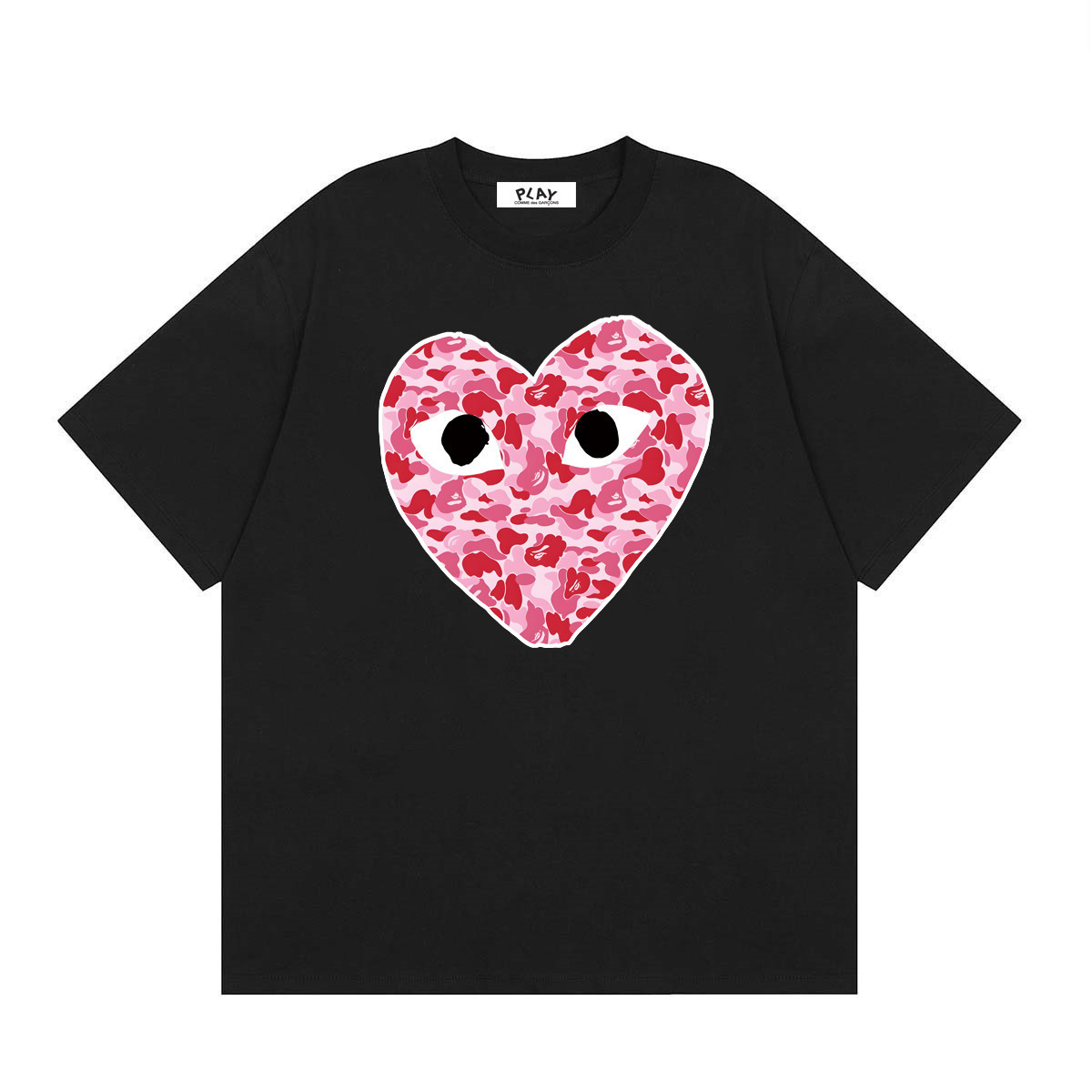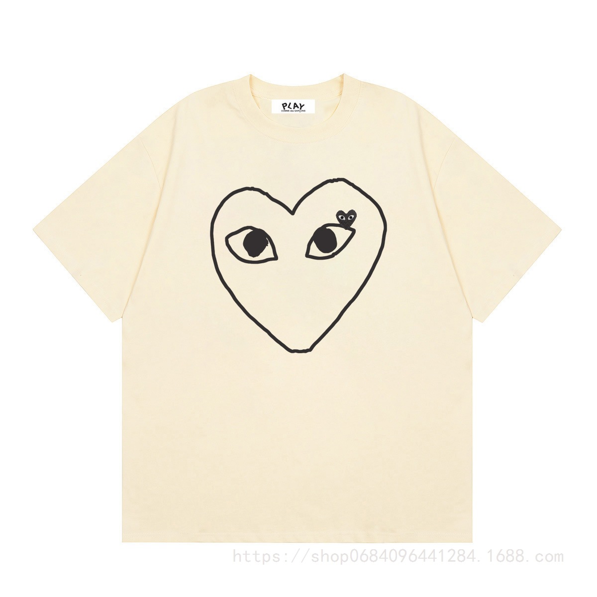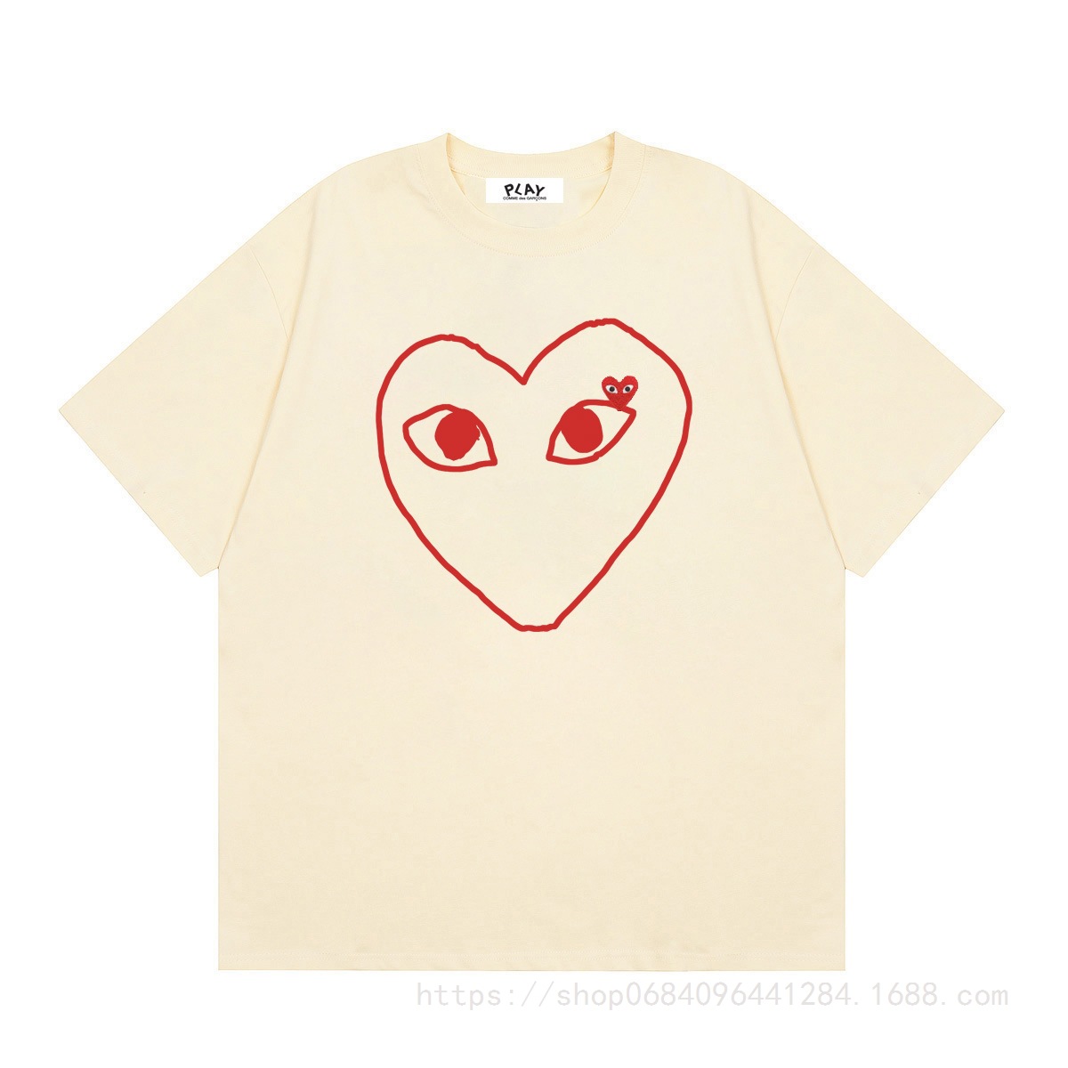 2025년 여름 Comme des Garcons 새로운 Chuanjiu 러브 레터 프린트 풀오버 반팔 남성 및 여성