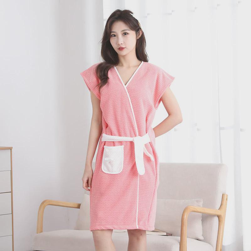 목욕 가운 여성 흡수성 두꺼운 속건성 2025 새로운 파인애플 체크 무늬 목욕 가운 성인 레이스 업 목욕 가운 도매