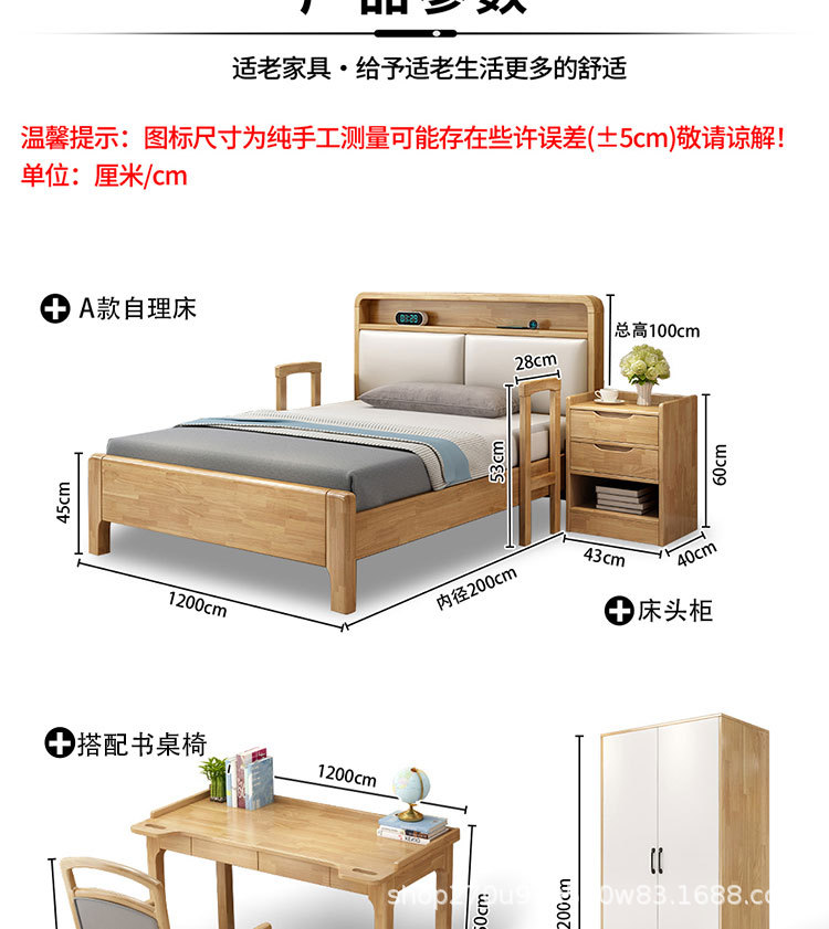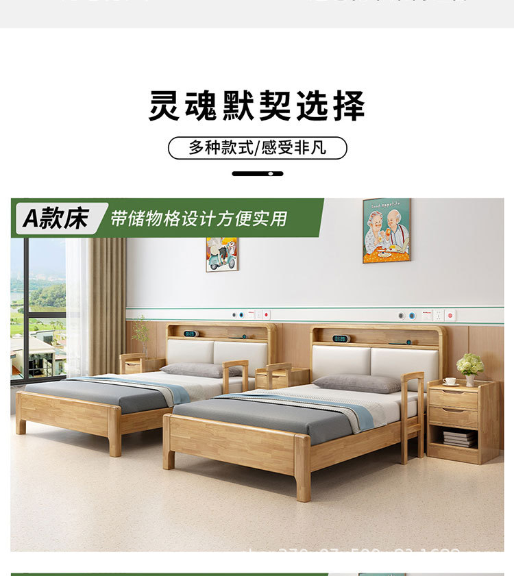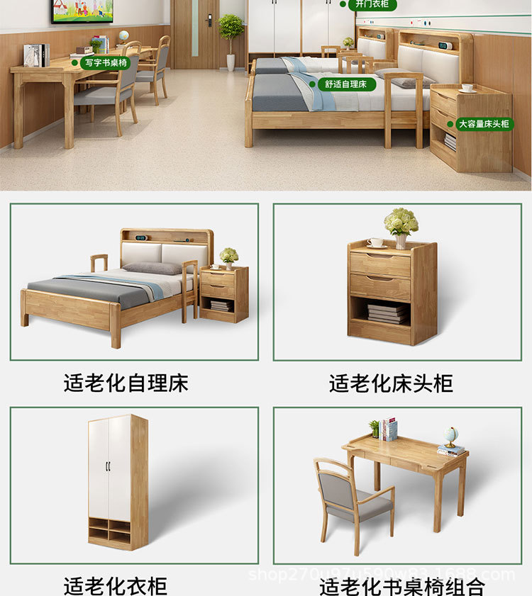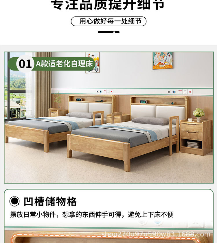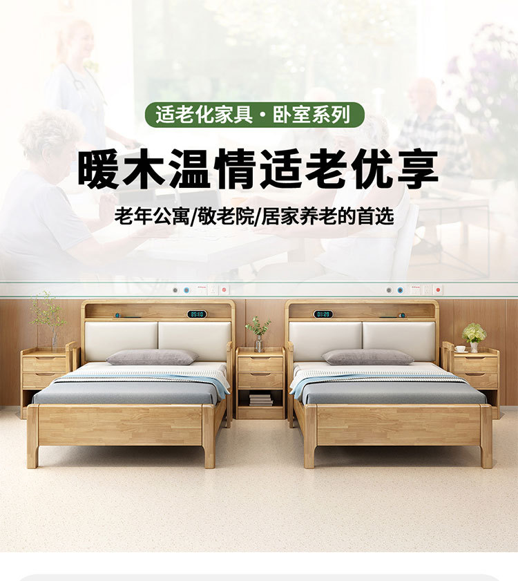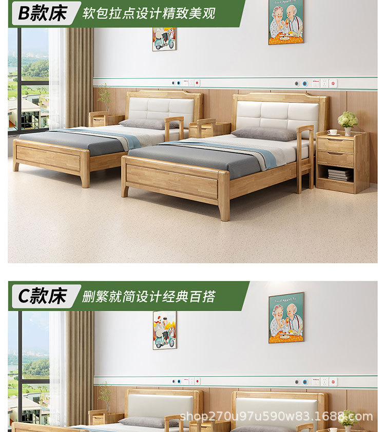 노인에게 적합한 원목 침대 가구 세트 북유럽 노인 건강 센터 케어리퍼니싱 원목 침대 요양원 싱글 침대 노인용 대형 침대