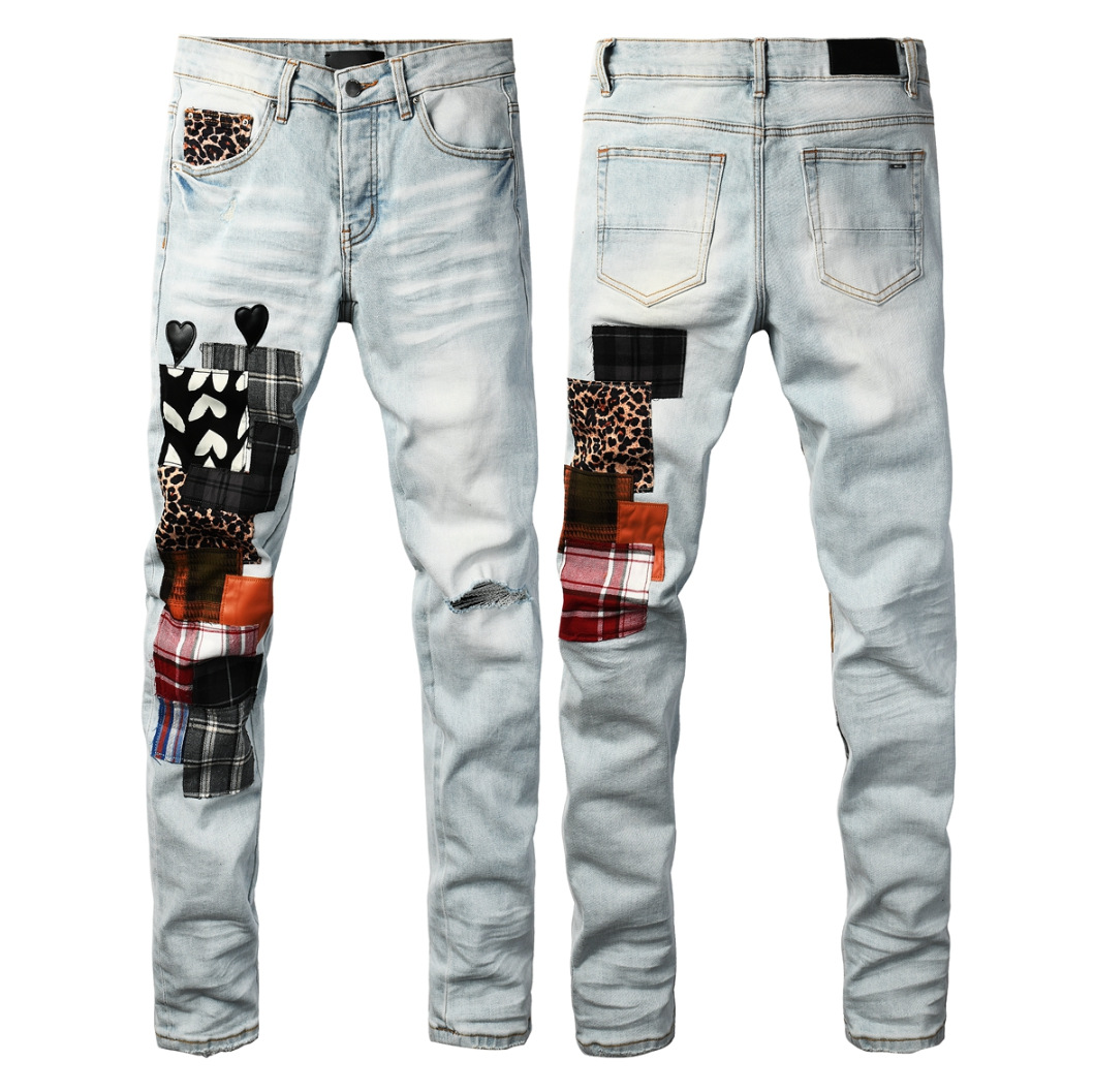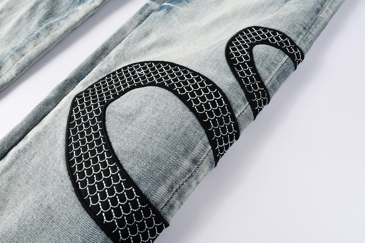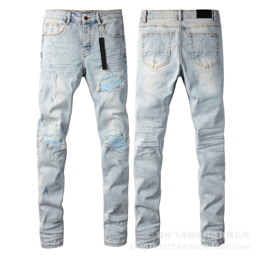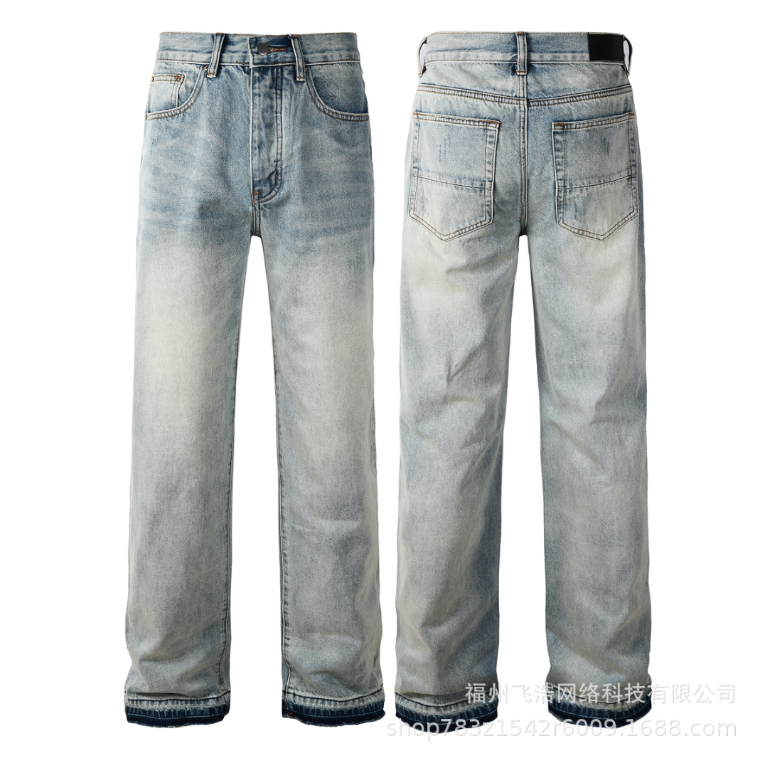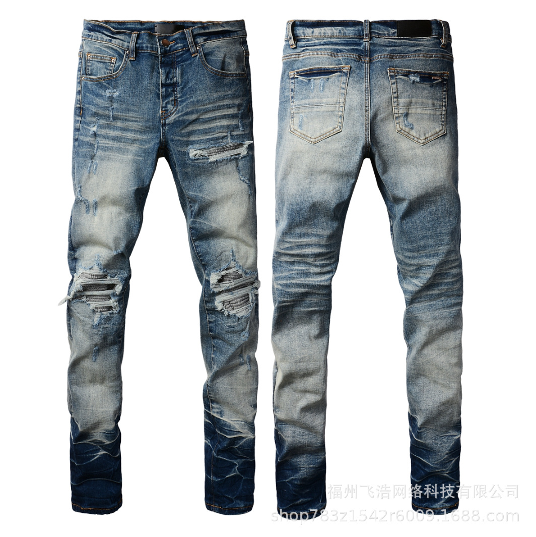 남성용 미국 스타일 기성품 청바지 슬림핏 스키니 팬츠 트렌디 브랜드 버튼 패치 TEMU 청바지 모듬 스타일스토어 가기