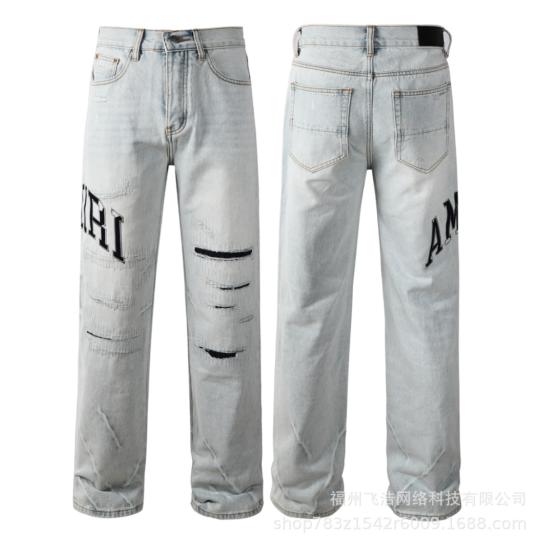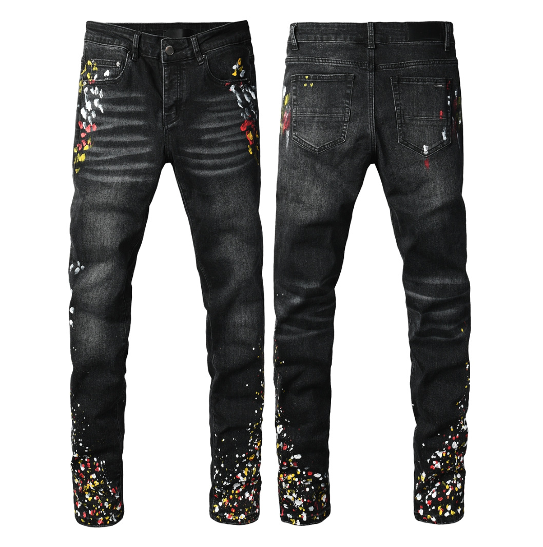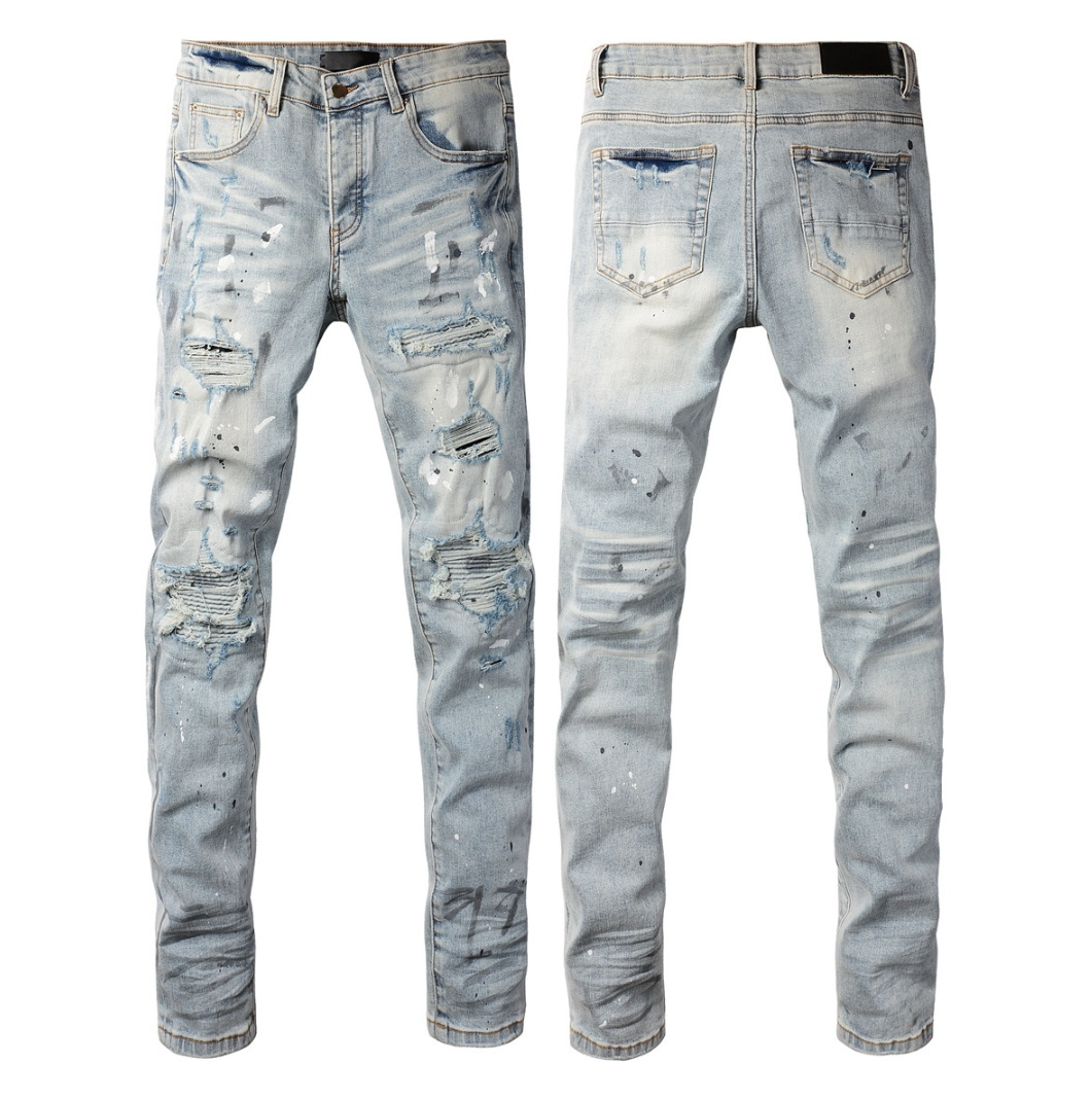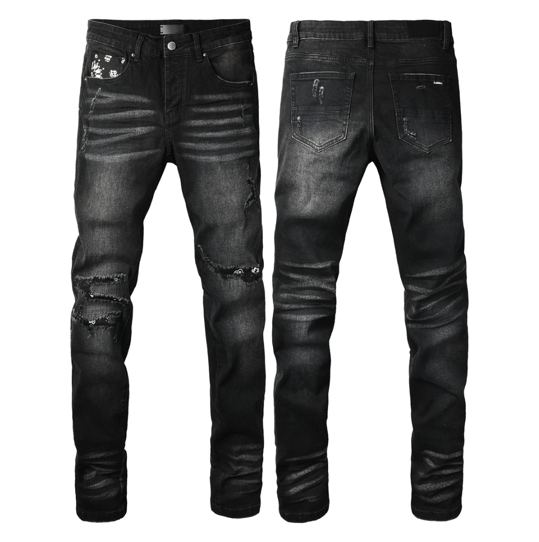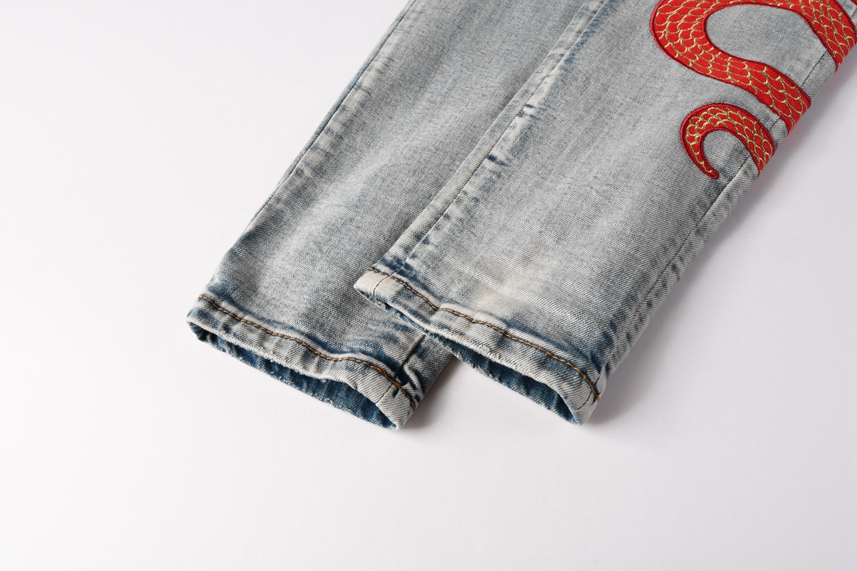 남성용 미국 스타일 기성품 청바지 슬림핏 스키니 팬츠 트렌디 브랜드 버튼 패치 TEMU 청바지 모듬 스타일스토어 가기