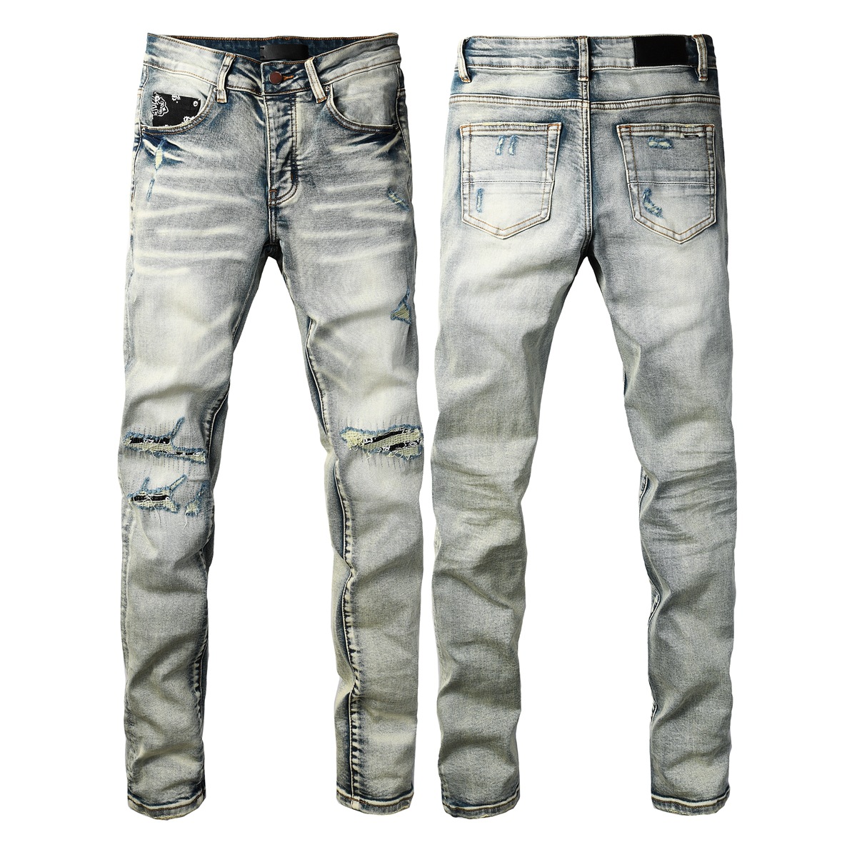 남성용 미국 스타일 기성품 청바지 슬림핏 스키니 팬츠 트렌디 브랜드 버튼 패치 TEMU 청바지 모듬 스타일