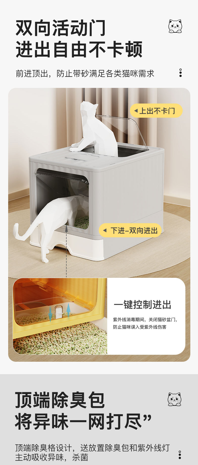 완전 밀폐형 대형 고양이 쓰레기통 접이식 서랍형 탈취 고양이 화장실 초대형 안티 스플래시 고양이 용품 도매스토어 가기