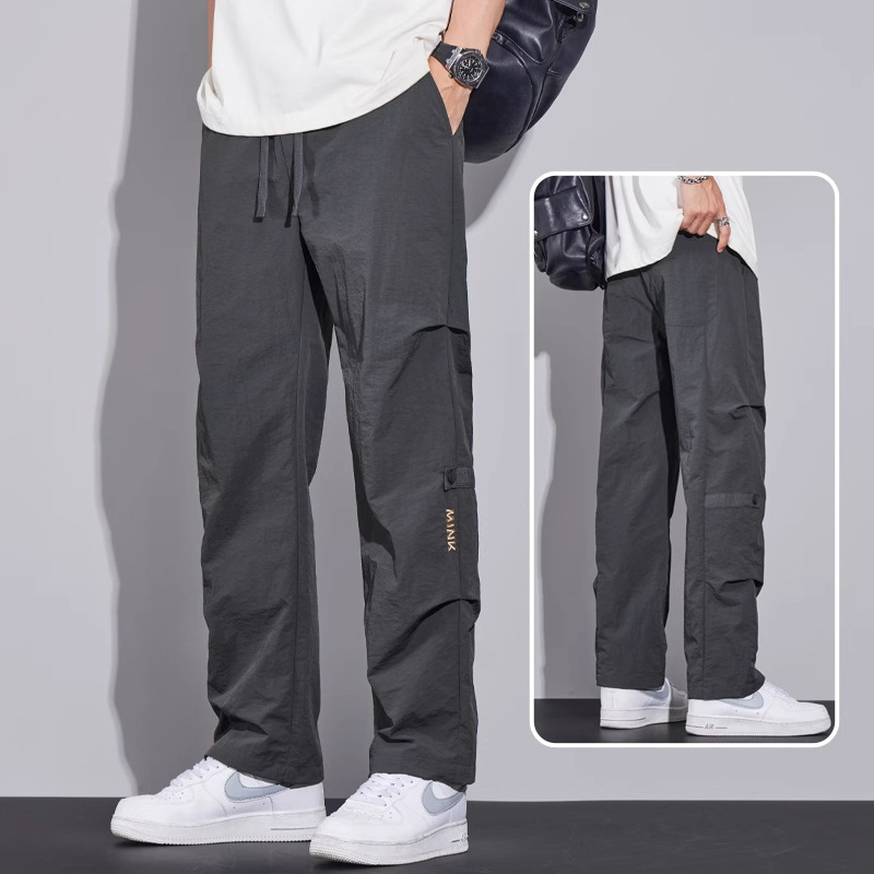 아이스 실크 작업복 남성용 스트레이트 여름 얇은 속건성 남성 바지 2025 남성용 새 캐주얼 바지