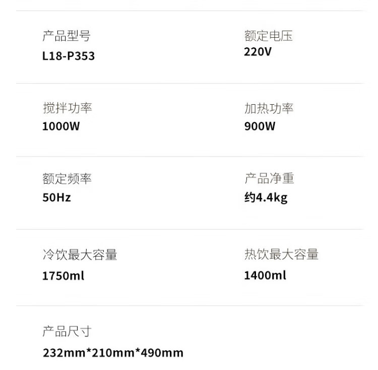 조영 L18-P353 벽 깨는 기계 두유 기계 가정용 1.75L 대용량 다기능 스마트 약속 필터 없음스토어 가기