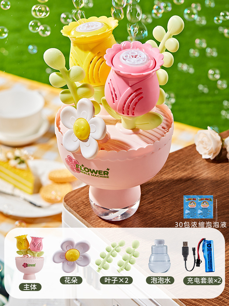 꽃다발 버블 머신 전기 완전 자동 버블 머신 빛 어린이 장난감 소년과 소녀를위한 선물 도매스토어 가기