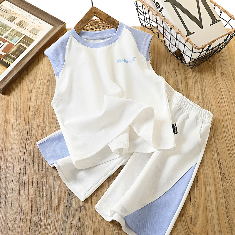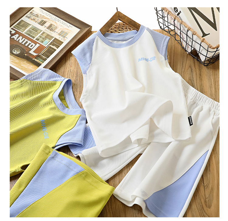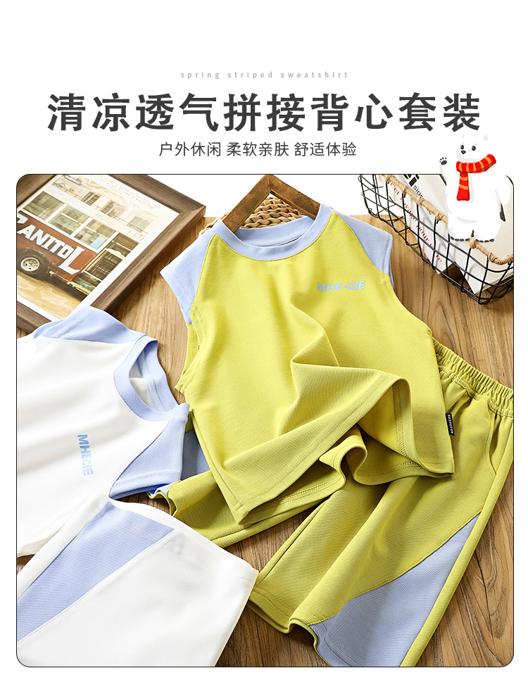 어린이 여름 조끼 세트 2025 얇은 중대형 어린이 소년 농구 유니폼 한국 스타일 조끼 반바지 투피스 세트