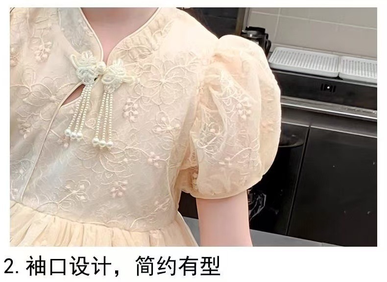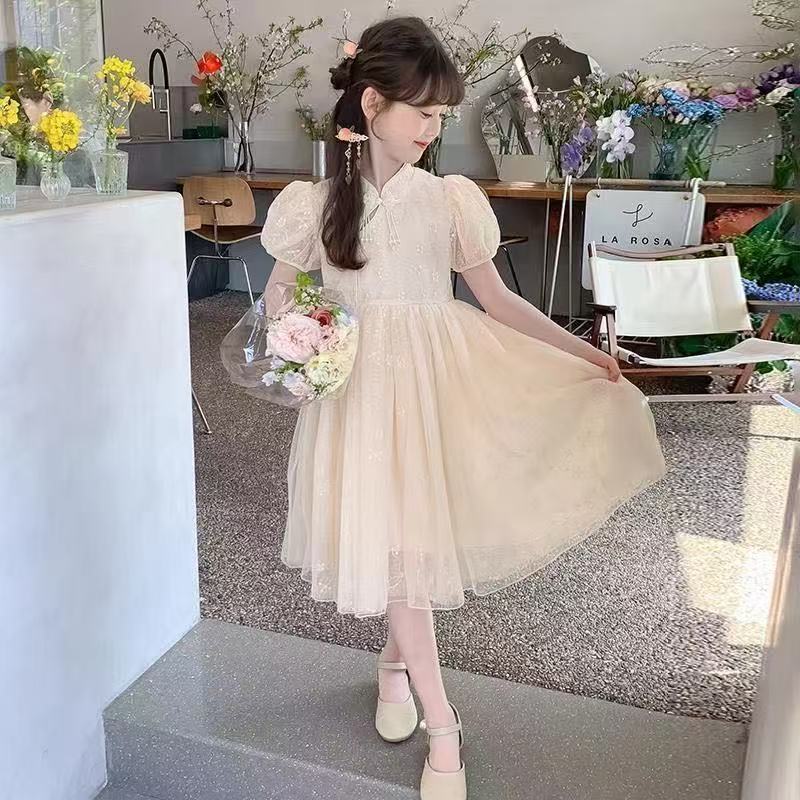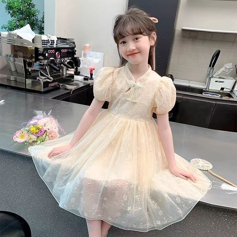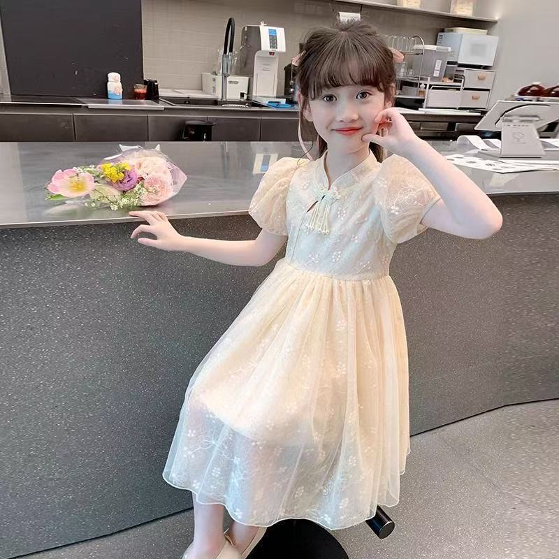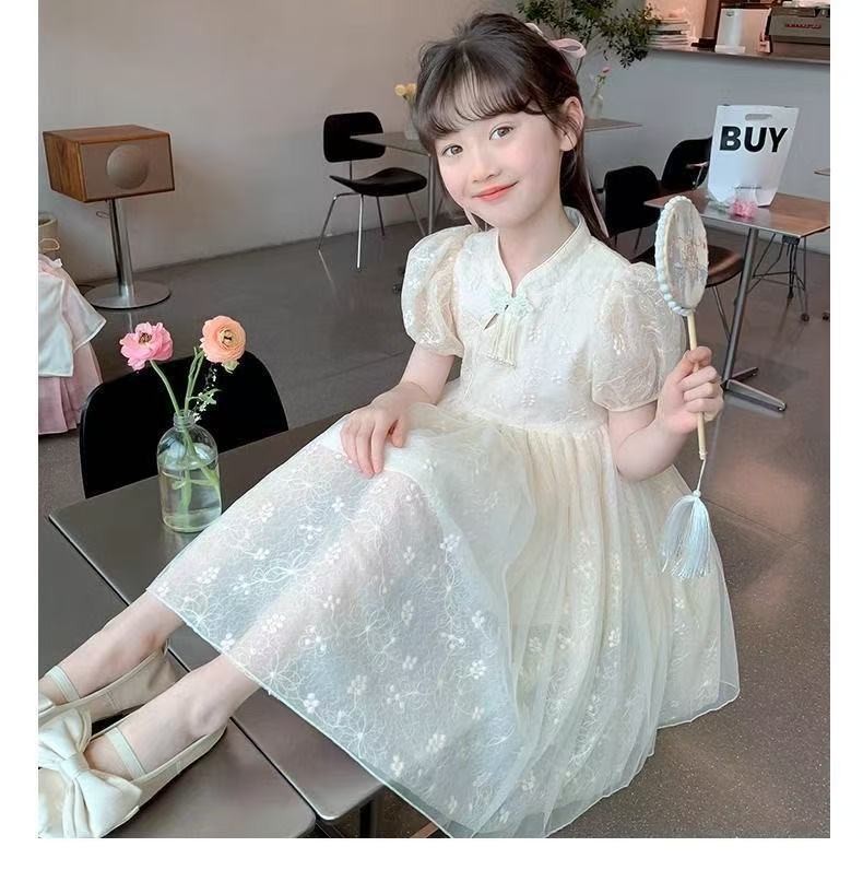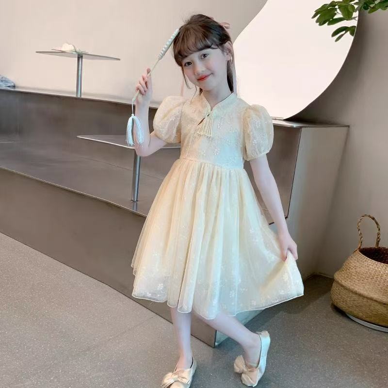 여자 여름 민족 스타일 드레스 2025 새로운 여름 유행 어린이 Hanfu 공주 드레스 여자 스커트