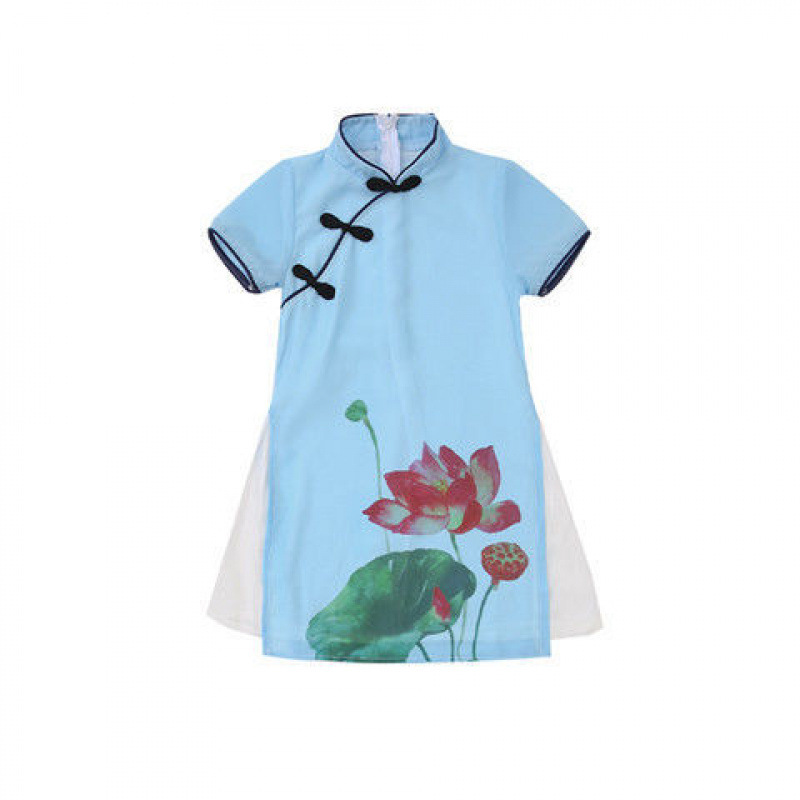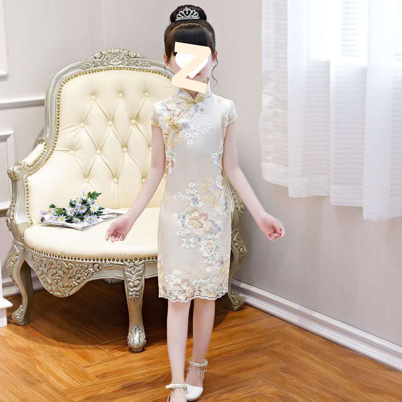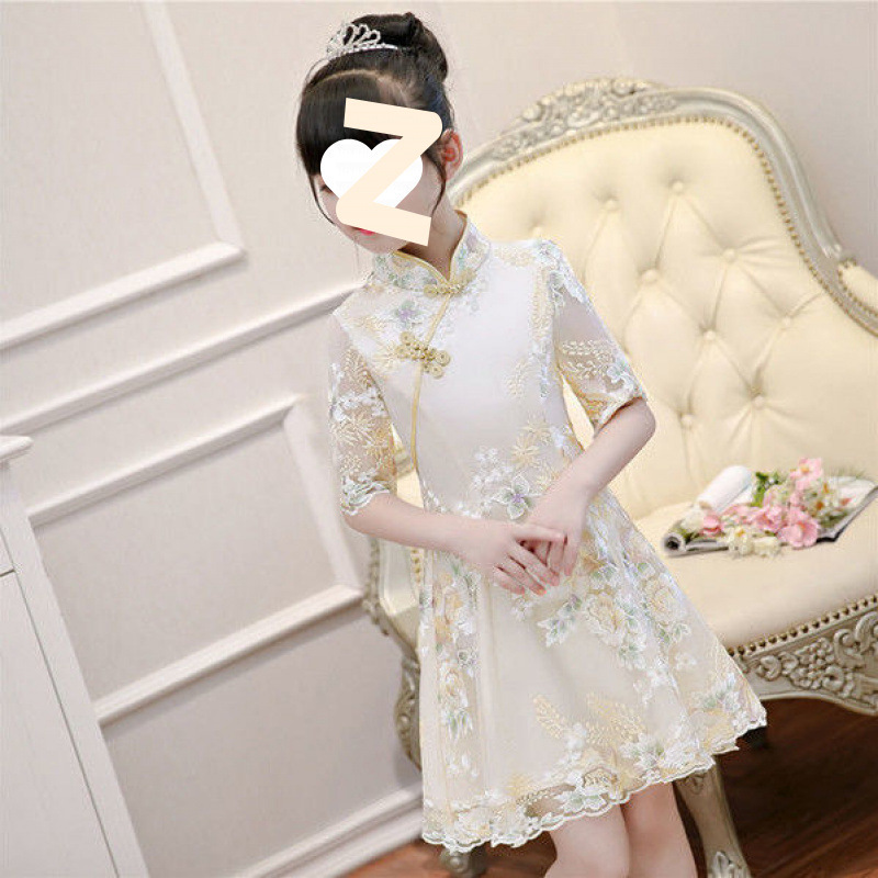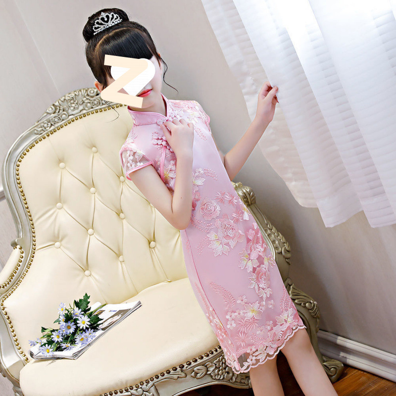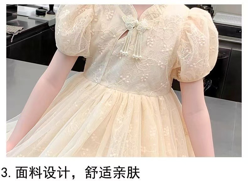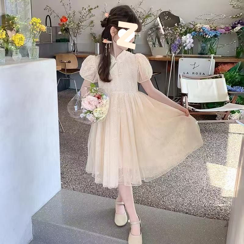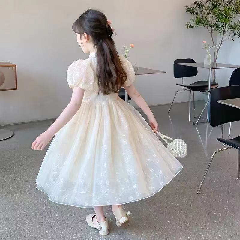여자 여름 민족 스타일 드레스 2025 새로운 여름 유행 어린이 Hanfu 공주 드레스 여자 스커트