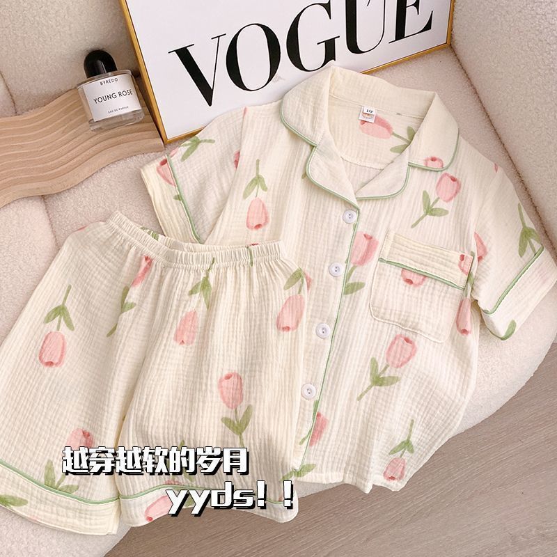 여아 잠옷 여름 신작 인기 얇은 반팔 반바지 아동 여아 가정복 중대형 아동복