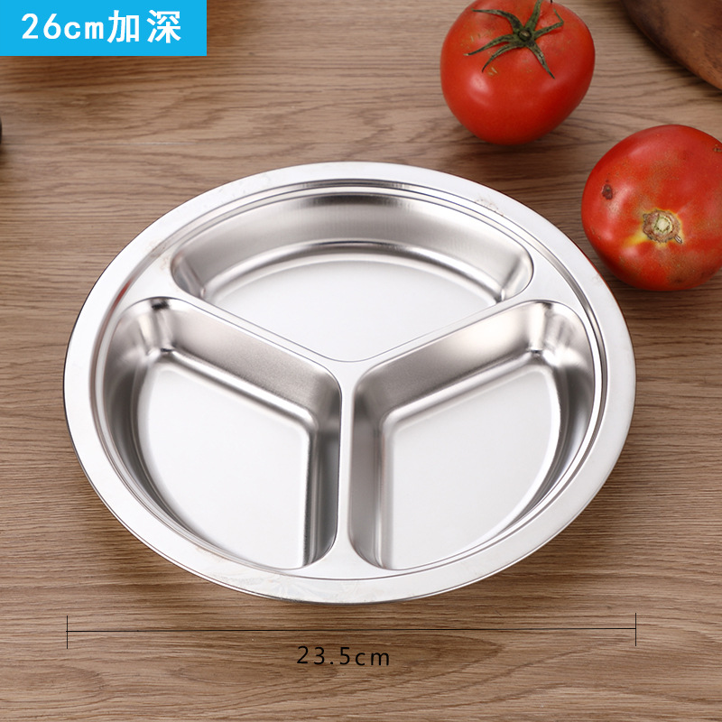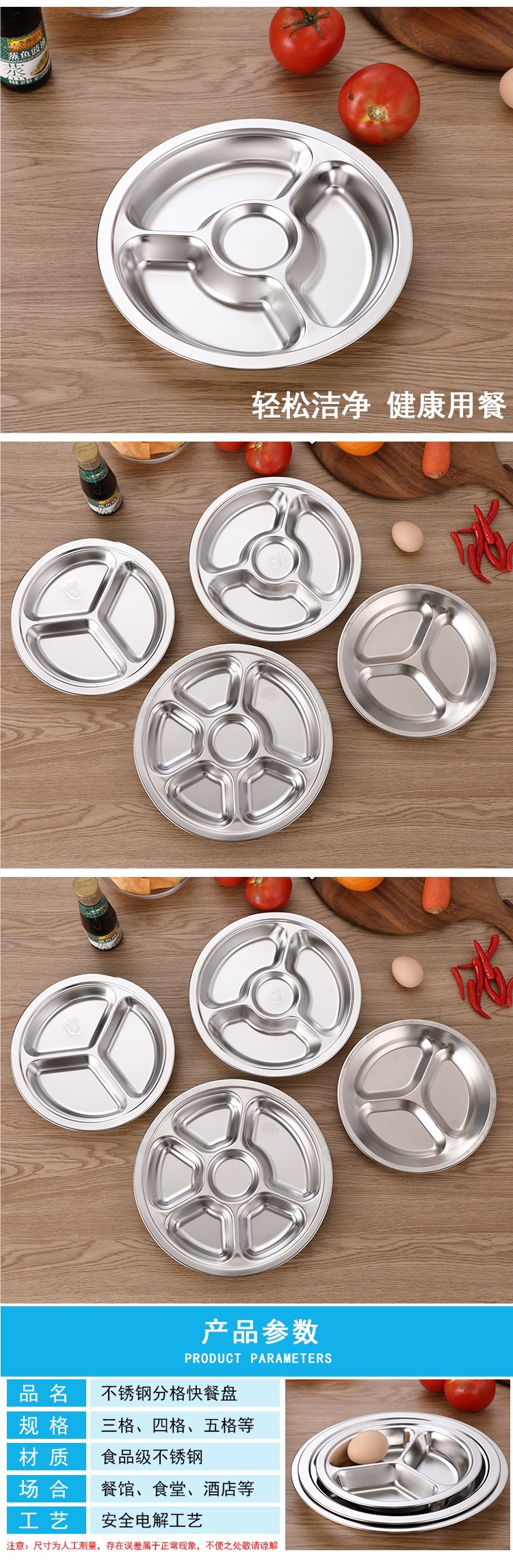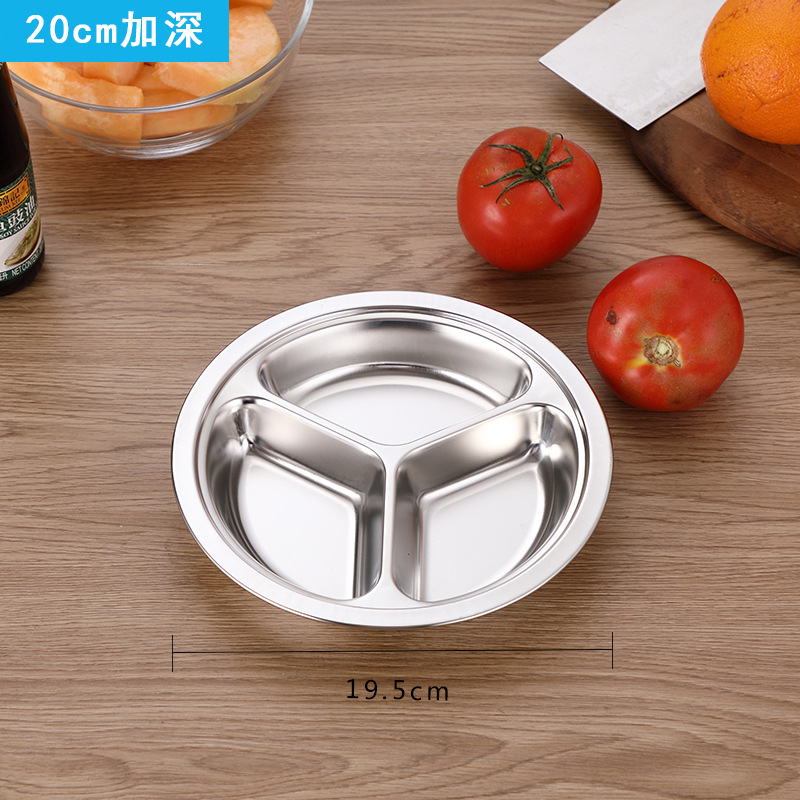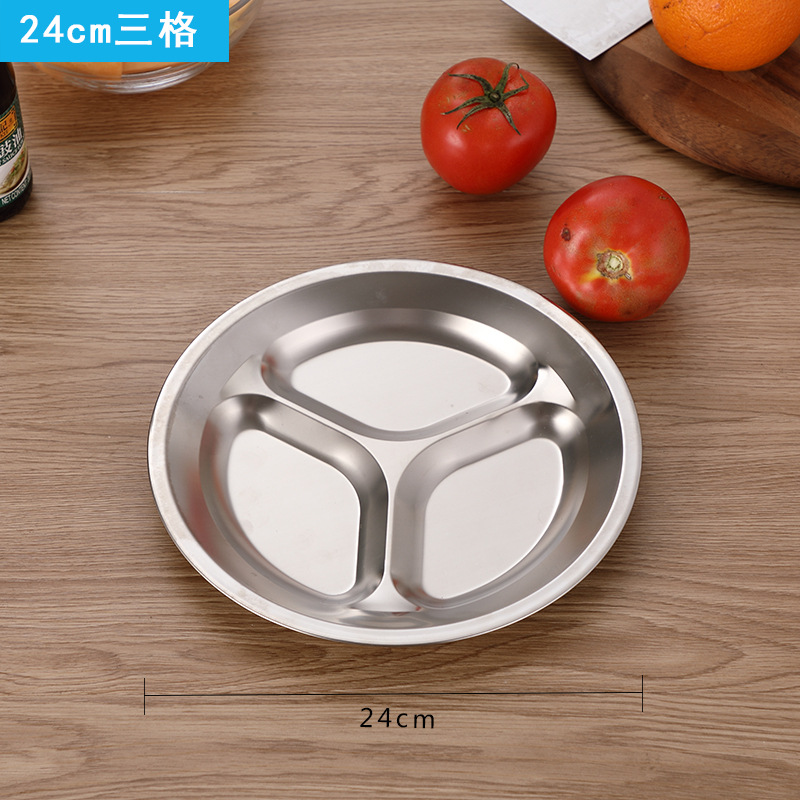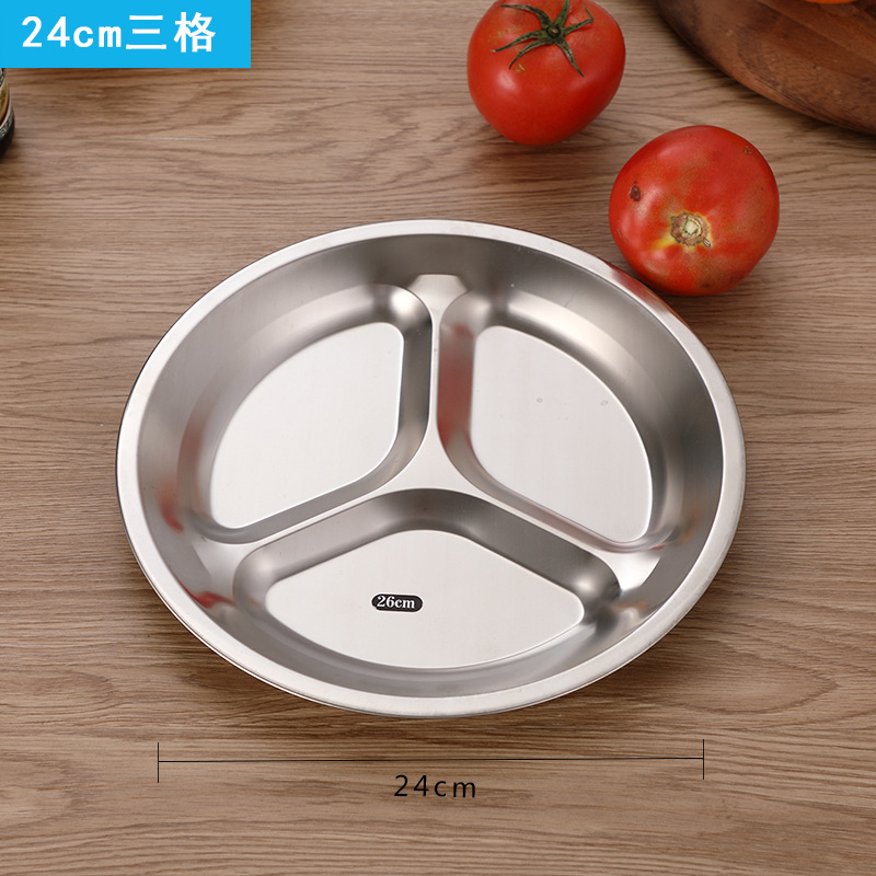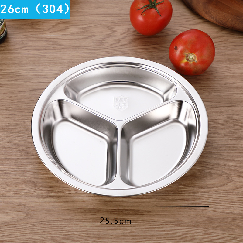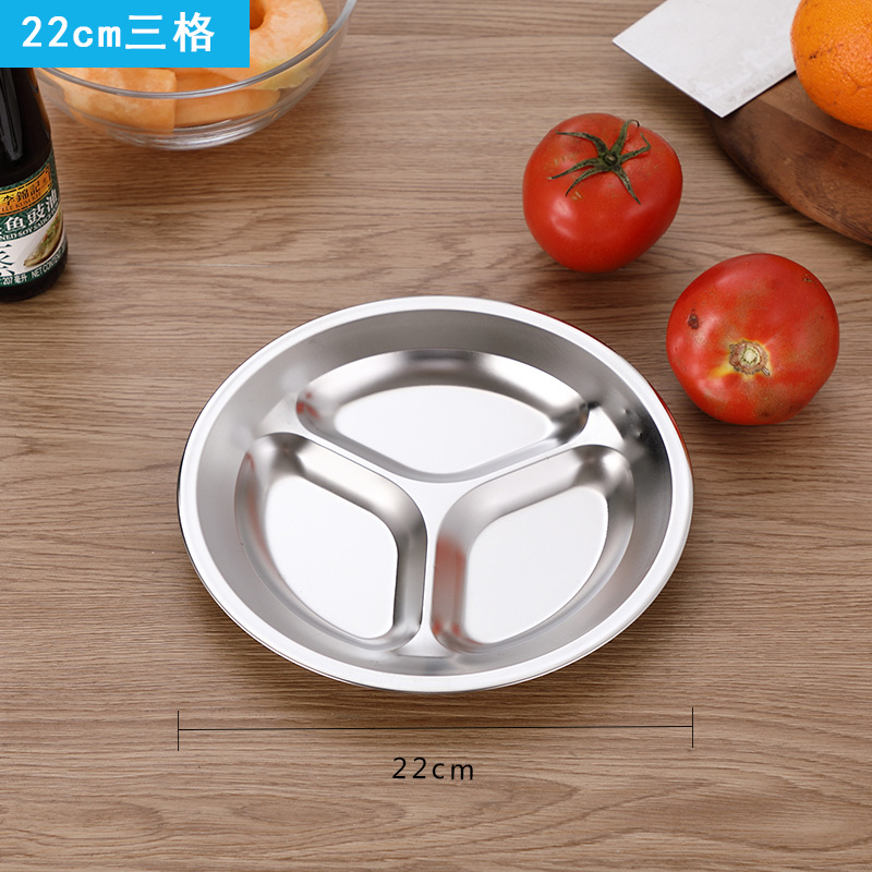 유치원 라운드 304 스테인레스 스틸 패스트 푸드 접시 학교 학생 식기 분리 3 셀 캔틴 식사 접시스토어 가기