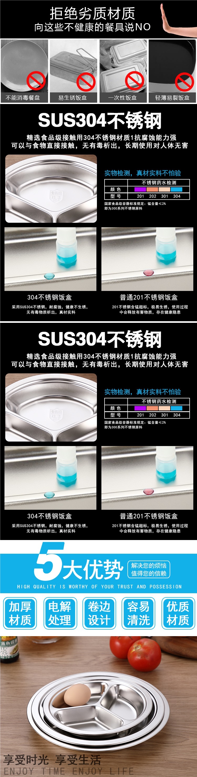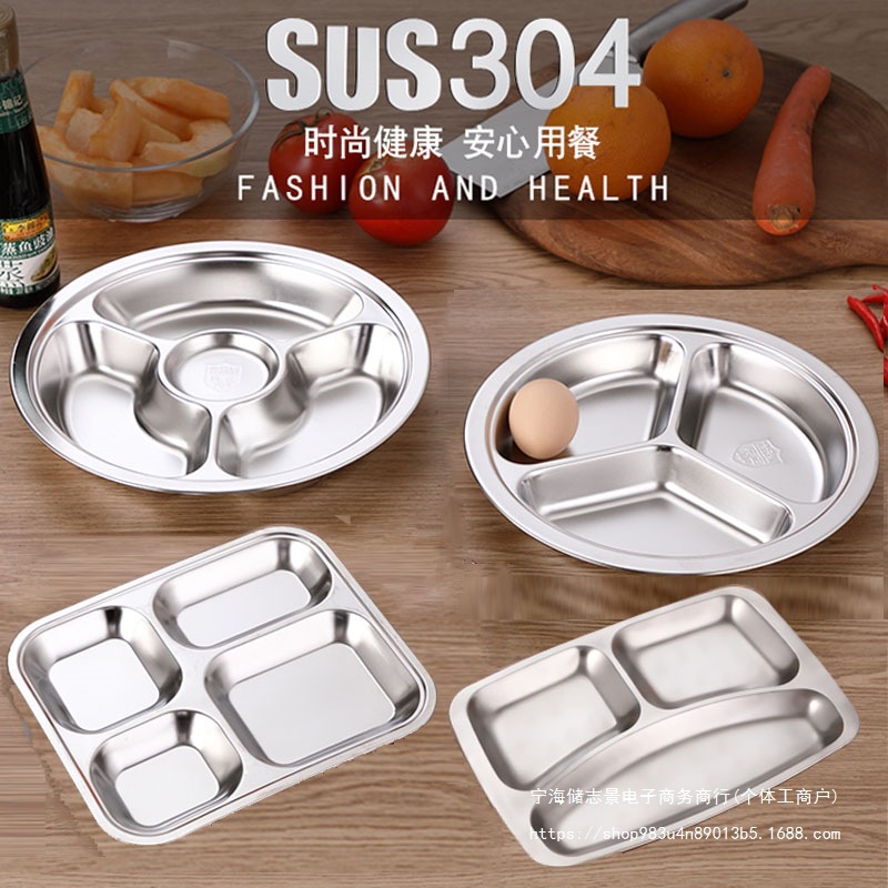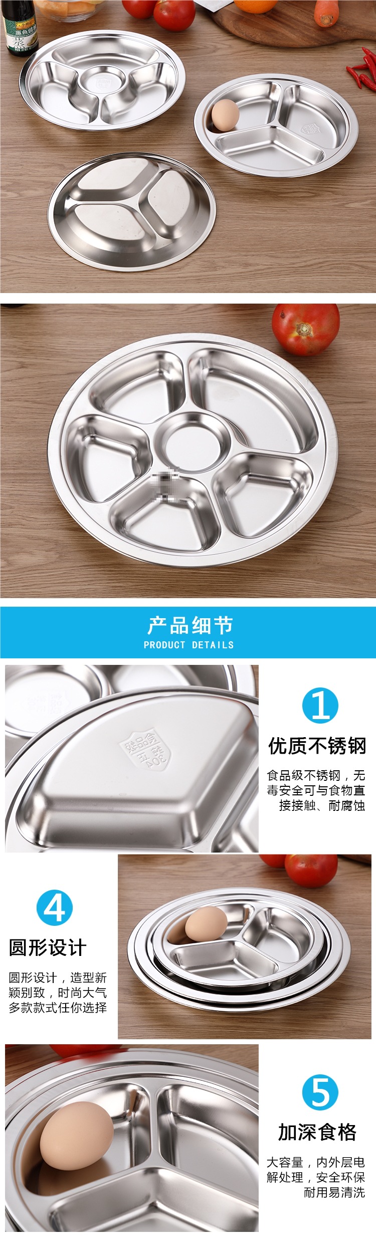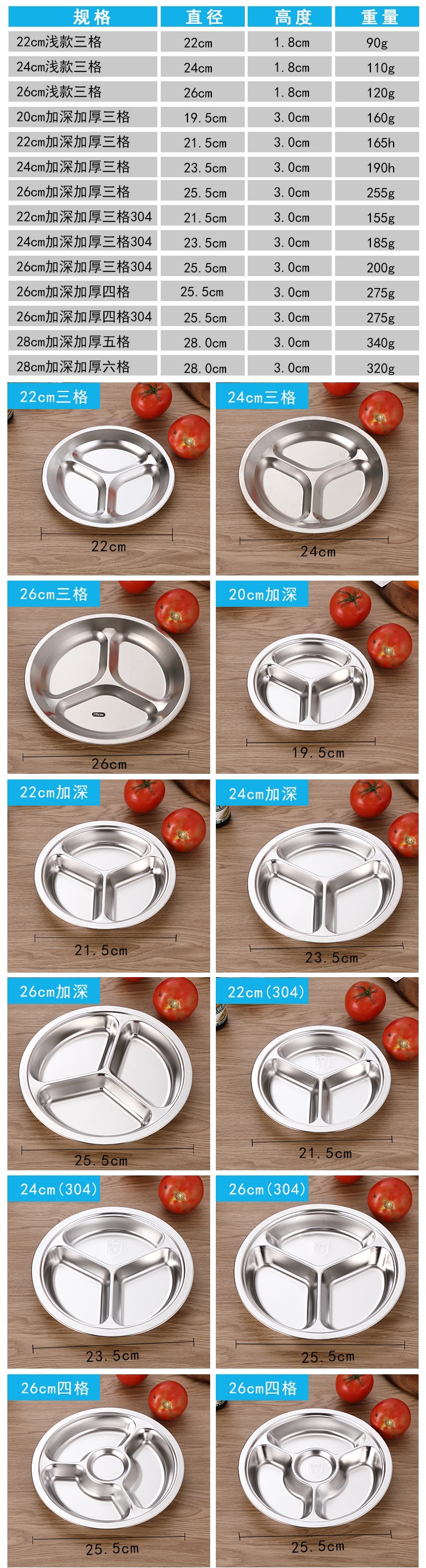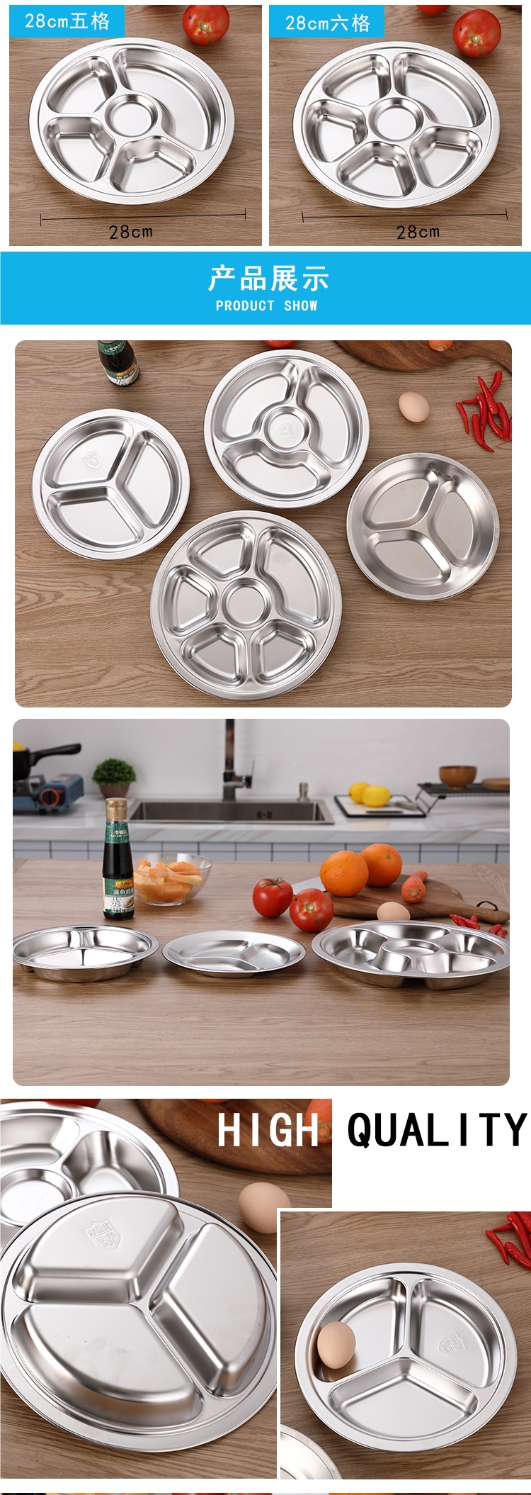유치원 라운드 304 스테인레스 스틸 패스트 푸드 접시 학교 학생 식기 분리 3 셀 캔틴 식사 접시스토어 가기