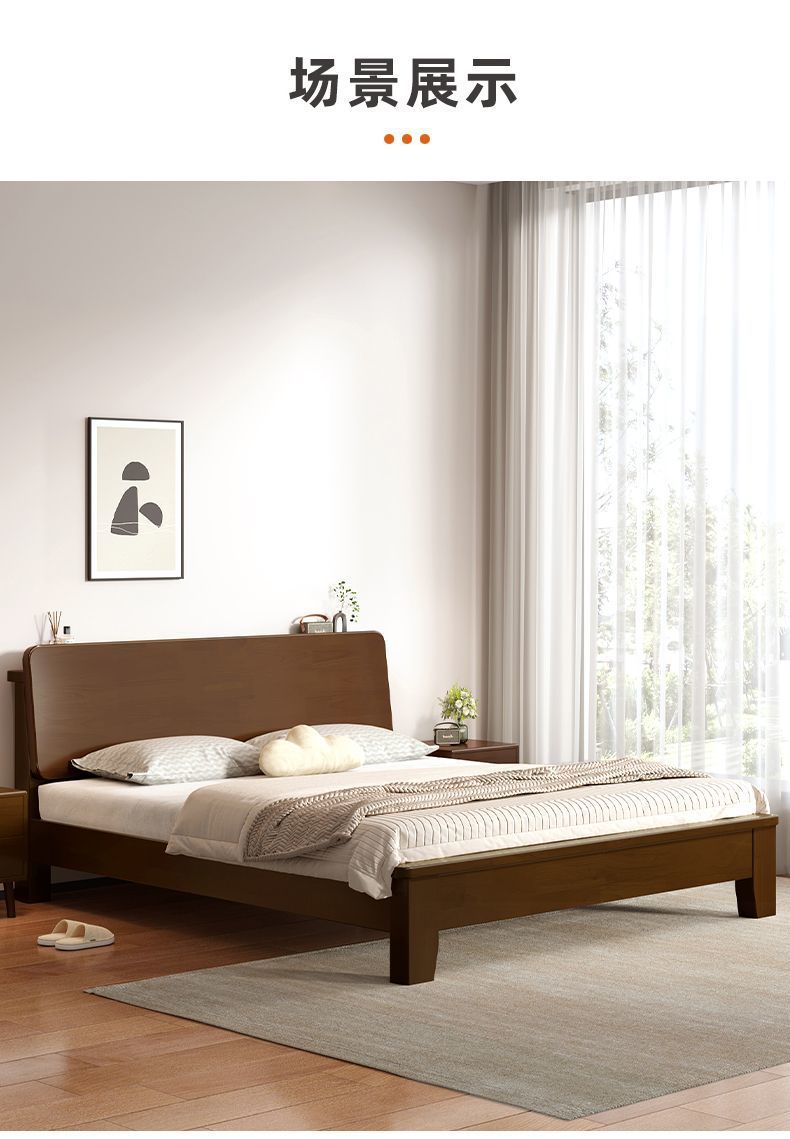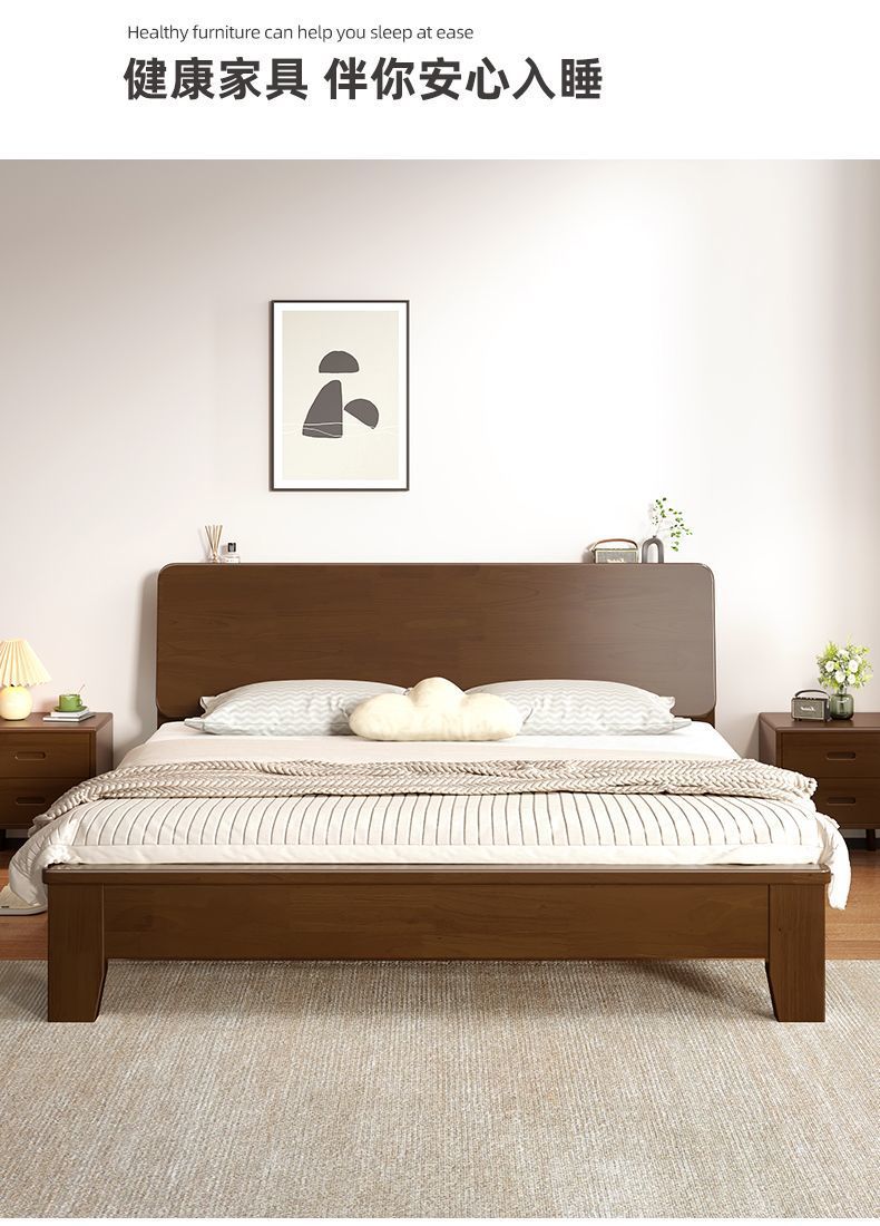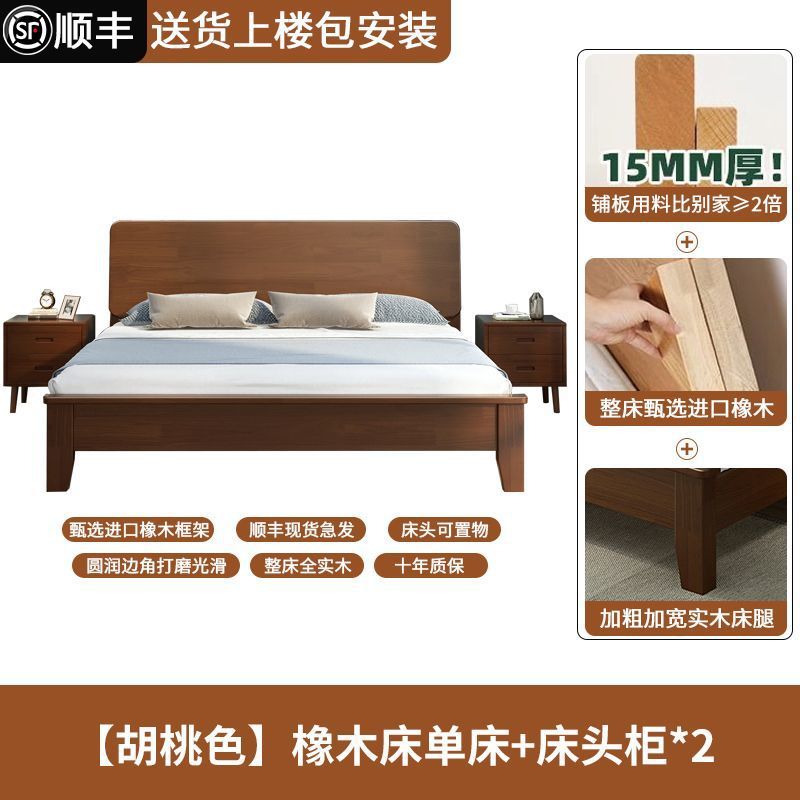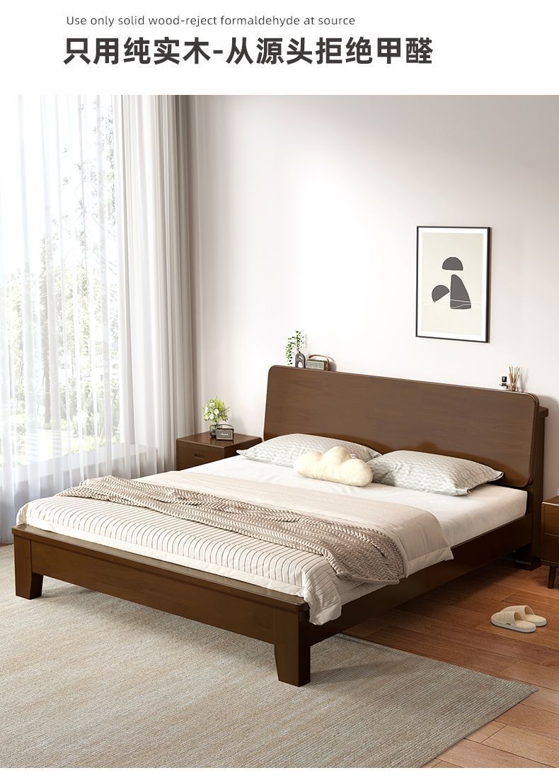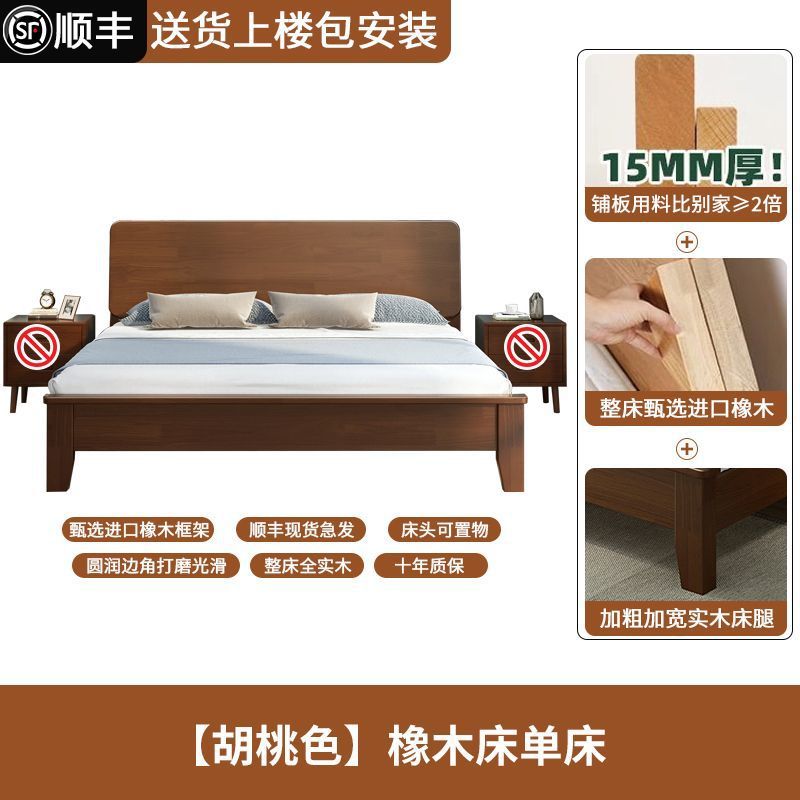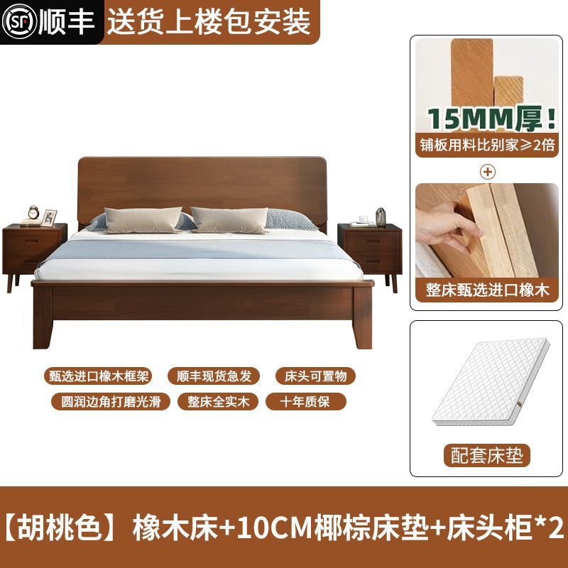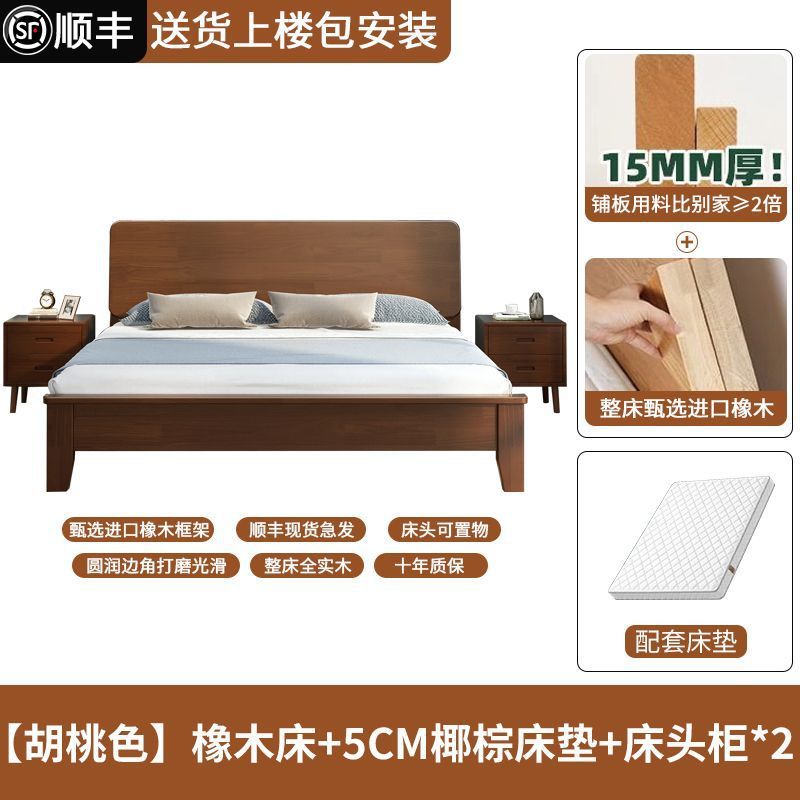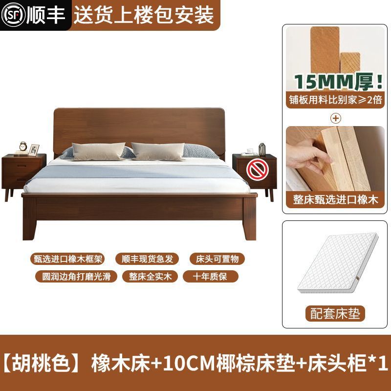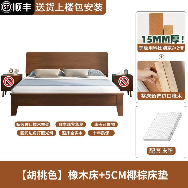 호두색 라이트 럭셔리 오크 침대 원목 침대 모던 1.5m 더블 침대 1.8m 마스터 침실 1.2m 원목 침대 전체 원목