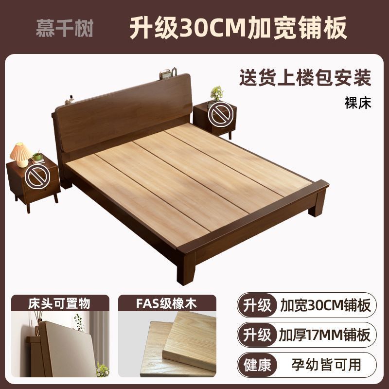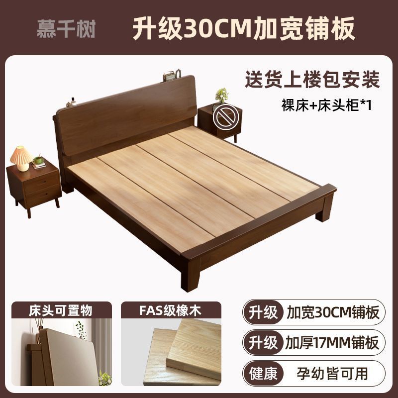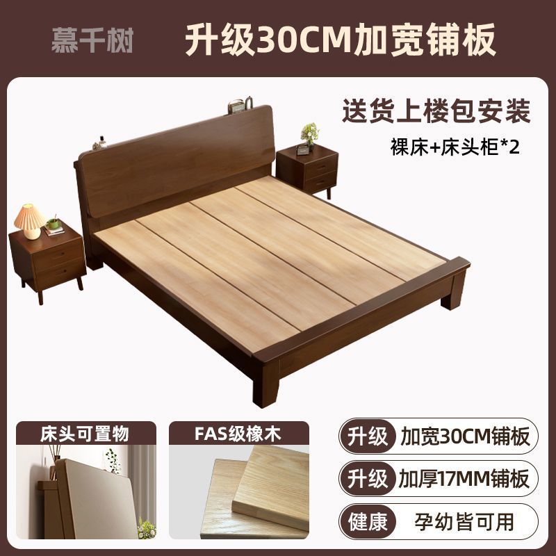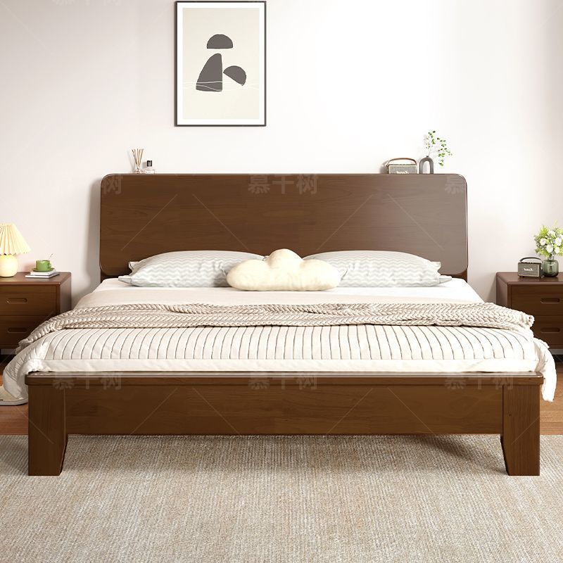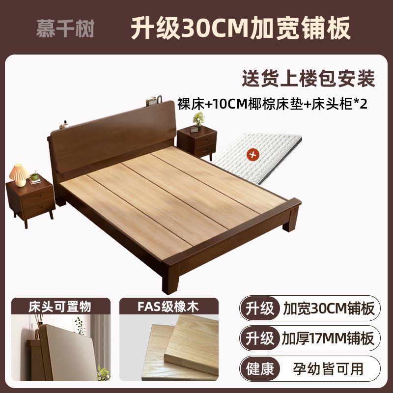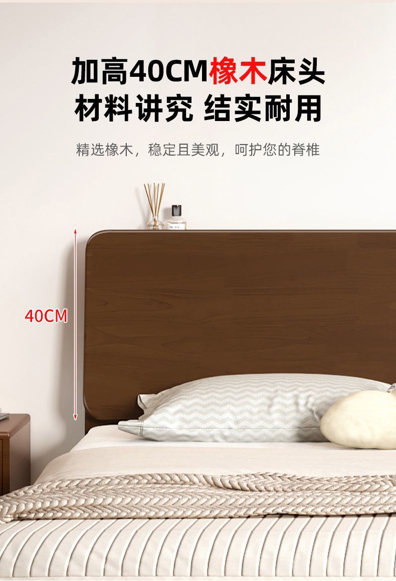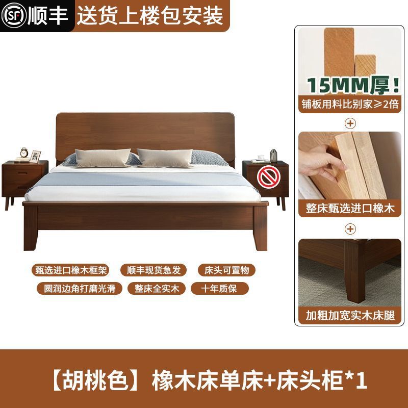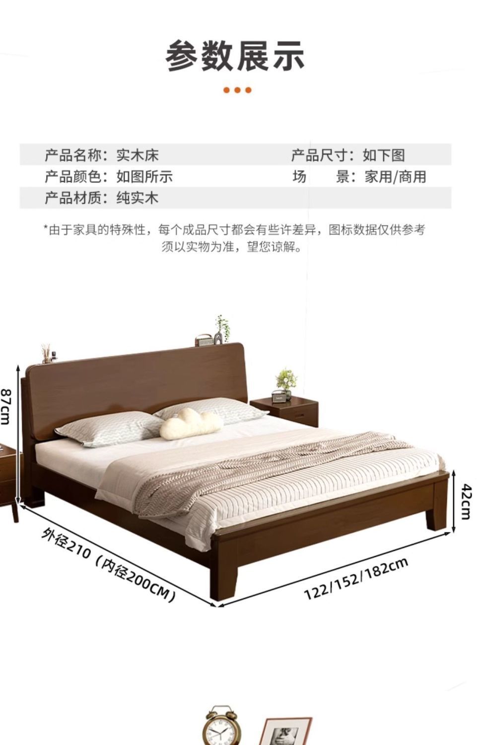 호두색 라이트 럭셔리 오크 침대 원목 침대 모던 1.5m 더블 침대 1.8m 마스터 침실 1.2m 원목 침대 전체 원목