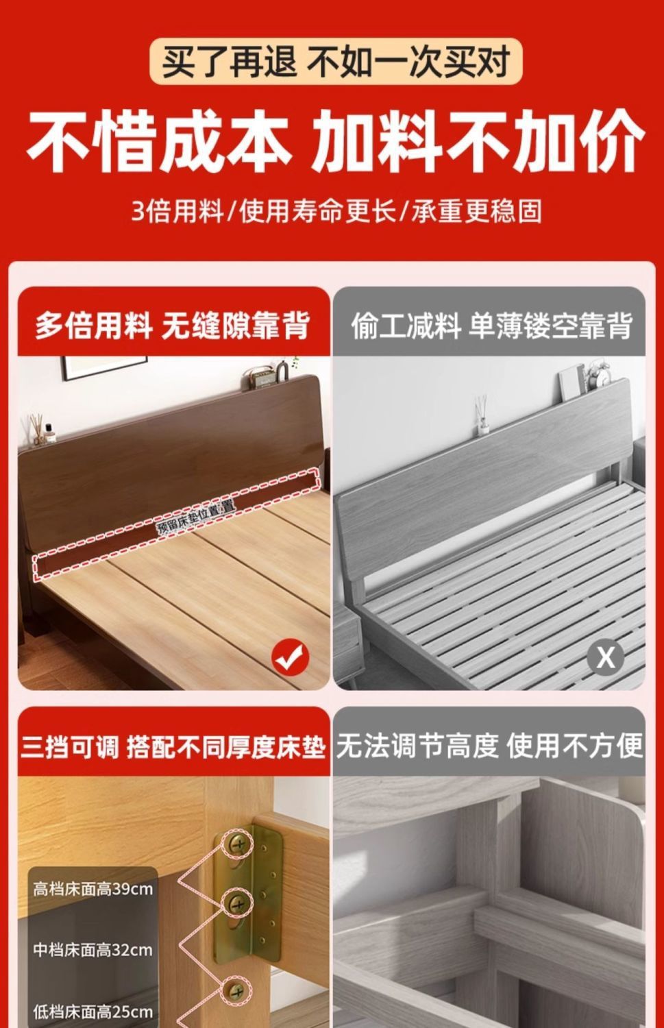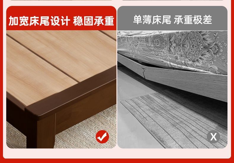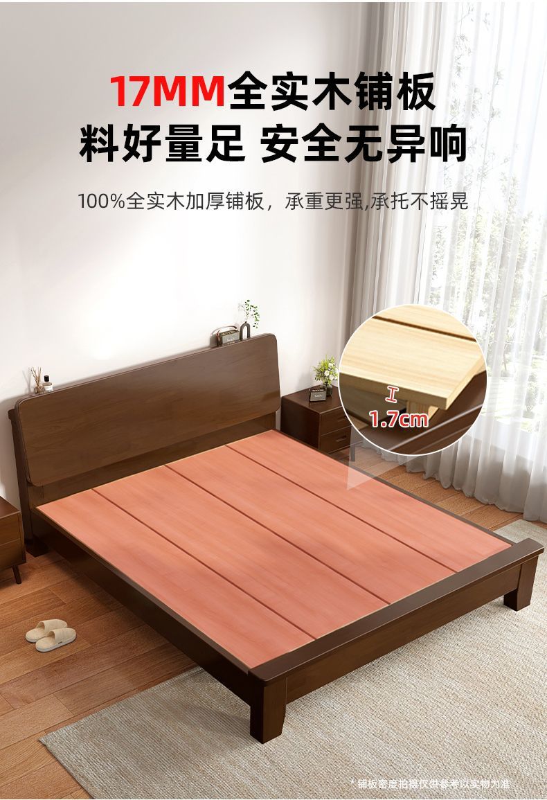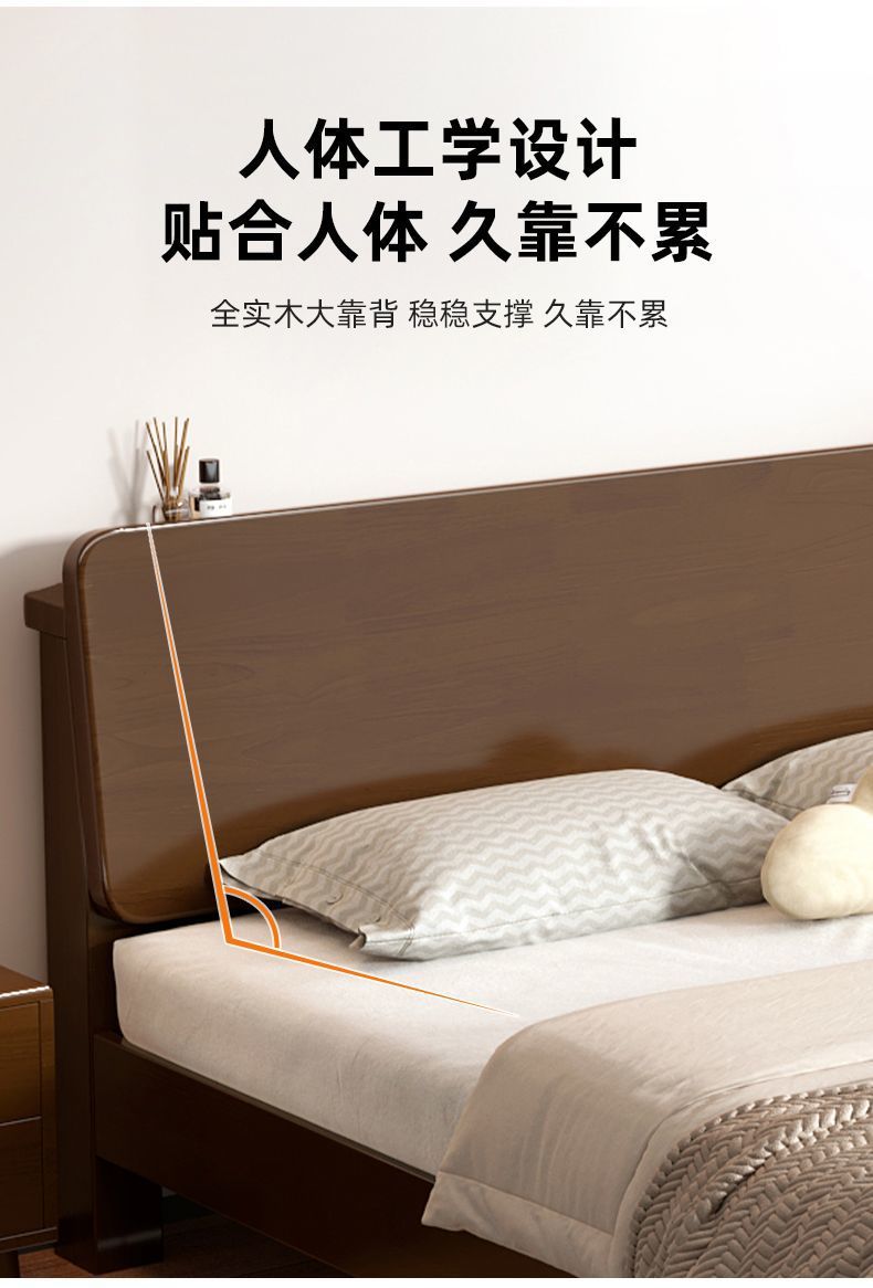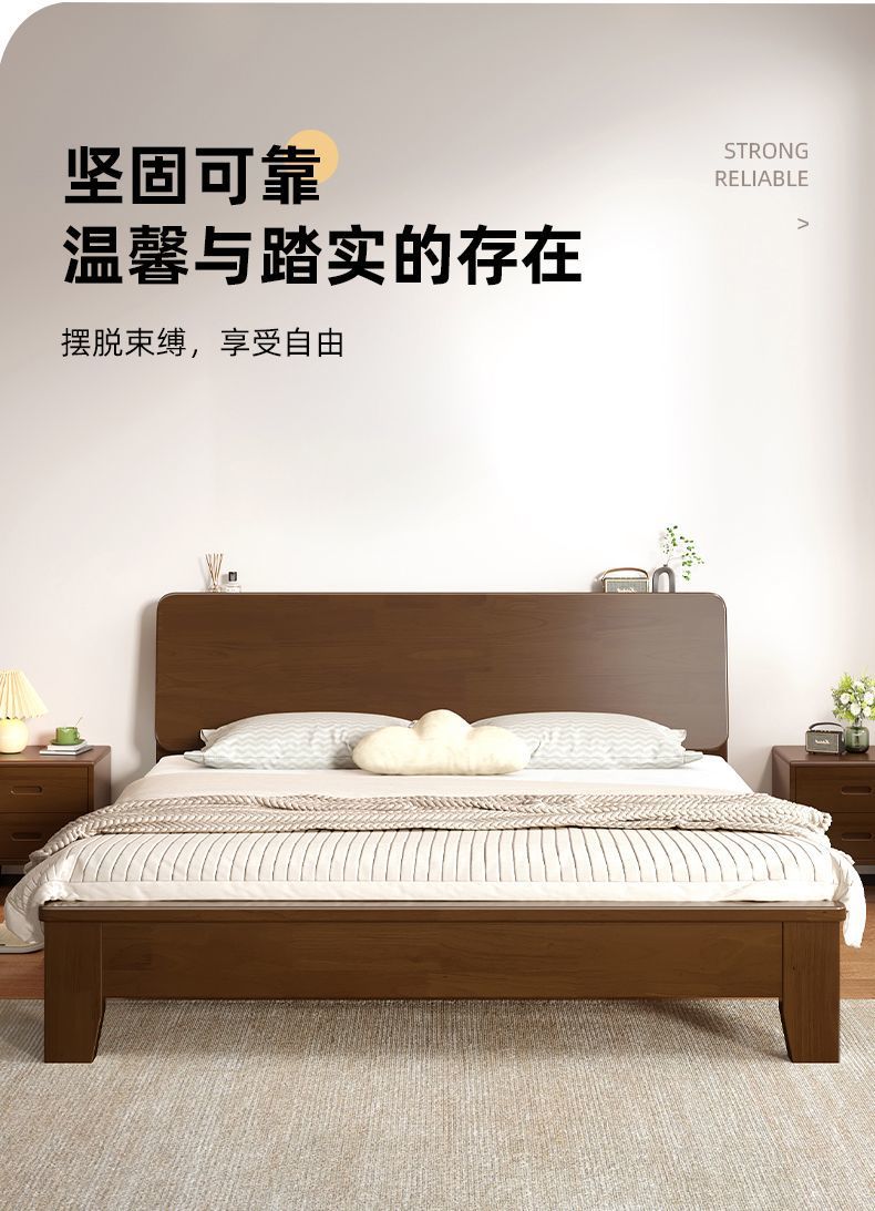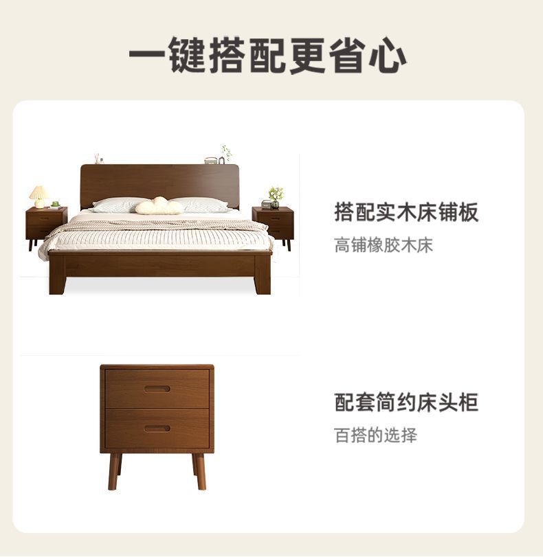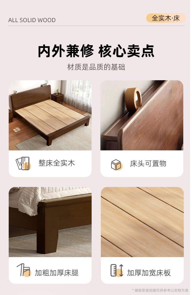 호두색 라이트 럭셔리 오크 침대 원목 침대 모던 1.5m 더블 침대 1.8m 마스터 침실 1.2m 원목 침대 전체 원목