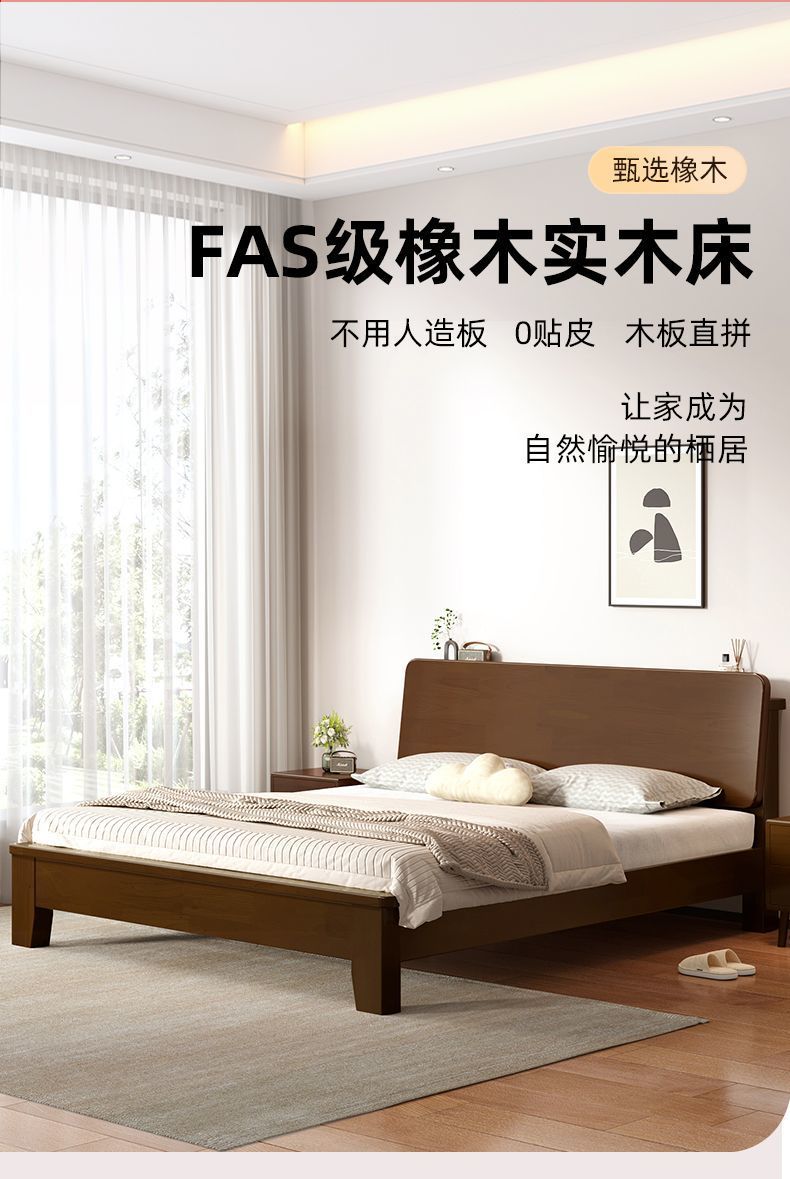 호두색 라이트 럭셔리 오크 침대 원목 침대 모던 1.5m 더블 침대 1.8m 마스터 침실 1.2m 원목 침대 전체 원목스토어 가기