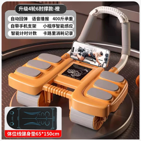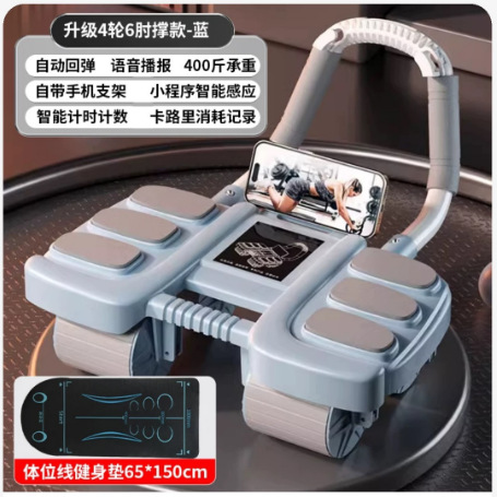 2024 새로운 4륜 복부 휠, 자동 리바운드 팔꿈치 지지대, 복근 운동 도구, 6개의 팔꿈치 지지대 복근 휠