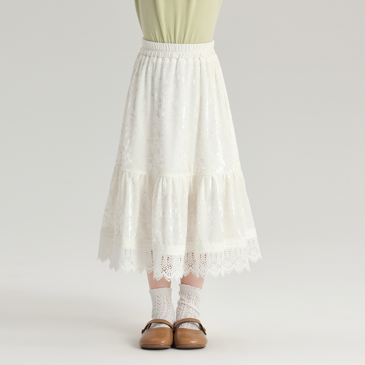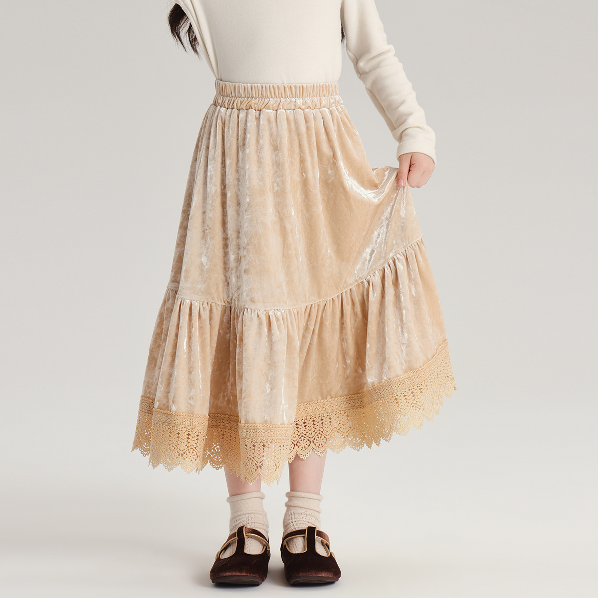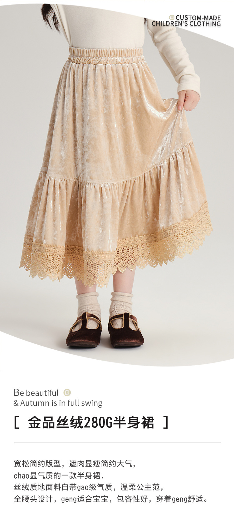 2024 새로운 가을 스타일 부드러운 기질 스타일 소녀 스커트 280g 벨벳 질감 소녀 공주 스타일 스커트