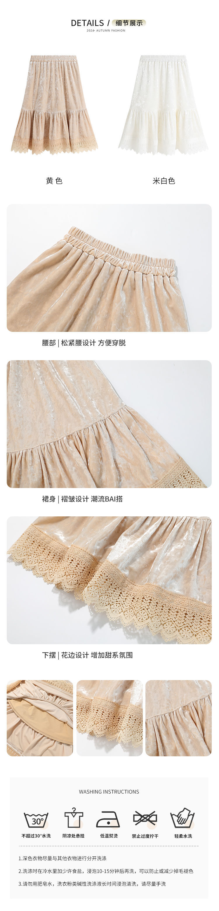 2024 새로운 가을 스타일 부드러운 기질 스타일 소녀 스커트 280g 벨벳 질감 소녀 공주 스타일 스커트스토어 가기