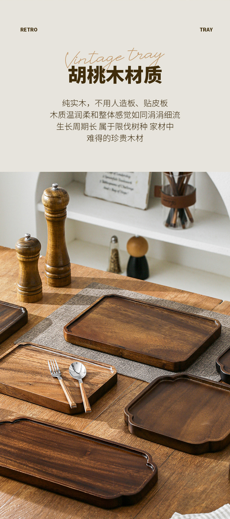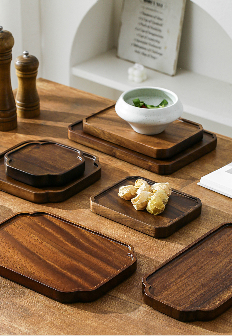 호두 트레이 단단한 나무 직사각형 가정용 물 컵 차 컵 트레이 일본식 나무 트레이 건조 차 트레이 식기 트레이