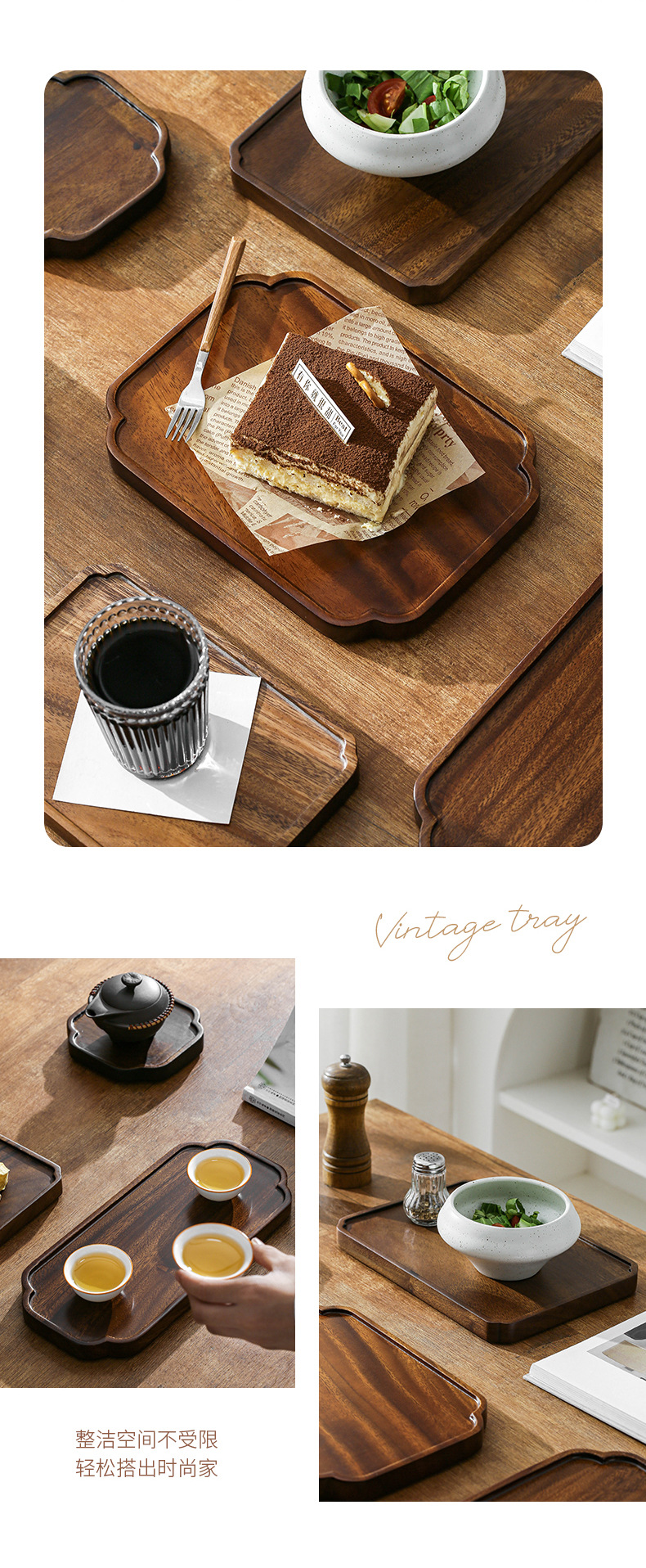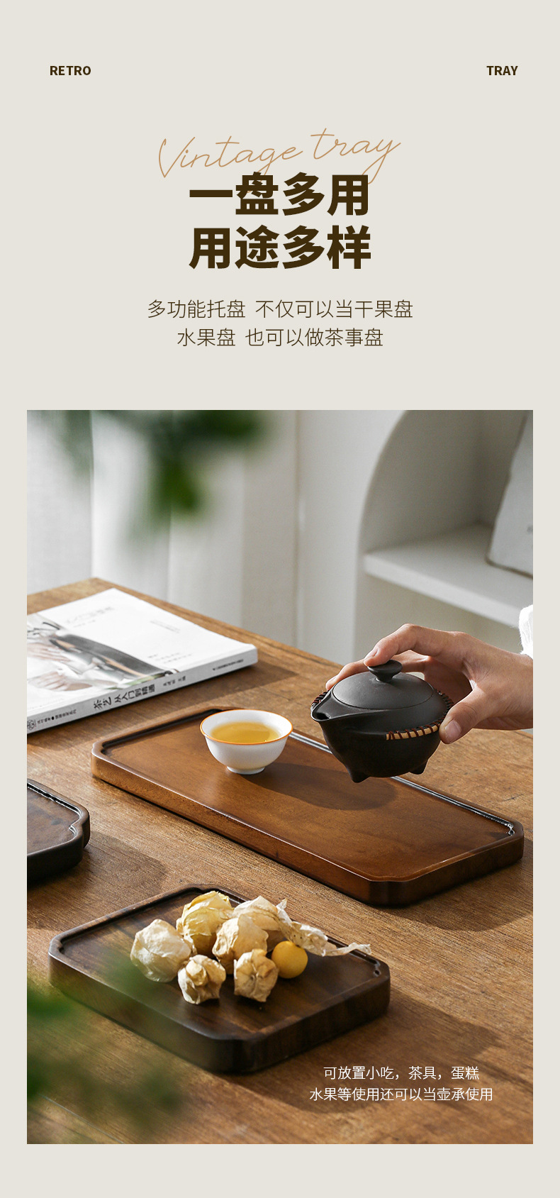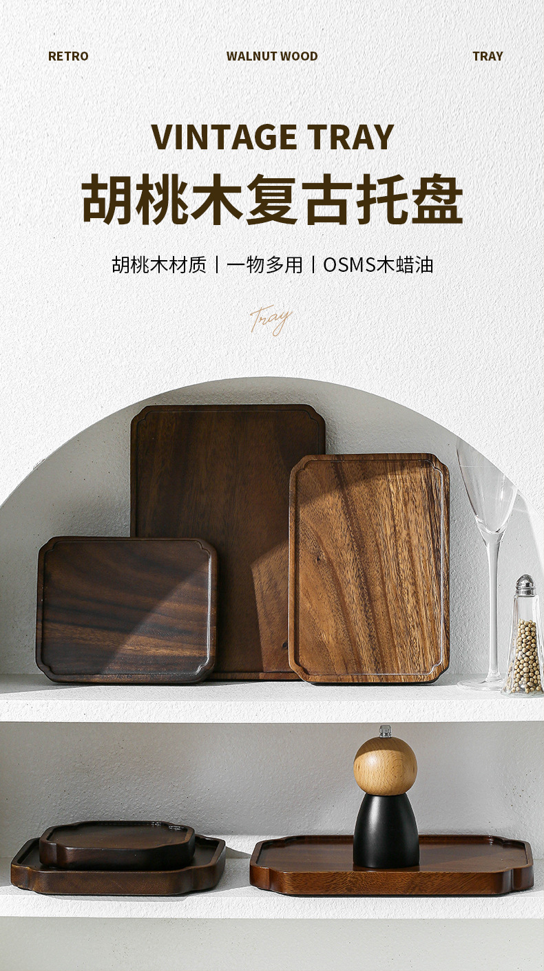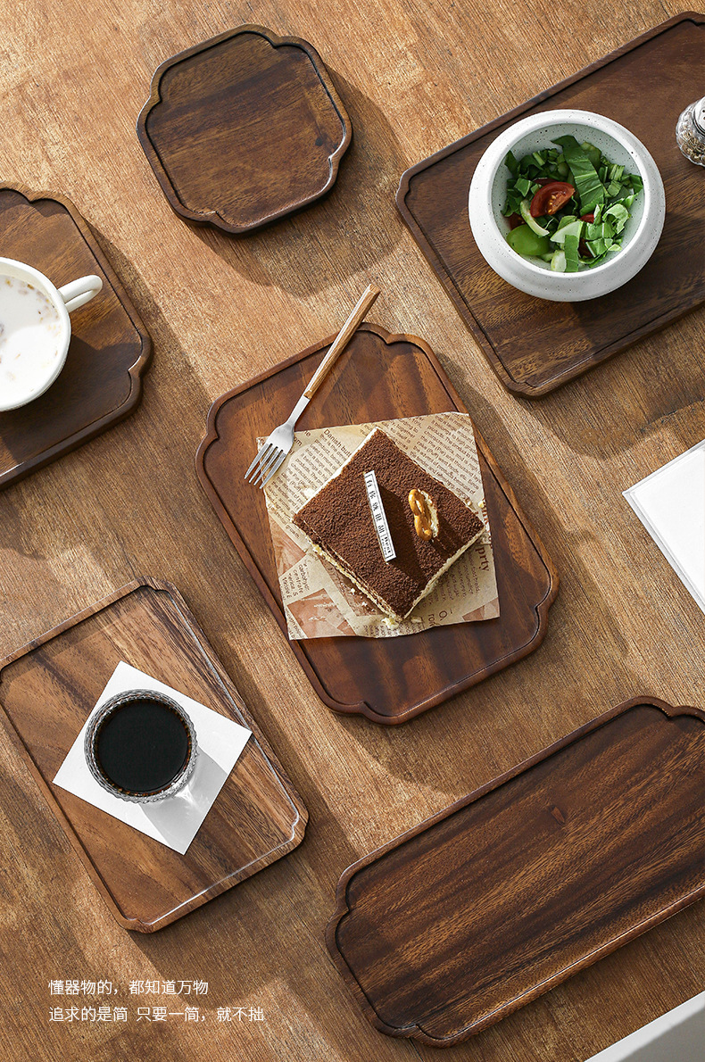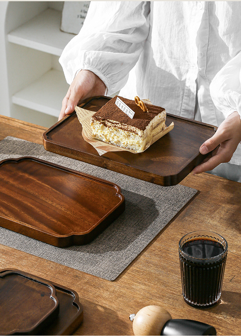 호두 트레이 단단한 나무 직사각형 가정용 물 컵 차 컵 트레이 일본식 나무 트레이 건조 차 트레이 식기 트레이스토어 가기