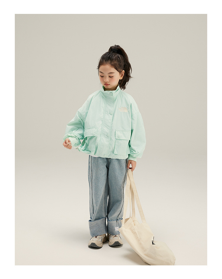 2024 봄 새로운 어린이 캐주얼 솔리드 컬러 자켓 코트 가볍고 통기성 소녀 코트 아기 작업복 자켓스토어 가기