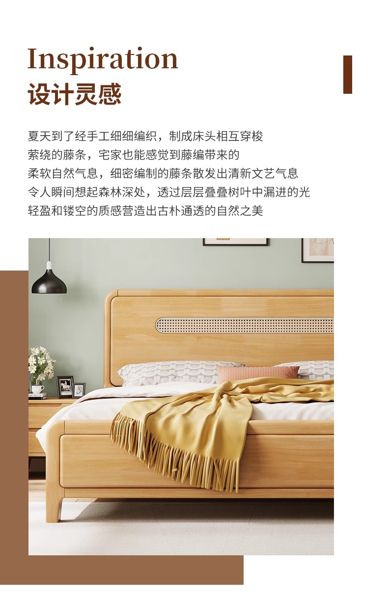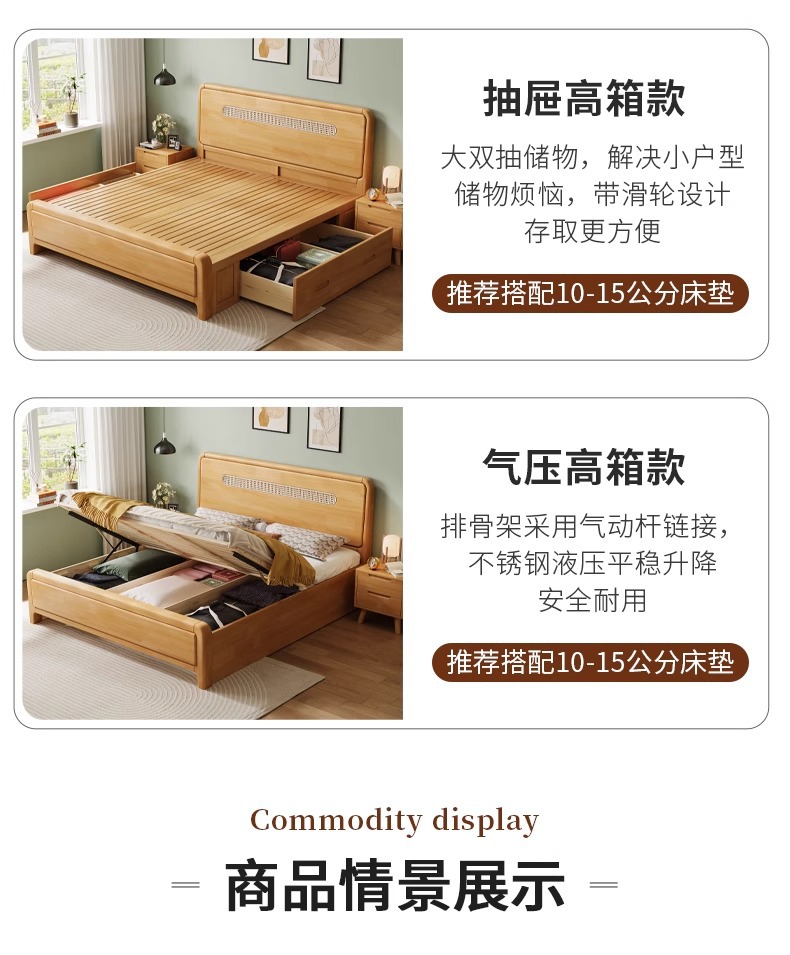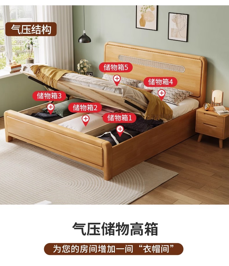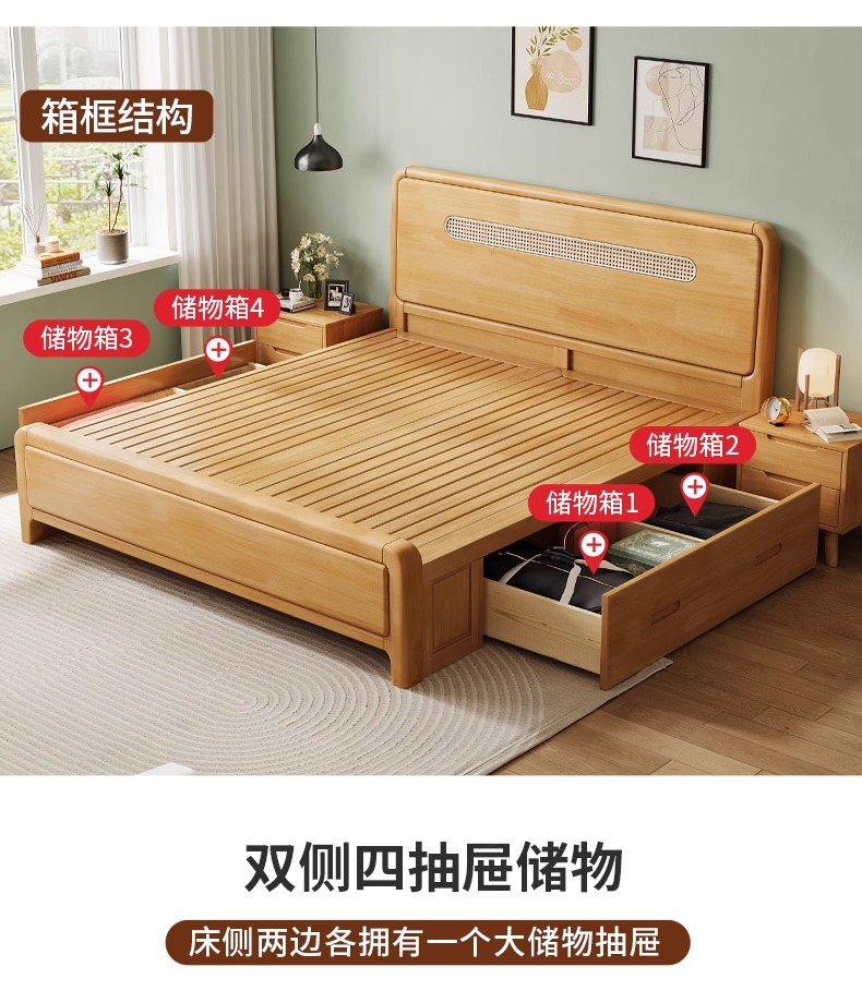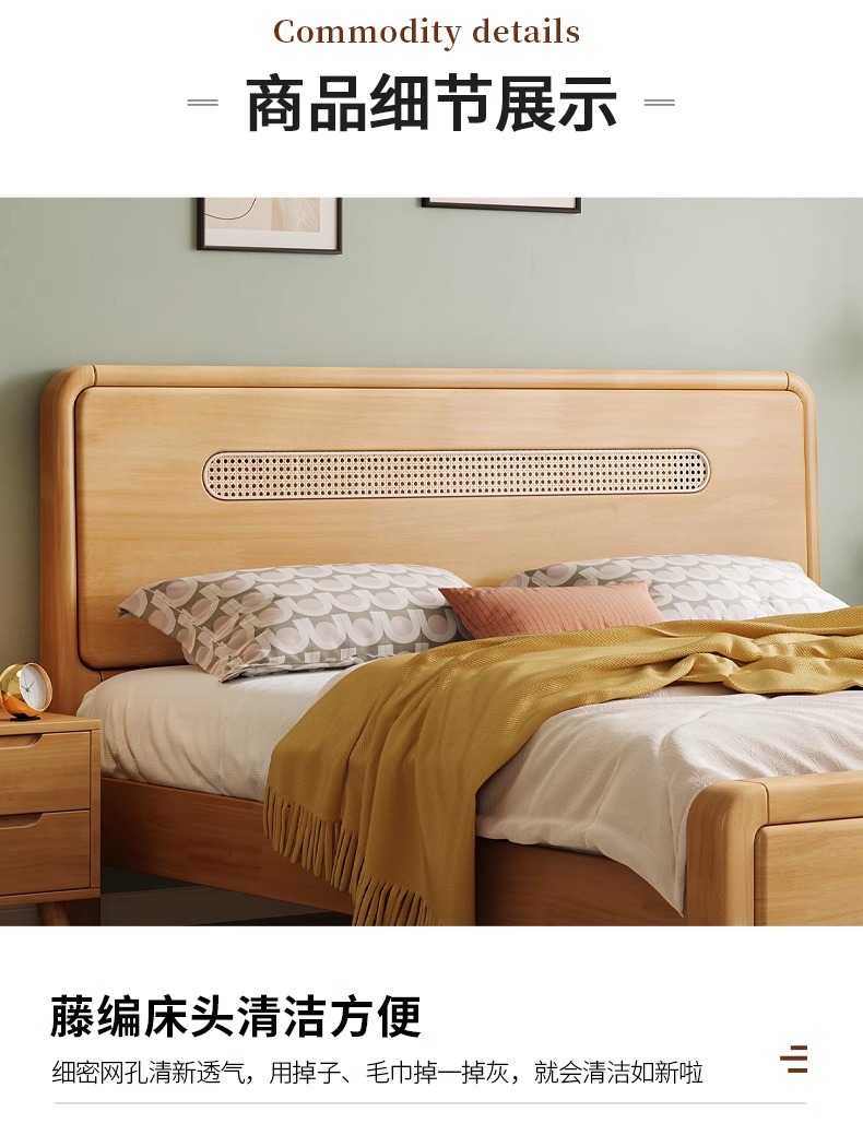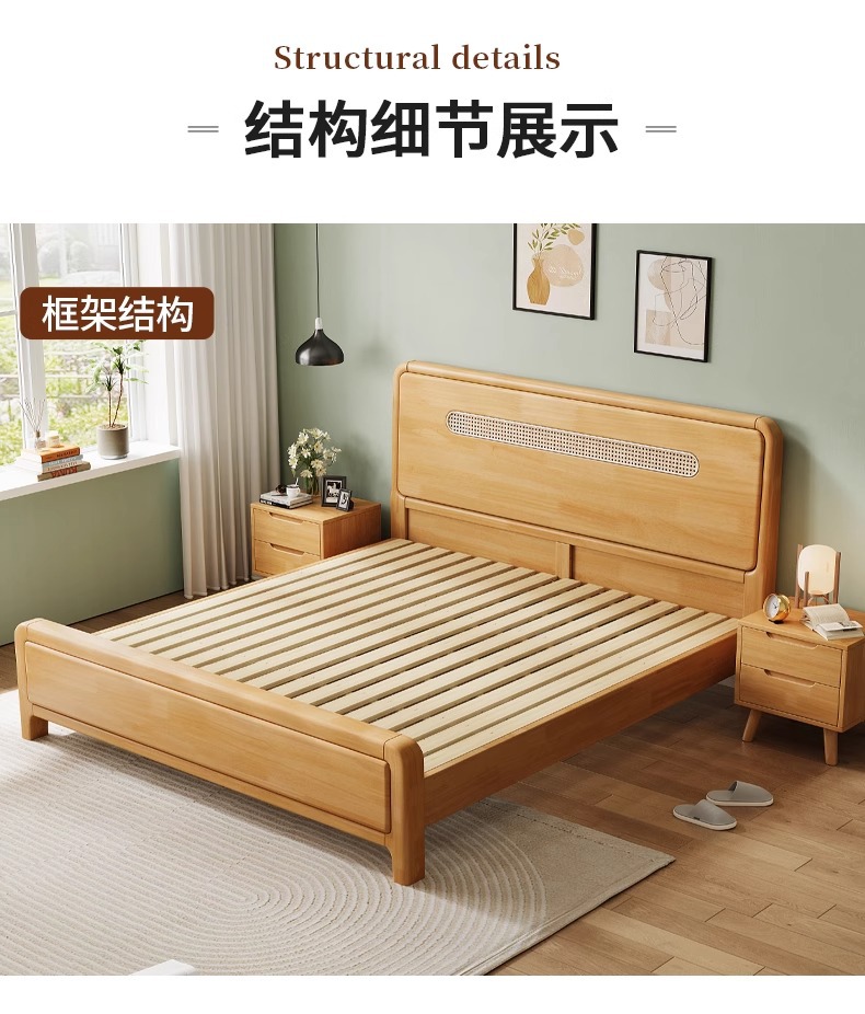 단단한 나무 침대 현대적인 미니멀리스트 1.8m 더블 마스터 침실 등나무 침대 작은 아파트 1.5m 어린이 수납 싱글 침대스토어 가기