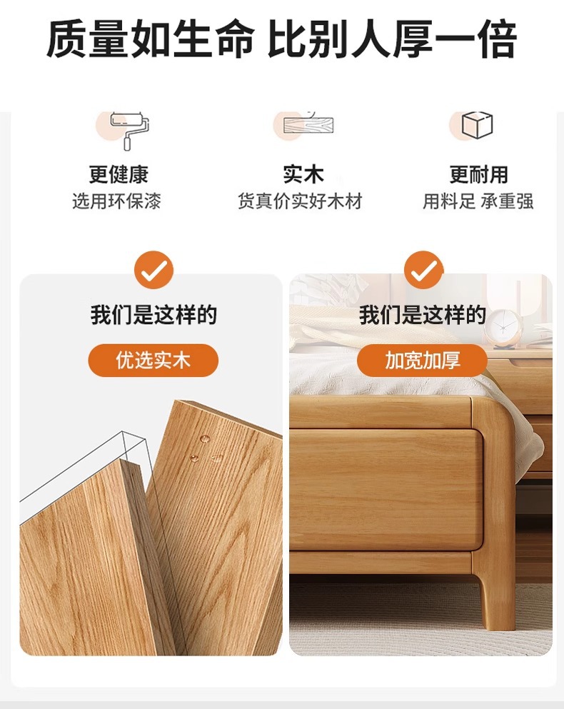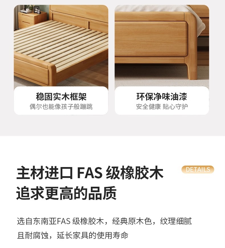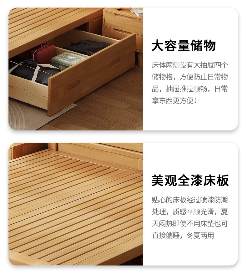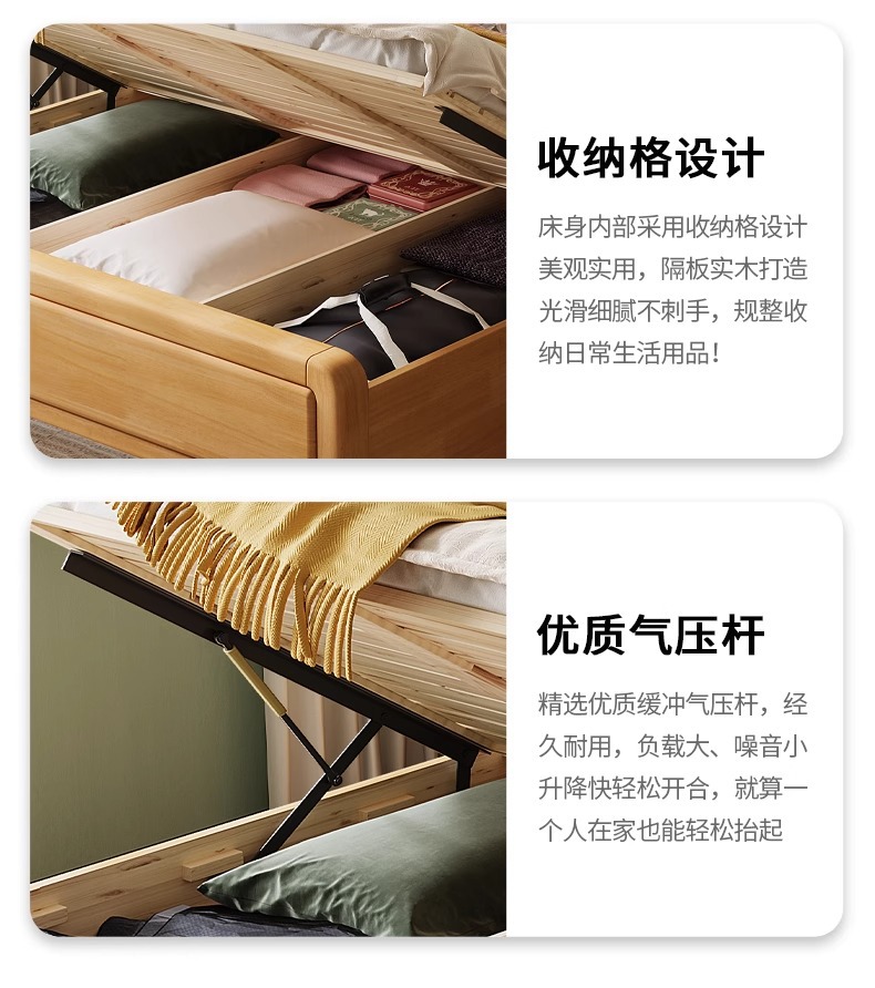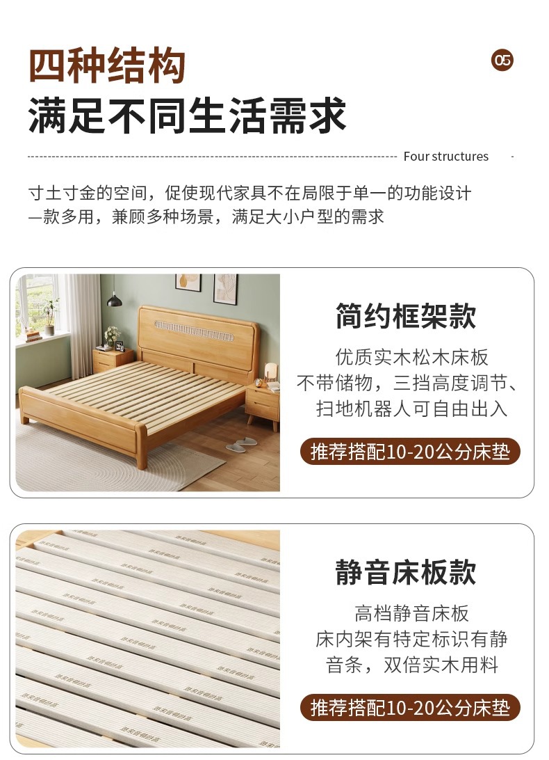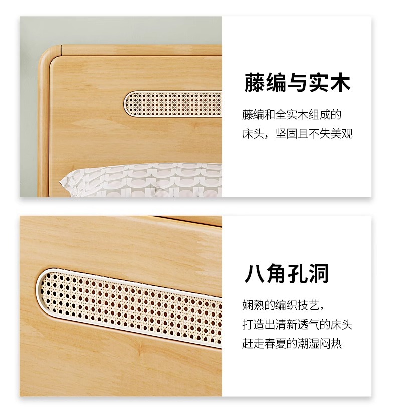 단단한 나무 침대 현대적인 미니멀리스트 1.8m 더블 마스터 침실 등나무 침대 작은 아파트 1.5m 어린이 수납 싱글 침대스토어 가기