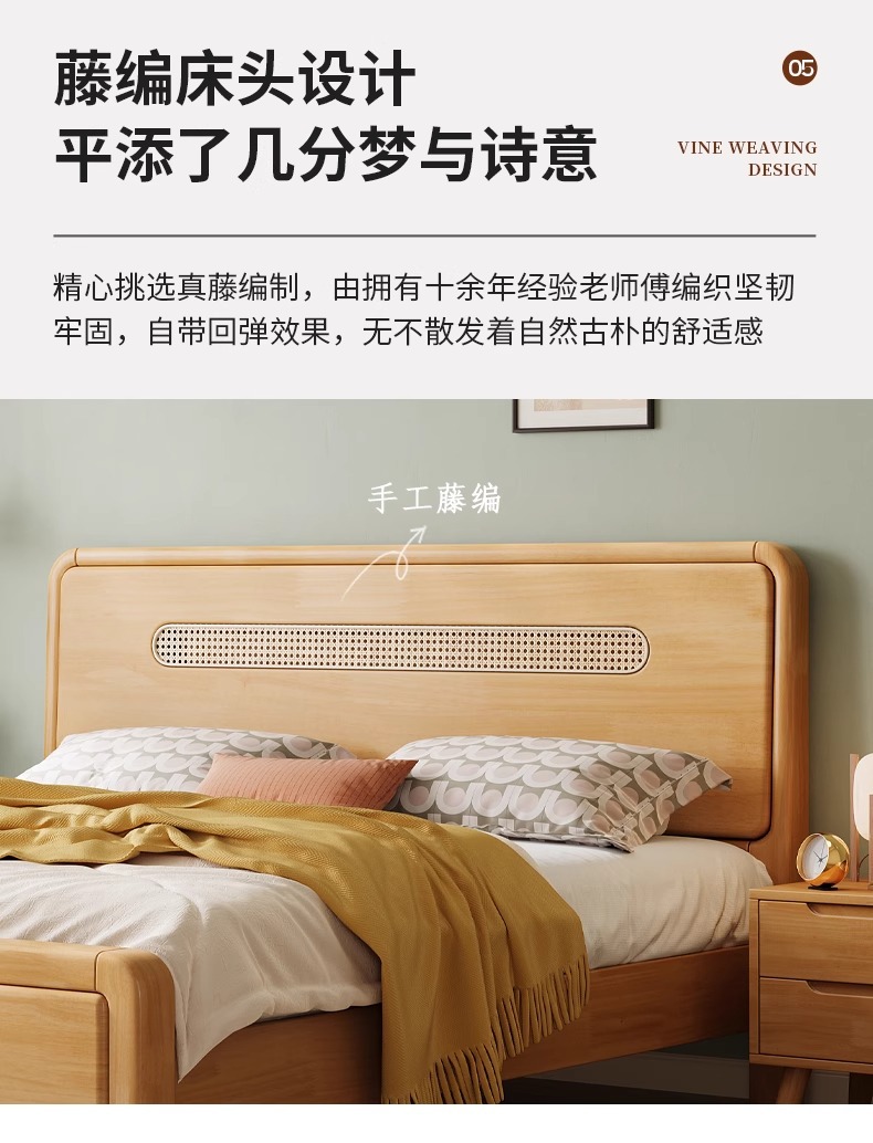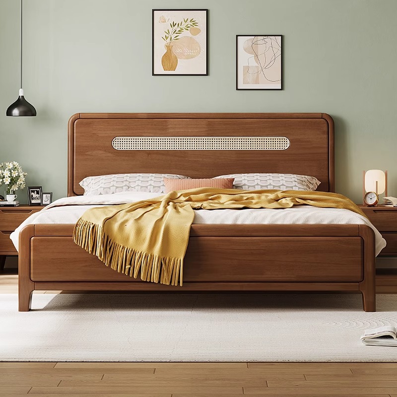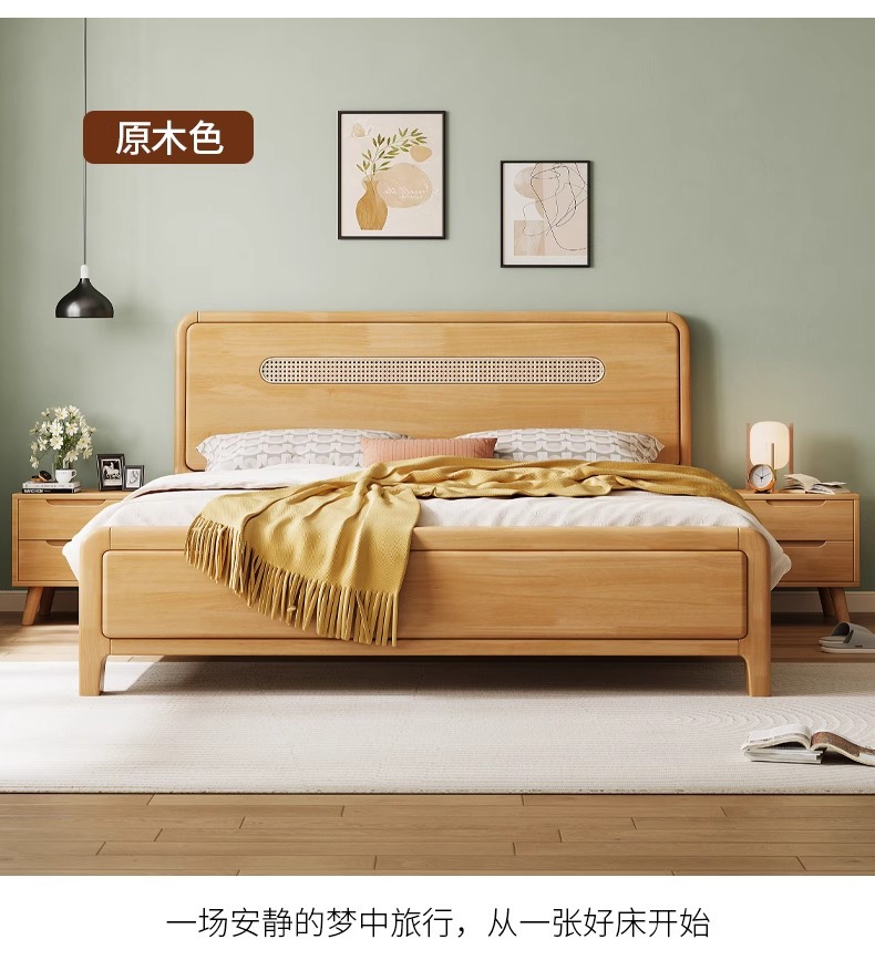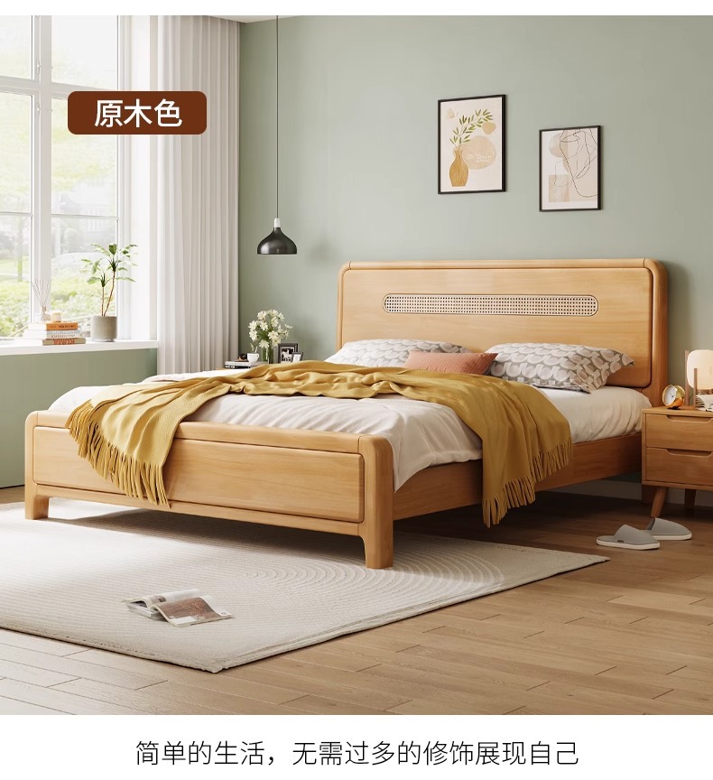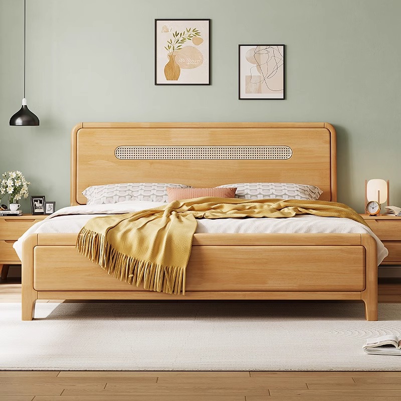 단단한 나무 침대 현대적인 미니멀리스트 1.8m 더블 마스터 침실 등나무 침대 작은 아파트 1.5m 어린이 수납 싱글 침대