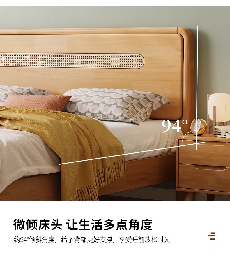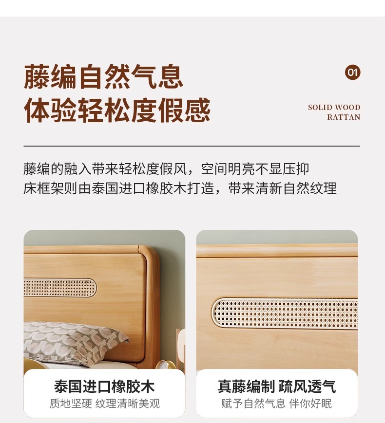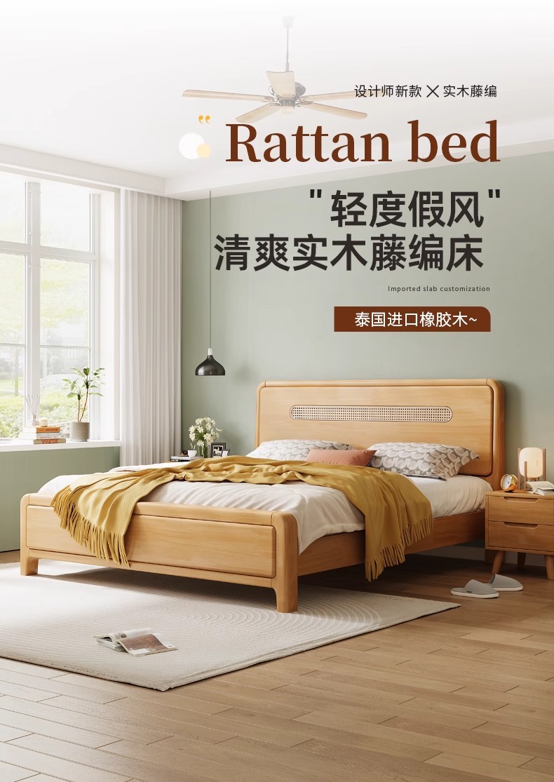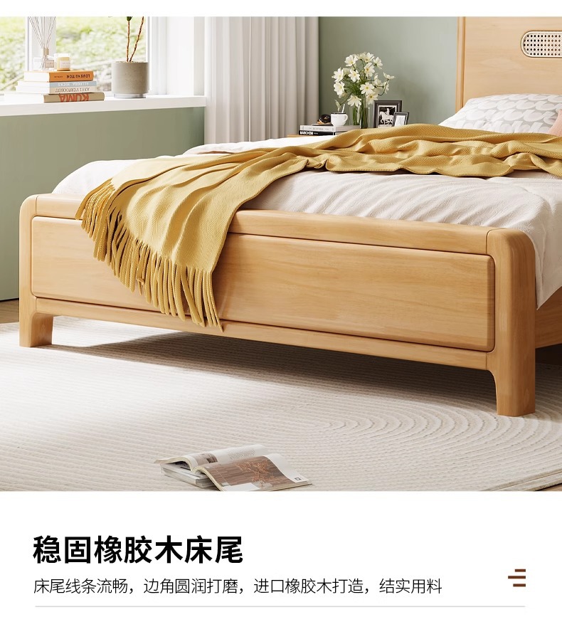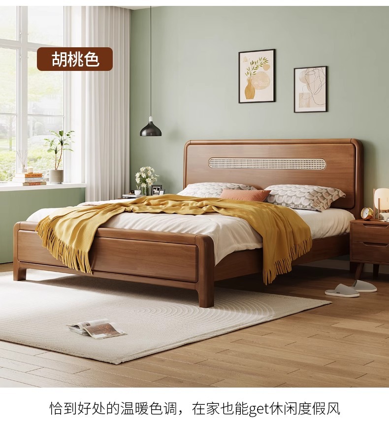 단단한 나무 침대 현대적인 미니멀리스트 1.8m 더블 마스터 침실 등나무 침대 작은 아파트 1.5m 어린이 수납 싱글 침대
