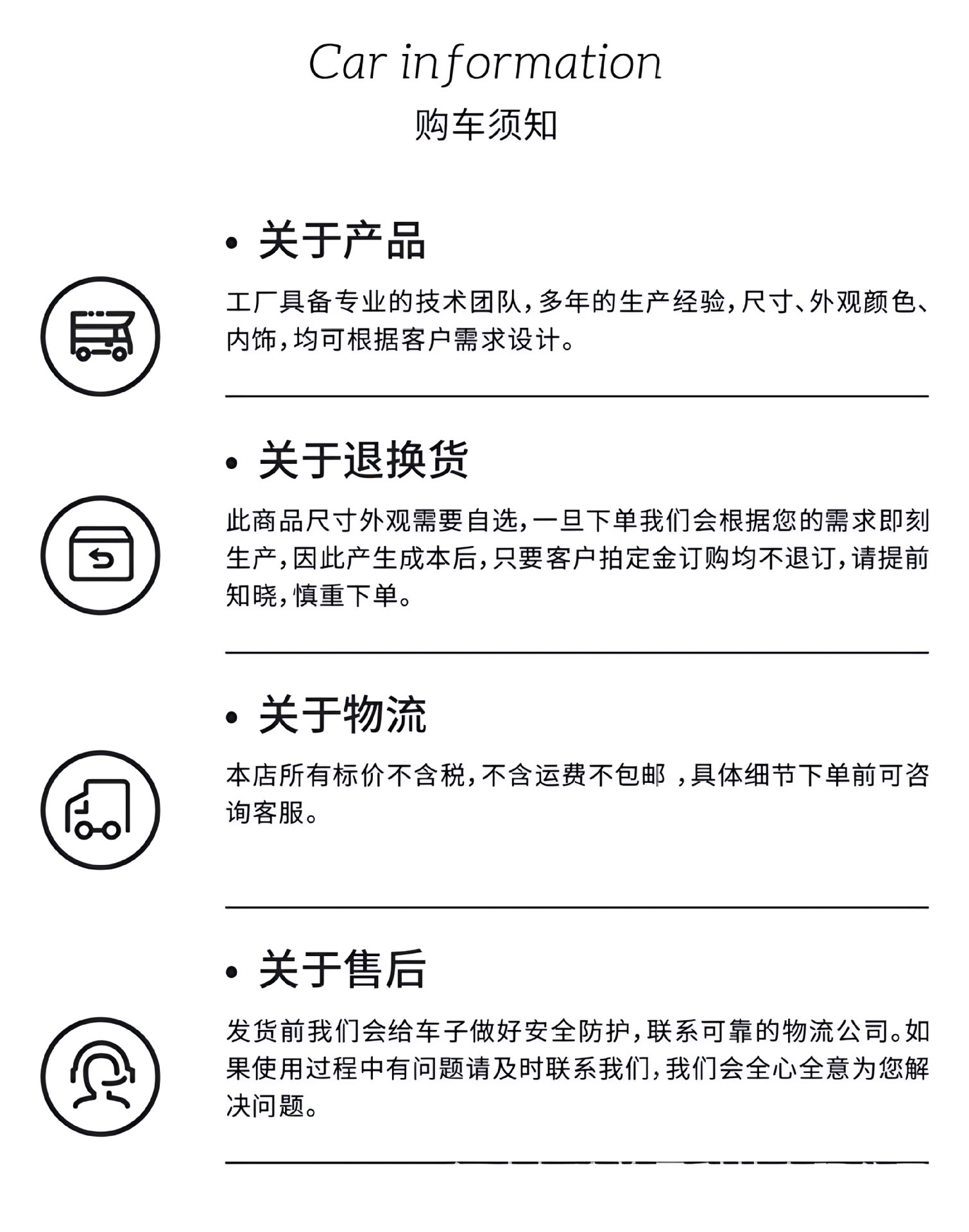 • 특수 형상 차량(맞춤화는 고객 서비스에 문의하세요)
