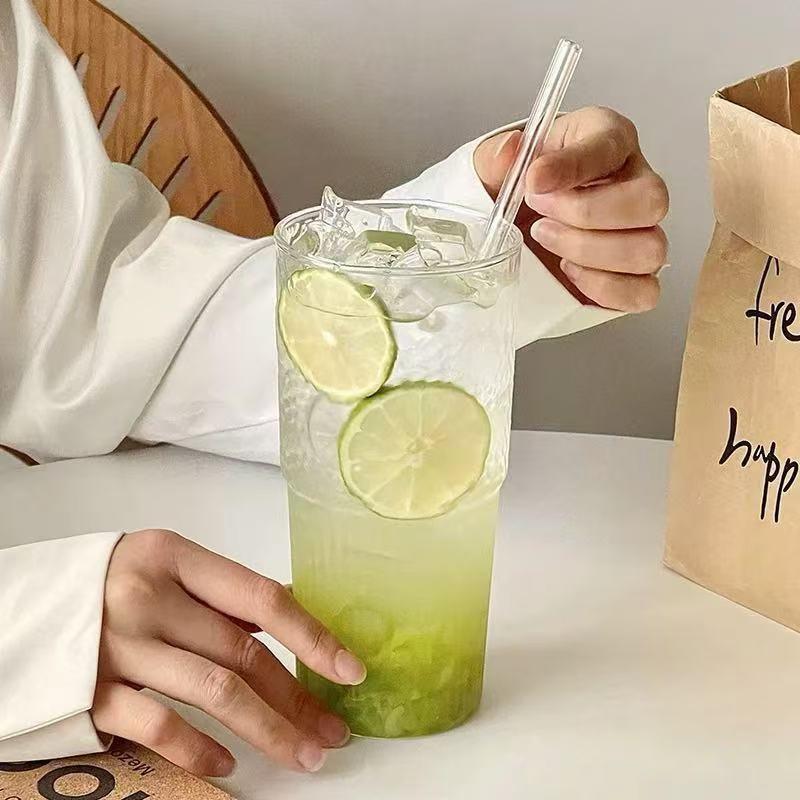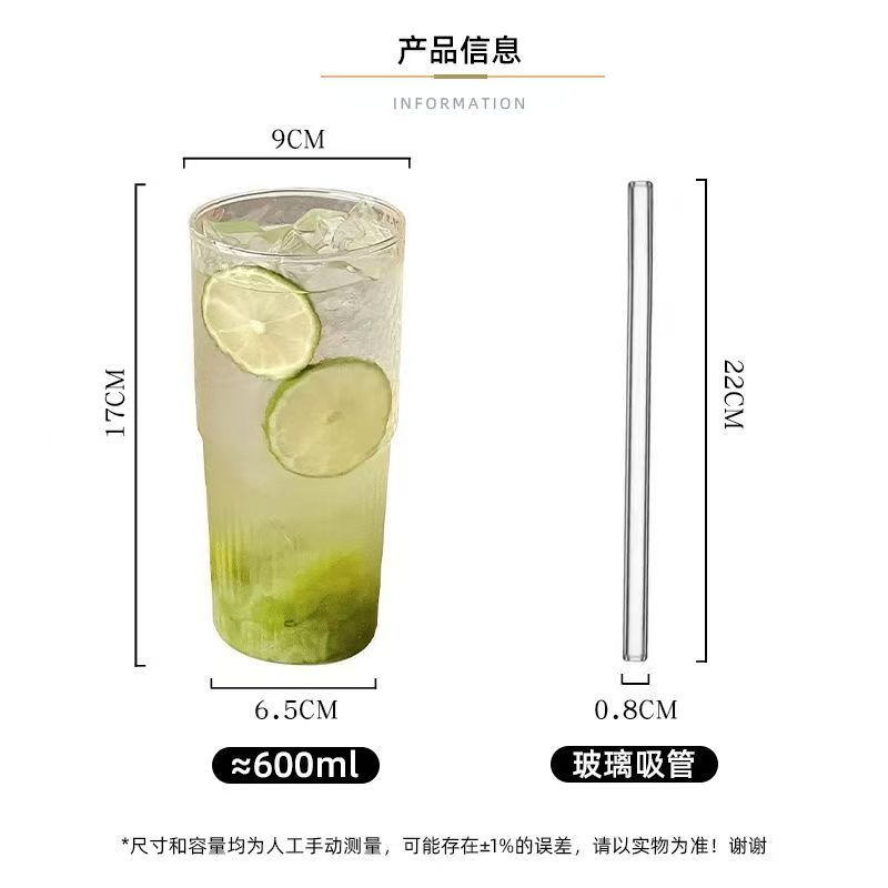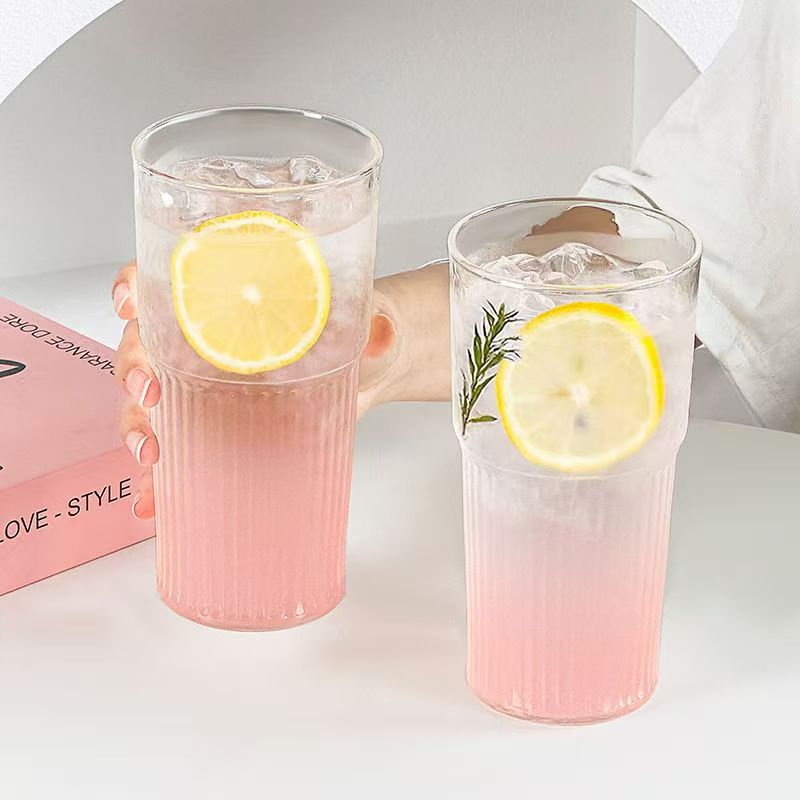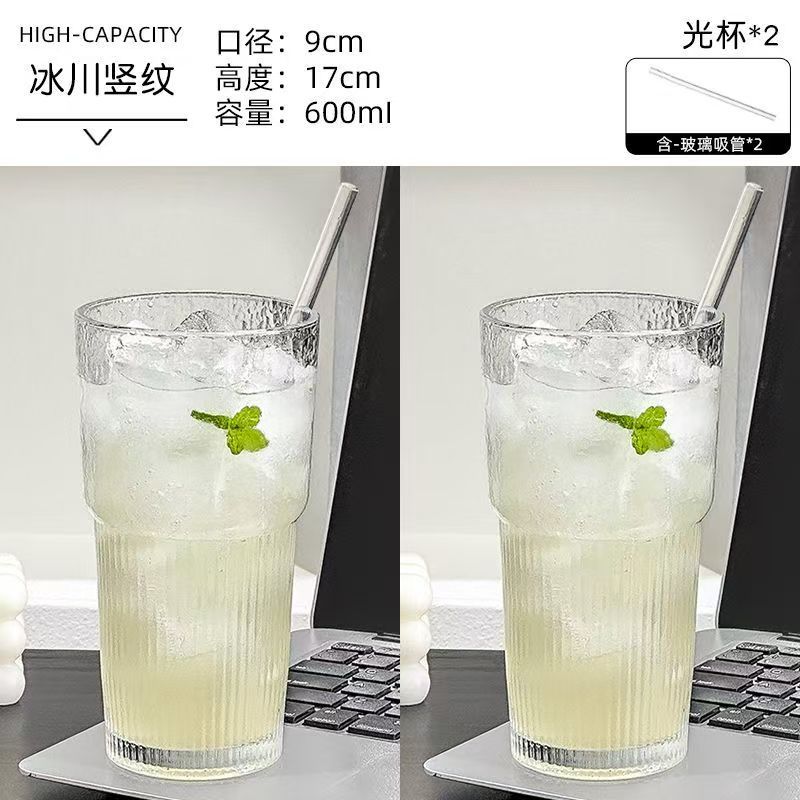 Ins 스타일 세로 줄무늬 유리 마시는 컵 뚜껑이있는 고급스러운 가정용 음료 컵 여름 대용량 물 컵스토어 가기