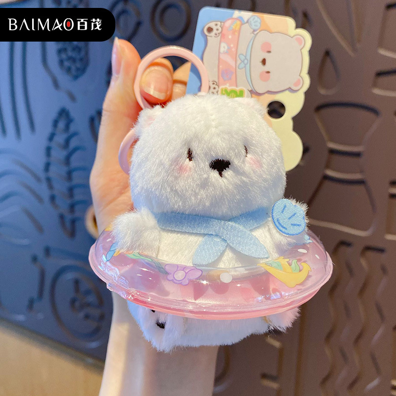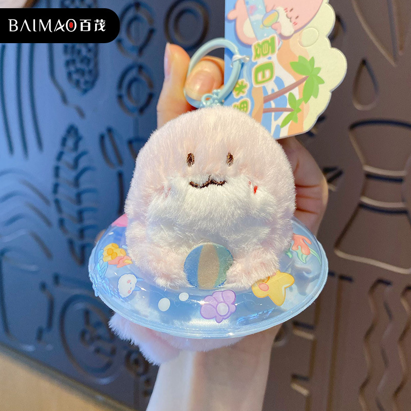 Baimao 오리지널 귀여운 애완 동물 여름 물놀이 재미있는 플러시 키체인 펜던트 크리에이티브 인형 가방 펜던트