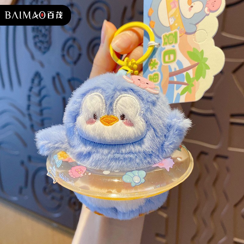 Baimao 오리지널 귀여운 애완 동물 여름 물놀이 재미있는 플러시 키체인 펜던트 크리에이티브 인형 가방 펜던트스토어 가기
