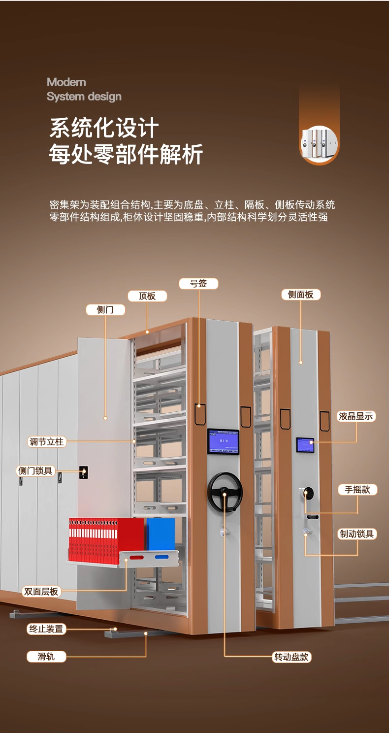 강철 파일 아카이브 전기 핸드 크랭크 완전 자동 지능형 촘촘한 랙 이동식 파일 및 영수증 캐비닛 공장스토어 가기