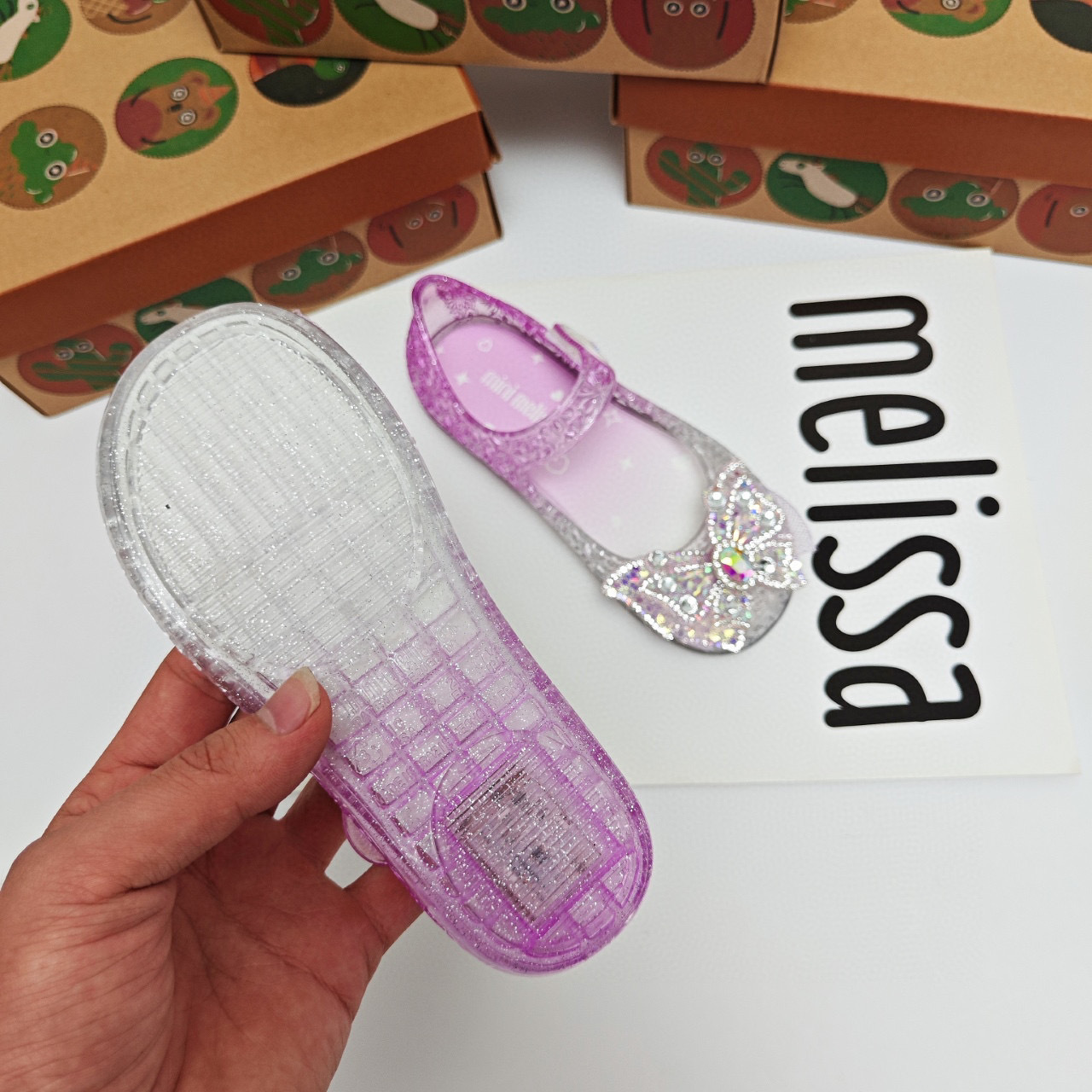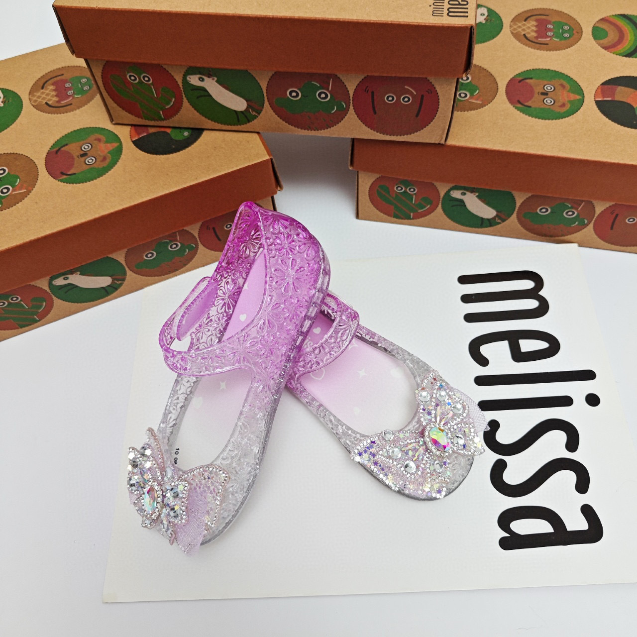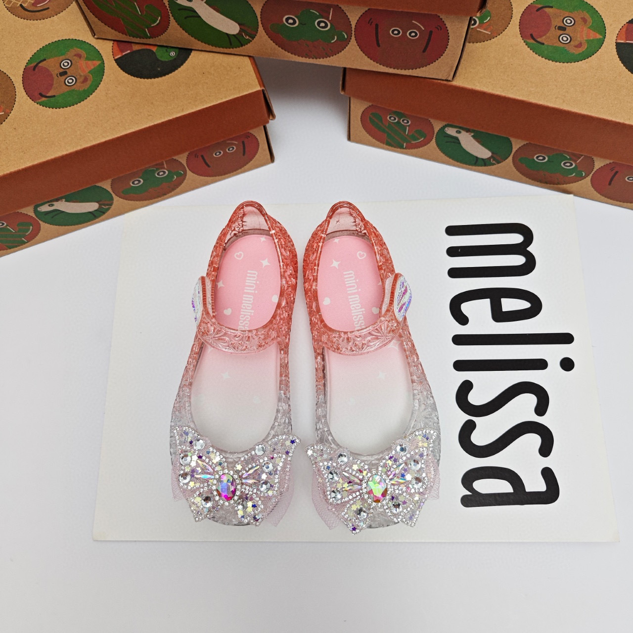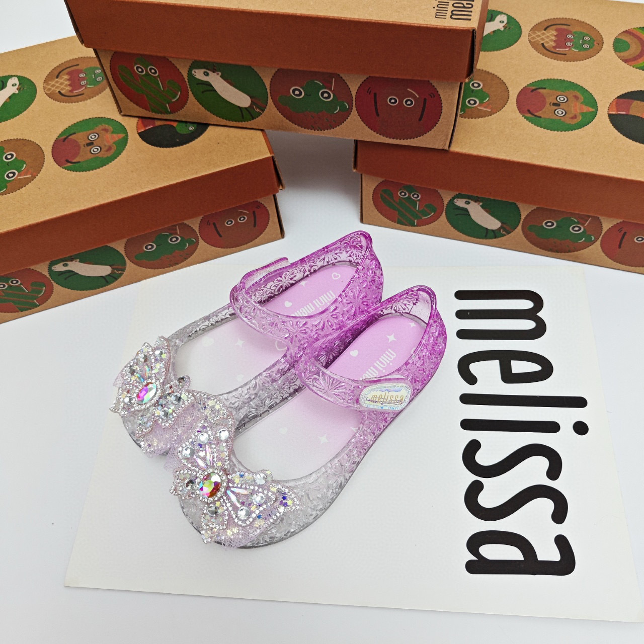 멜리사 어린이 젤리 슈즈, 리본 샌들, 속이 빈 비치 슈즈, 향기로운 어린이 신발, 깜박이는 그라데이션 컬러 여아 신발스토어 가기