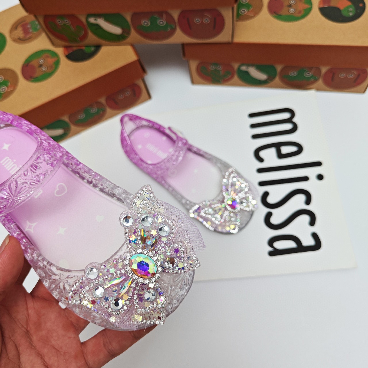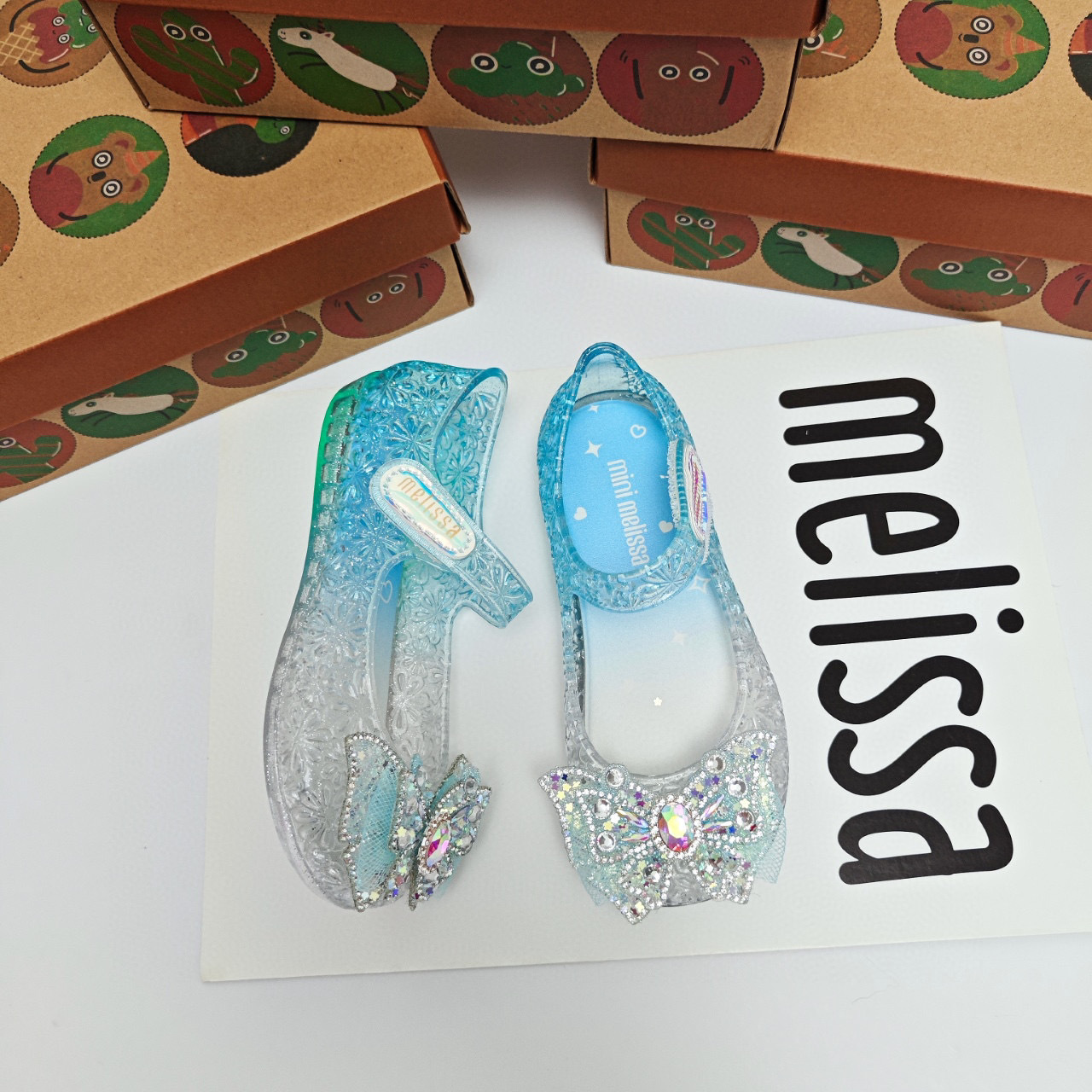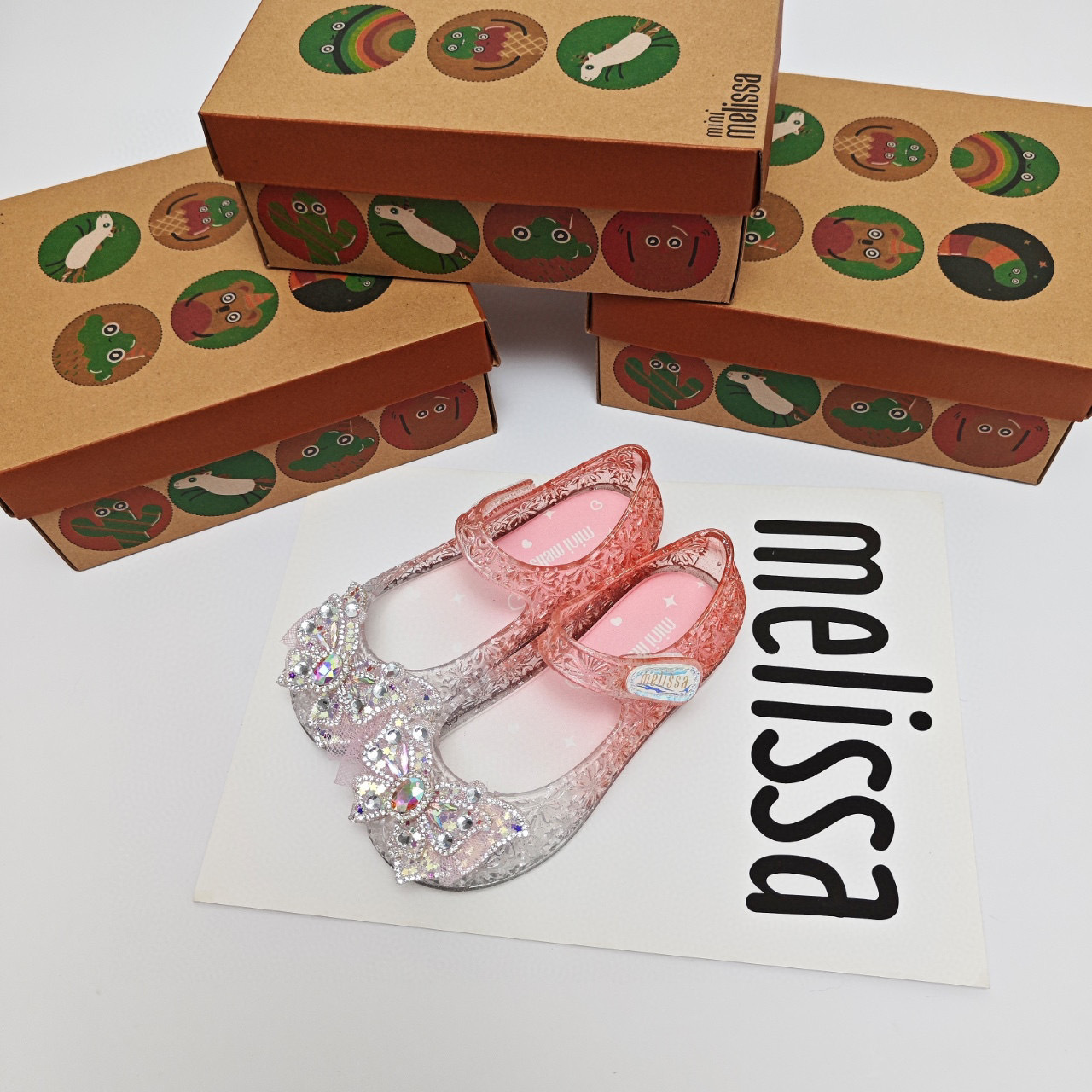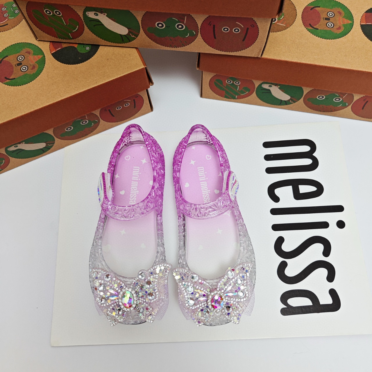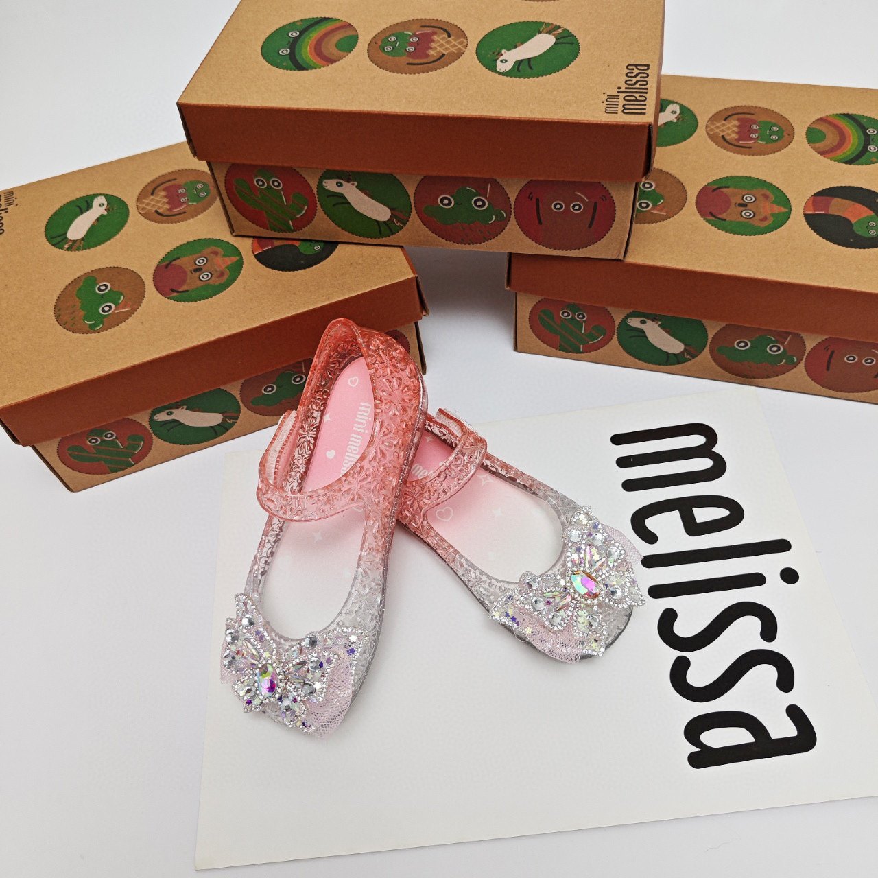 멜리사 어린이 젤리 슈즈, 리본 샌들, 속이 빈 비치 슈즈, 향기로운 어린이 신발, 깜박이는 그라데이션 컬러 여아 신발스토어 가기