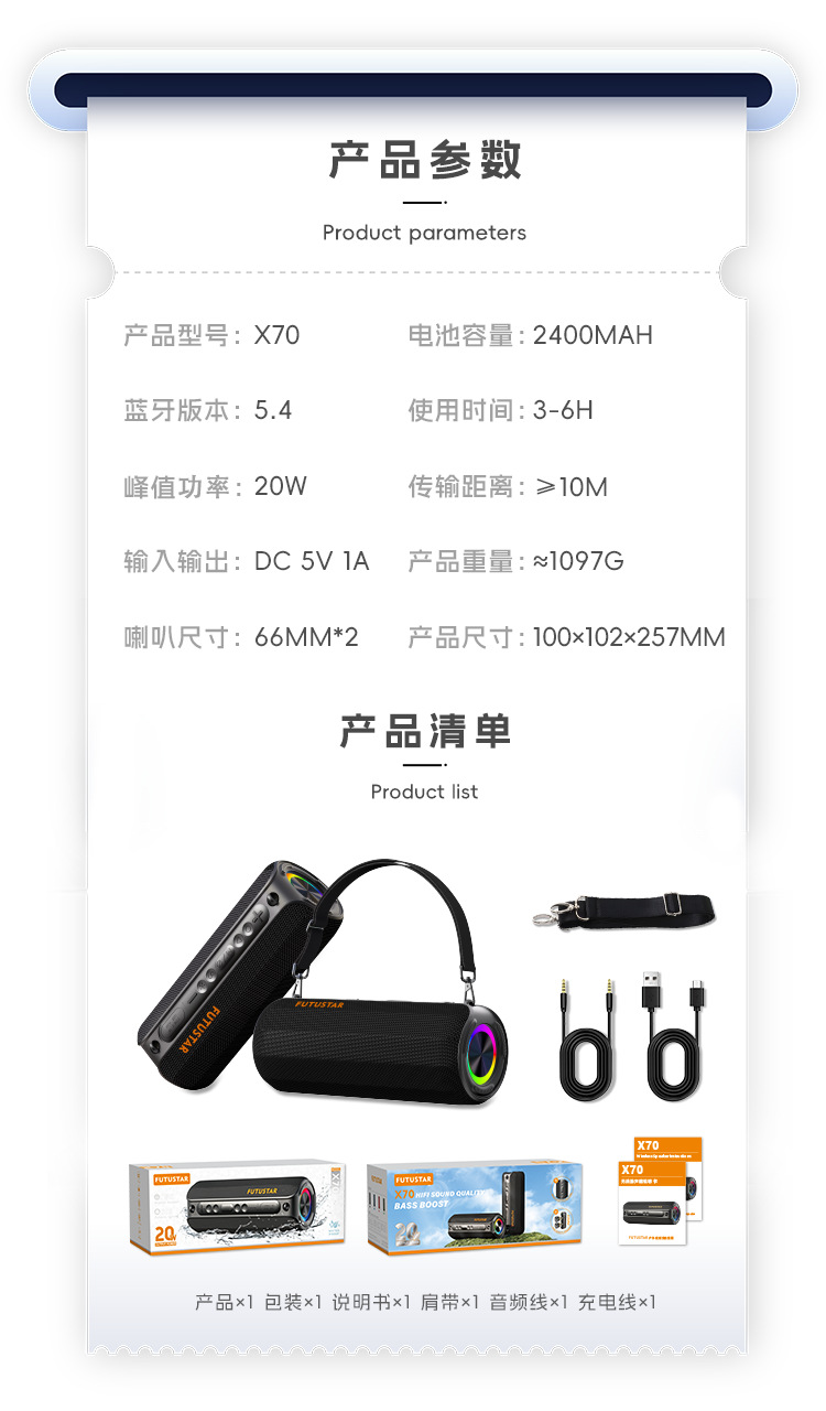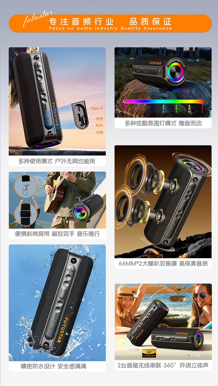 국경 간 신제품 블루투스 스피커 휴대용 휴대용 방수 서브 우퍼 고출력 무선 블루투스 스피커 도매스토어 가기