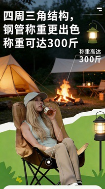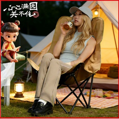• 【카키색】 일자형 높이 조절 등받이 달 의자 + 수납 가방