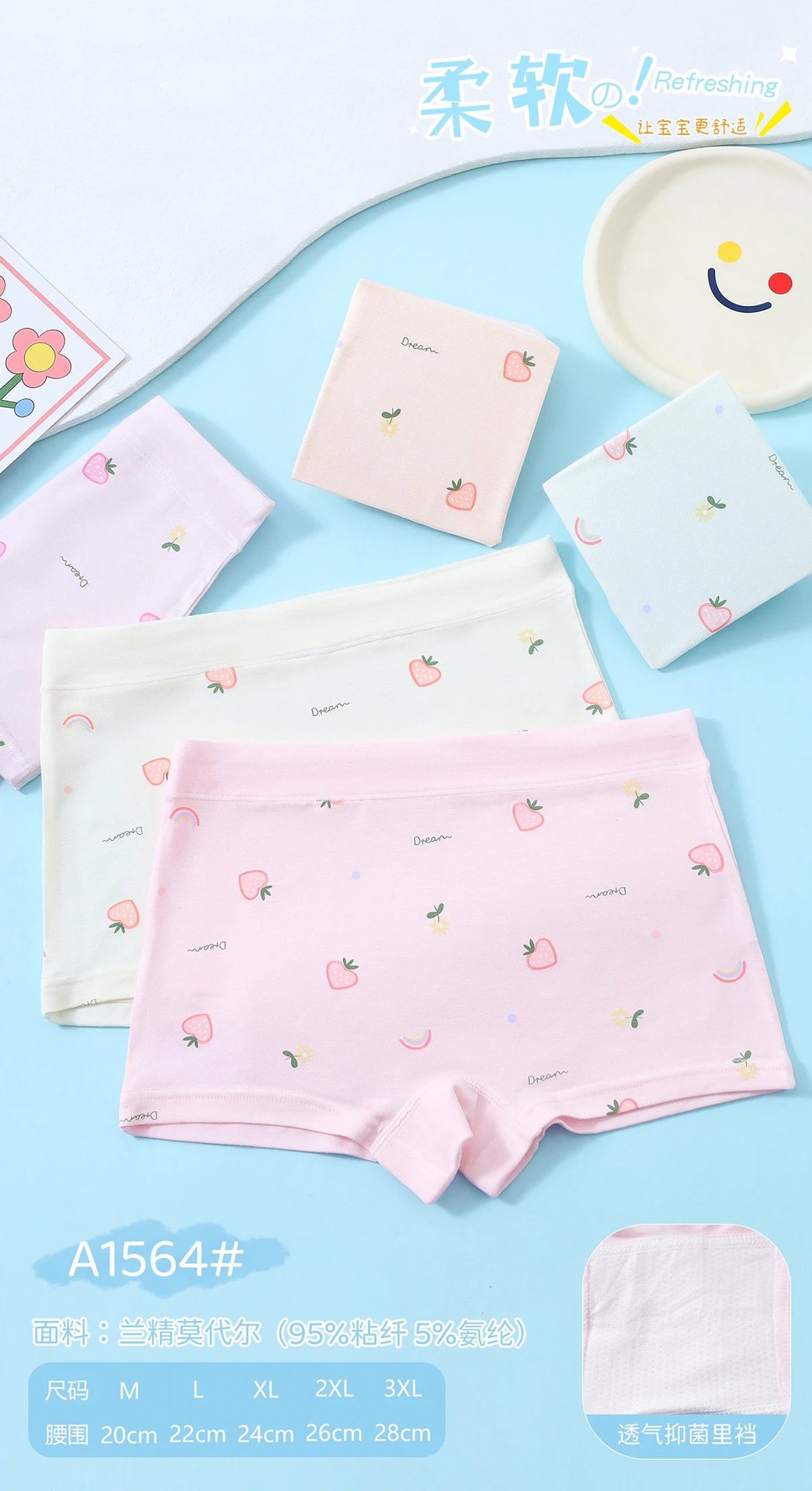 광 A1564 # 렌징 모달 여아 속옷 미드 웨이스트 M-2XL 편안한 딸기 복서 팬티 도매