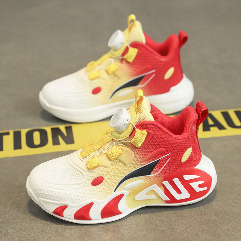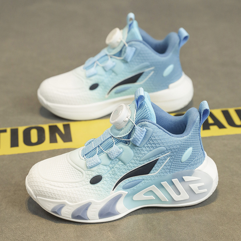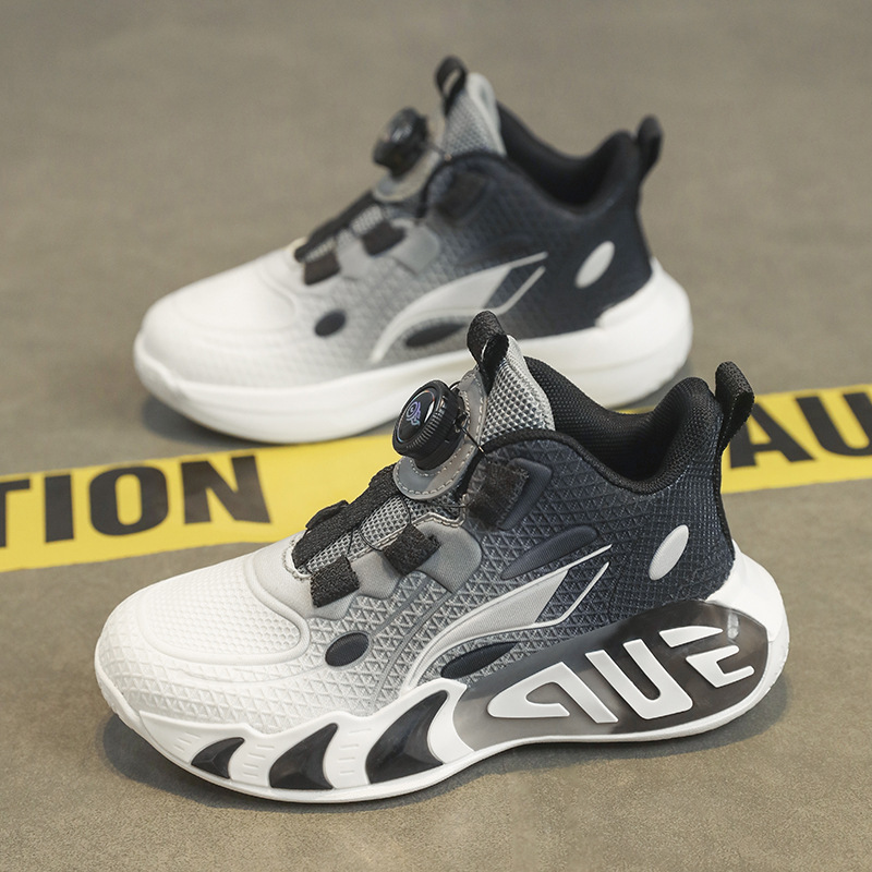 어린이 농구 신발, 큰 어린이 소년 단추 운동화, 봄과 가을 메쉬 통기성 부드러운 밑창 미끄럼 방지 운동화