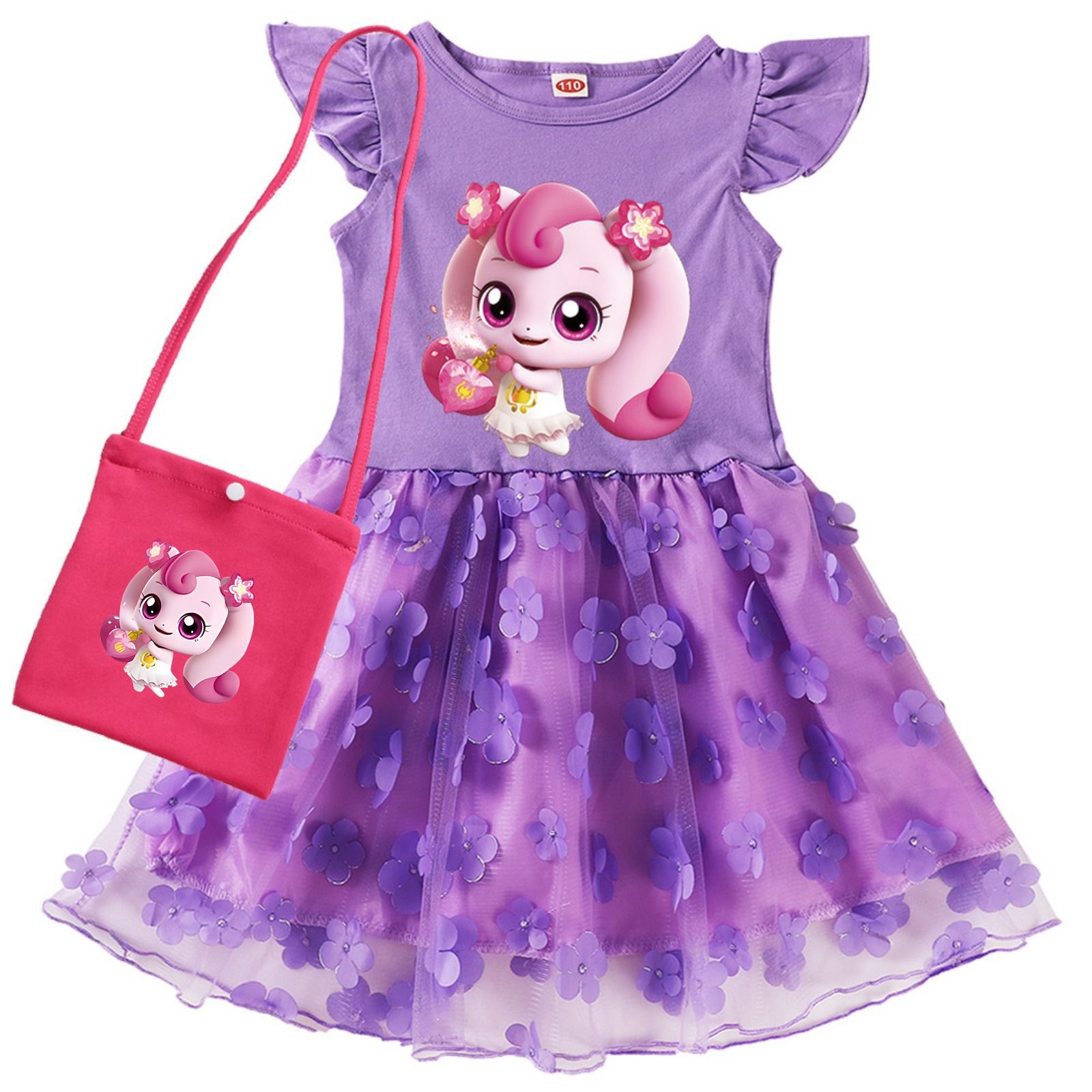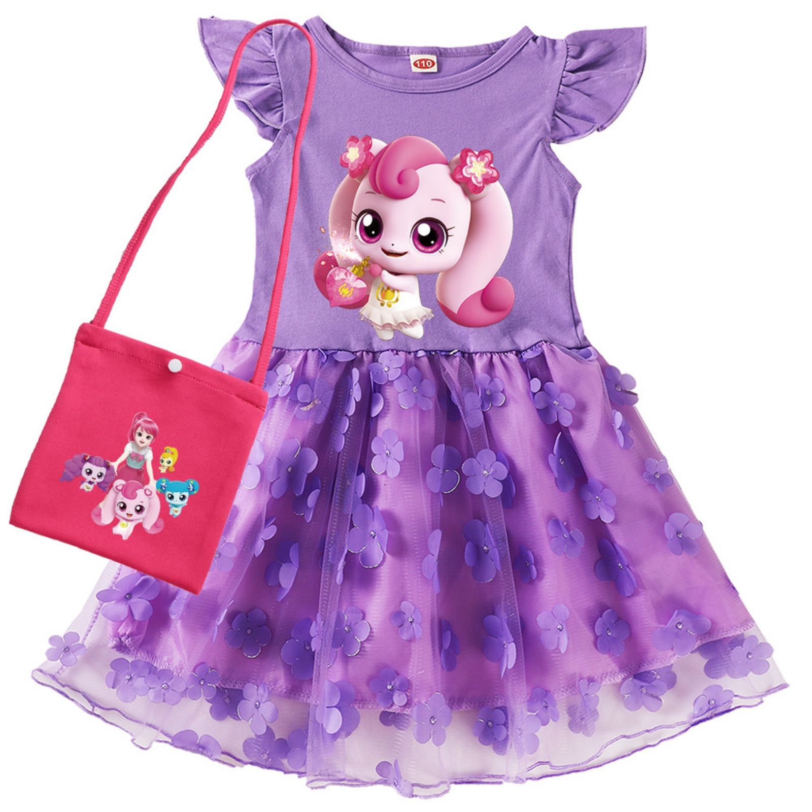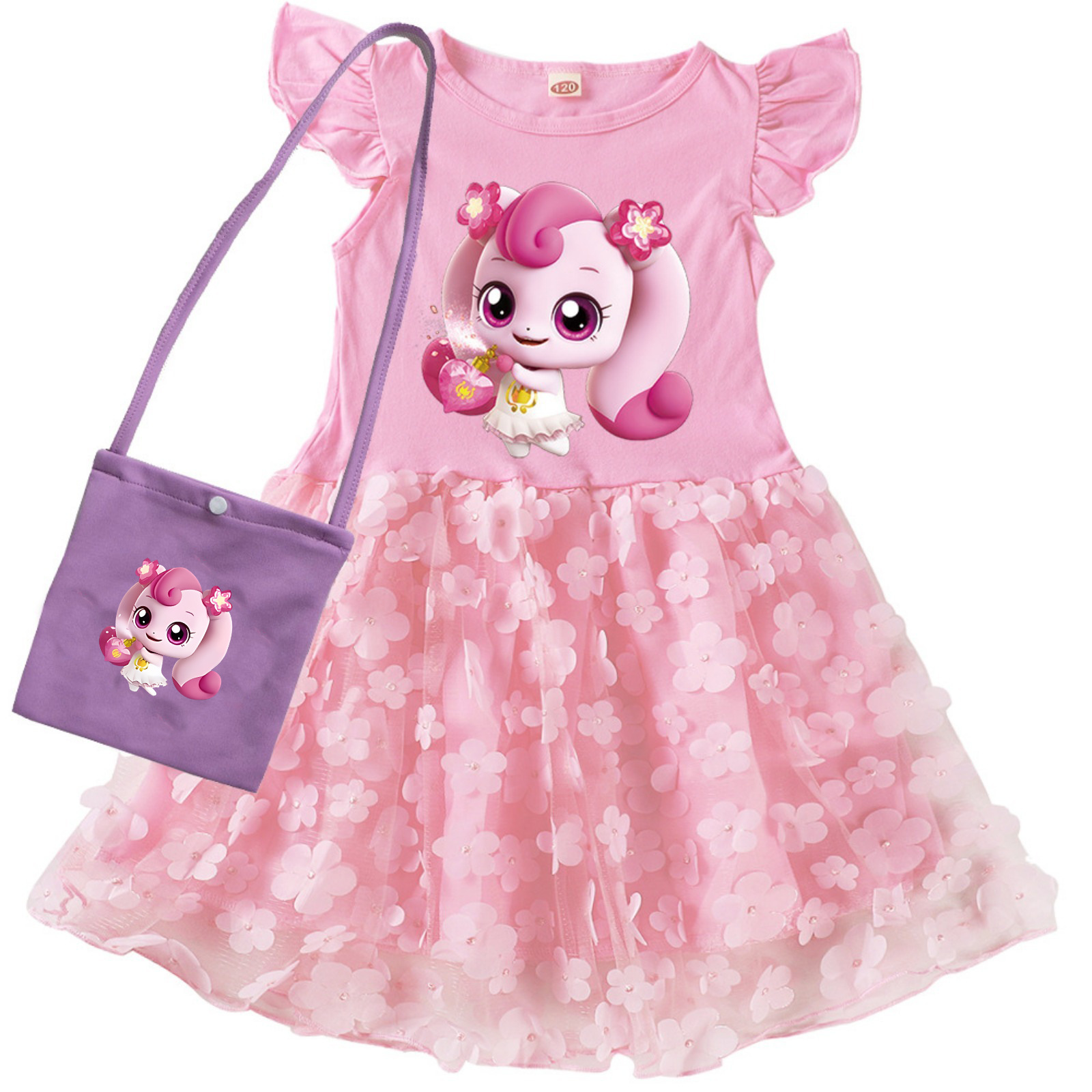 • 핑크색 드레스 + 보라색 가방